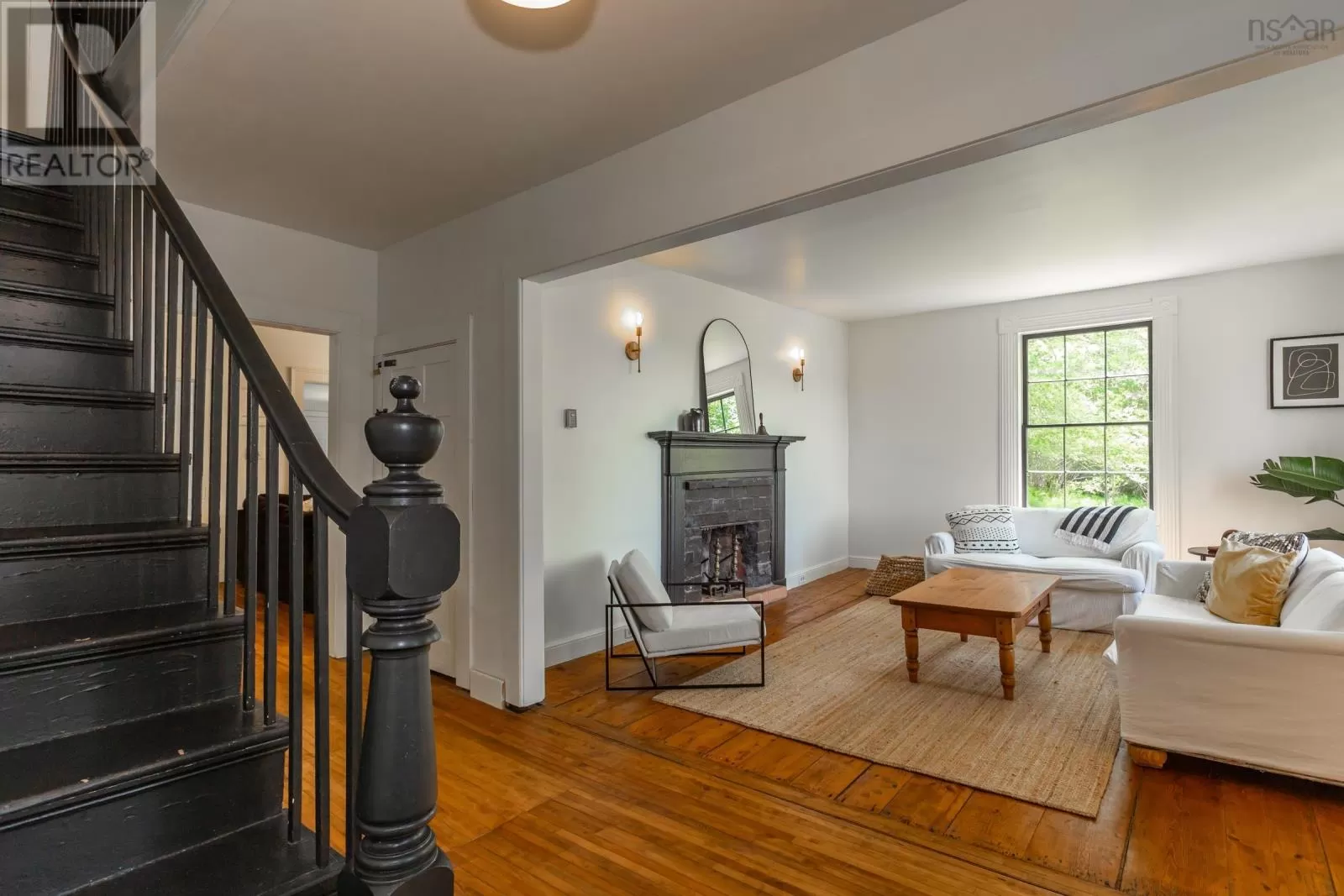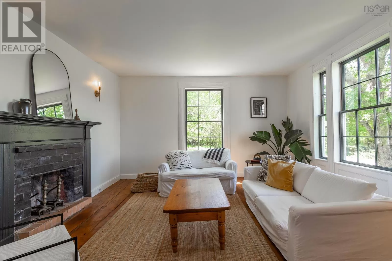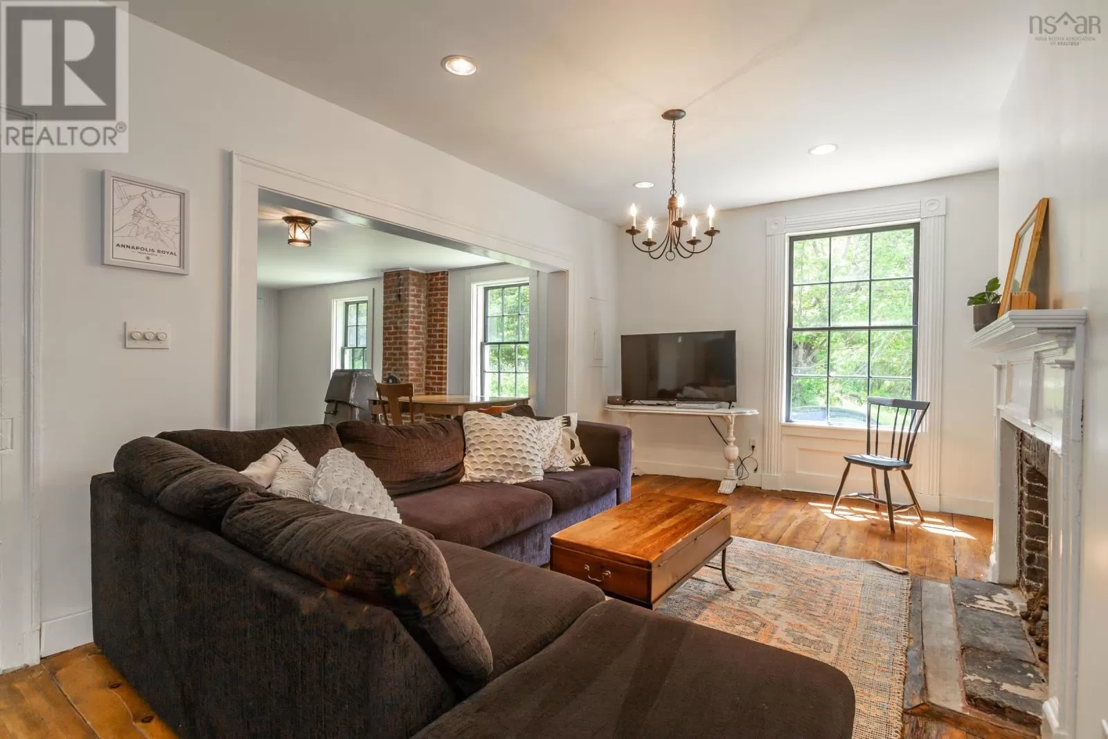 Hwy 1 to Hwy 201, follow to civic in the village of Tupperville Historic c1780 Colonial Estate with panoramic views of the Annapolis River in Tupperville, Nova Scotia. Set atop nearly 30 pastoral acres in the heart of Tupperville, this distinguished Colonial residence offers a rare opportunity to own a piece of Canadian history. Known as the 'Delancey Estate', this remarkable home overlooks sweeping farmland, the winding Annapolis River, and the mountains beyond - an iconic view matched only by the estate's storied past. Originally settled in the 1780's by Loyalist Colonel James Delancey Harris, formerly known as "The Cowboy of the Bronx" - the home has been lovingly restored to preserve its original charm while thoughtfully incorporating modern comforts. The residence features four spacious bedrooms and three full bathrooms, and exceptional country kitchen with a beehive oven. Six additional fireplaces throughout the home, each adding warmth and ambiance. Elegant living, dining and office spaces filled with natural light - ideal for entertaining or remote work. Recent upgrades (2022 - 2024) include extensive restoration and painting of the original exterior siding, window restoration, a rebuilt front vestibule, new eavestroughs, and more - reflecting a careful stewardship of this heritage property. Perfect for families, couples or individuals who value character, comfort, and privacy, this home is equally suited for entertaining guests or enjoying quiet solitude. The community offers easy access to travel links, scenic trails, beaches, local markets, charming cafes, and shopping - all just minutes away. Above all, this exceptional property is ideal for those who appreciate history, craftsmanship, and the opportunity to live on what is arguably one of the most beautiful roads in southwest Nova Scotia. A rare and timeless offering. (id:27476)