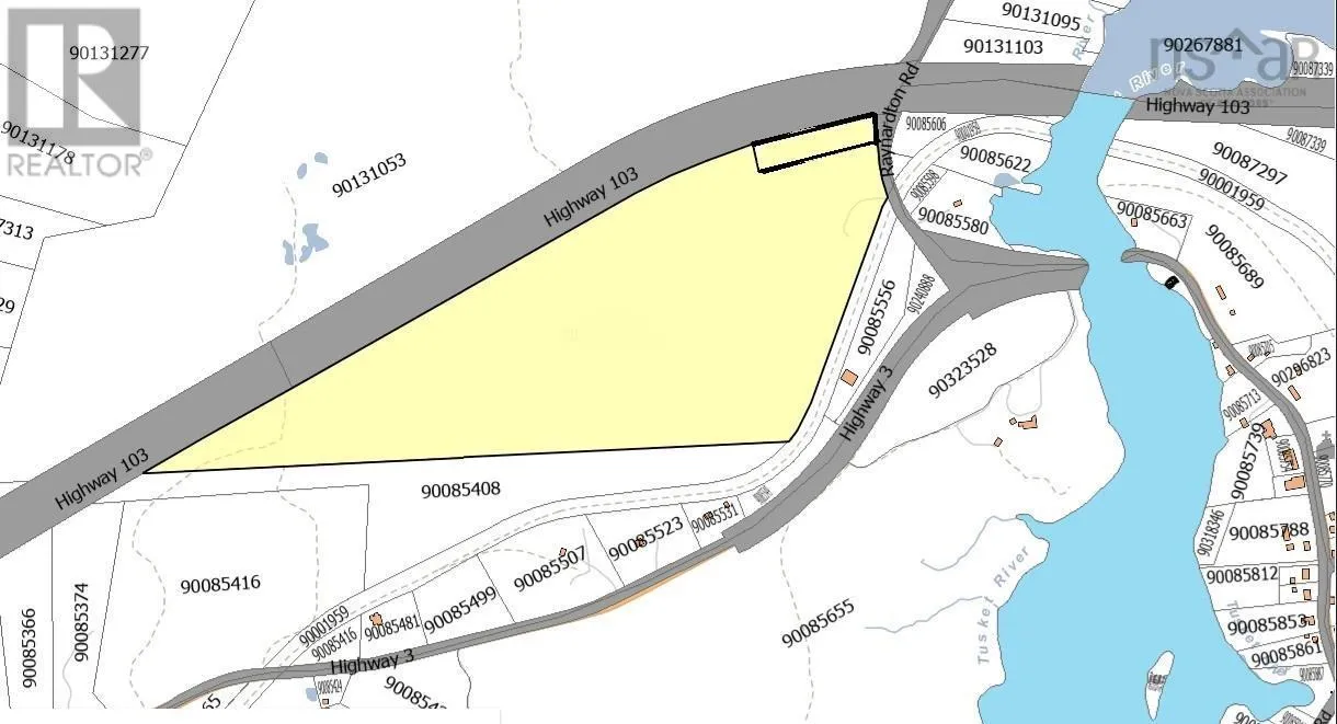 Highway 103 take Raynardton Rd Exit property is located along Hwy 103 and the intersection. Located in The Municipality of Argyle this 94 acre parcel of land has good visual frontage on Highway 103 just before the Exit #33 in Tusket. There is also frontage on Raynardton Rd and the property borders the Recreational Trail formerly the rail bed. Multiple access points here with good elevation and some areas well treed. These size parcels are a rare find. The Tusket area has become a popular place to expand and develop. (id:27476)