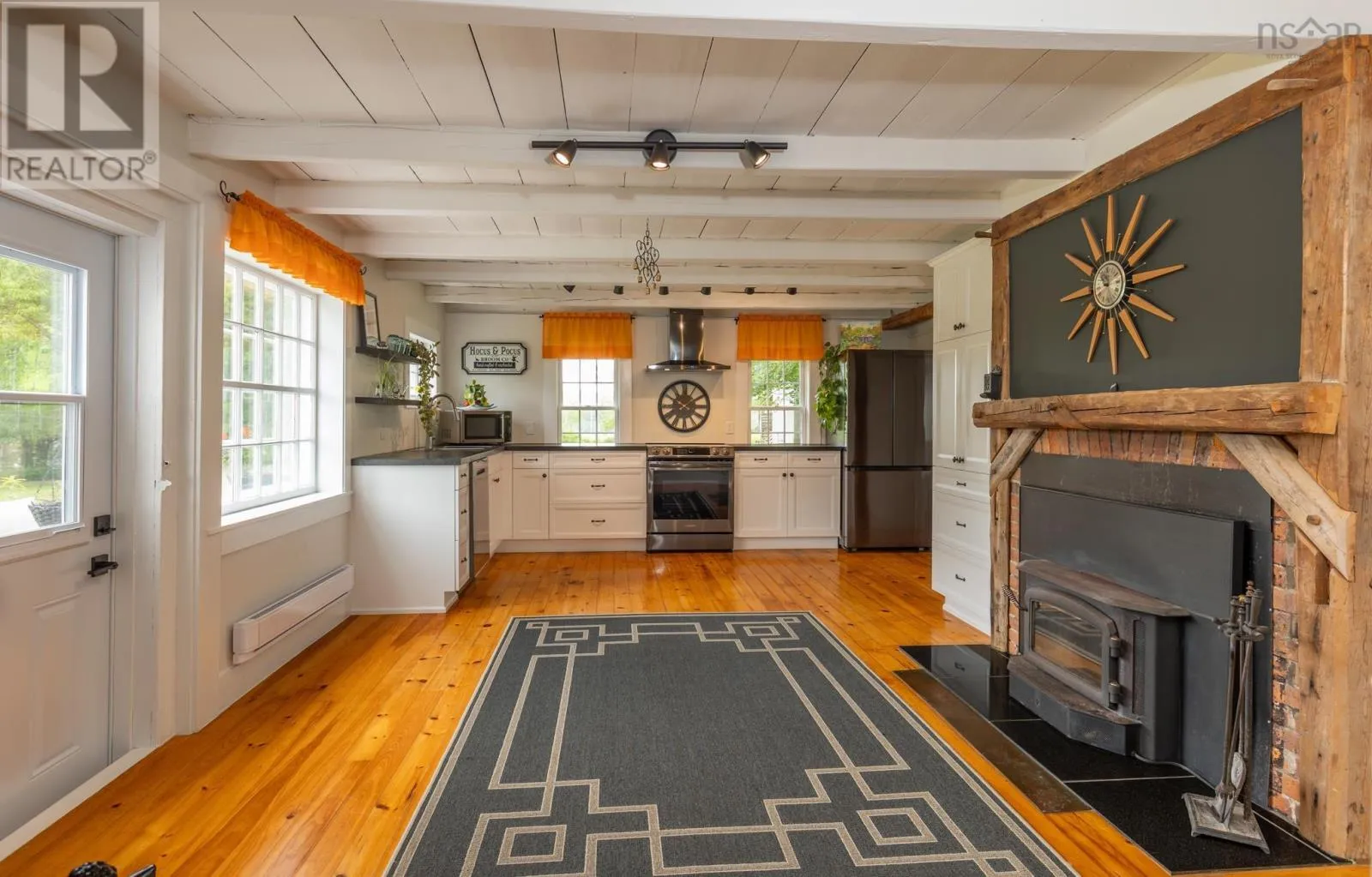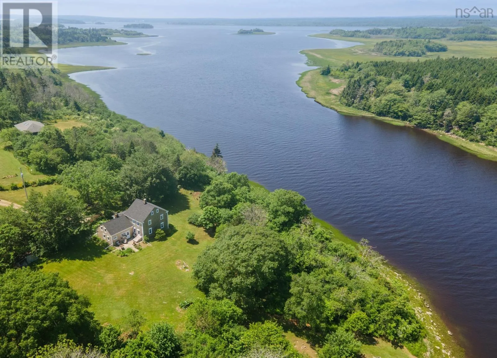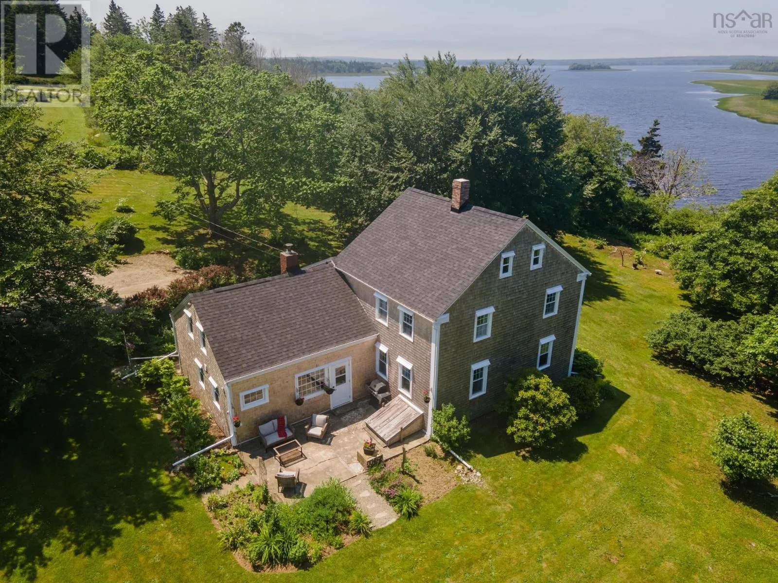 From Yarmouth to Tusket, South on Hwy. 308, right at Hubbards Point, right on Horatio Wood Road , end of road #61 Welcome to the Abraham Lent House, a beautiful estate that blends magical four-season Nova Scotia vistas with New England Colonial charm. Set on 4.3 acres in the quaint community of Tusket, this extraordinary point-of-land property boasts 780 feet of water frontage, showcasing the incredible 15-foot tides of the Tusket River. Here, stunning sunsets give way to some of the best stargazing in North America. The home radiates timeless character, with a majestic lion door knocker on a double Dutch door, crown moldings, chair rails, wood floors, brass doorknobs, cozy brick fireplaces, wood beams, a boat porthole in the ceiling, and a stained glass door. The original entrance hall with staircase, elegant dining and living rooms with fireplaces, and a kitchen with wood stove set the stage for warmth and tradition. Three bedrooms, all with magnificent water views, two full washrooms, and an expansive sunroom complete the living spaces. Above the kitchen, an open loft awaits your dream studio or additional bedroom. Modern updates include new electrical with a 200-amp panel, full ducted heat pump, and a thoughtfully renovated kitchen. Outdoors, various farm outbuildings, one already wired, offer potential for projects or ventures. Low-maintenance perennial gardens, private patios, stone paths, fruit trees, and centuries-old oaks enrich the setting. Just 12 minutes from Yarmouth, yet with local amenities nearby, this property offers the lifestyle youve always imaginedseals in the river, eagles overhead, and endless coastal beauty. All viewings by appointment only. (id:27476)