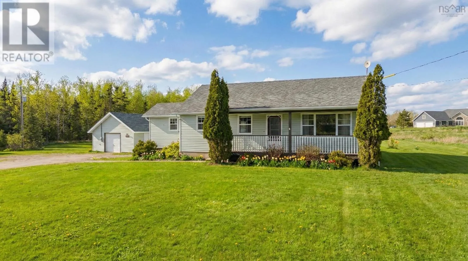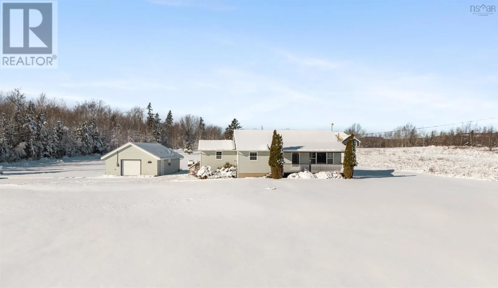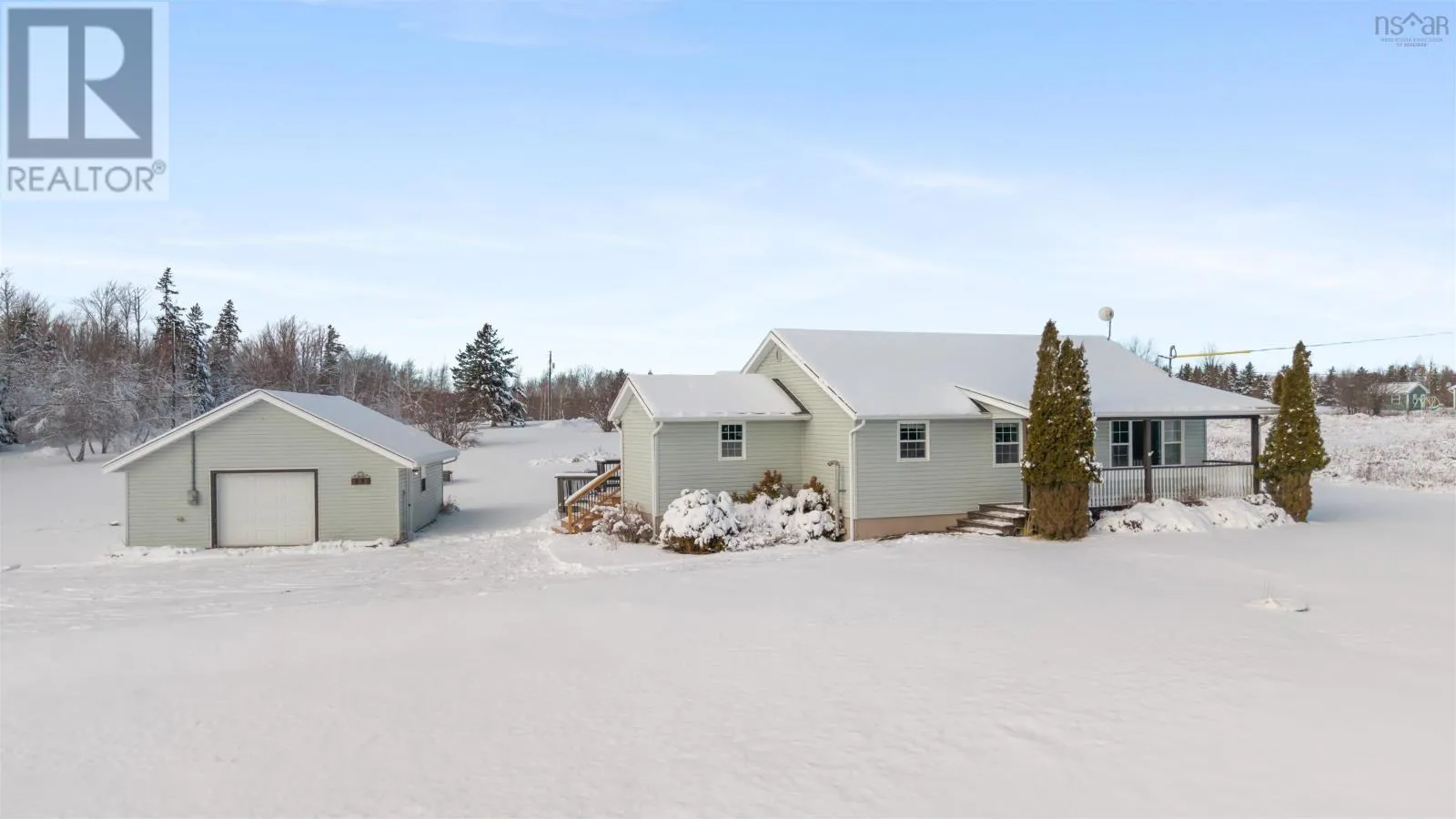 from Hamilton road first left onto Holmes lane, property on right see sign Welcome to this beautifully maintained modern bungalow, set on a private 2.3-acre lot just minutes from town with easy highway access. Enjoy peaceful outdoor living from the covered front porch or entertain on the spacious back deck overlooking the yard and above-ground poolperfect for summer gatherings or quiet evenings. Inside, the bright main floor offers a functional layout with two generously sized bedrooms, a welcoming living room, dedicated dining area, and an updated kitchen filled with natural light. A 4-piece bathroom completes the level, making everyday living comfortable and convenient. The newly renovated lower level adds exceptional versatility, featuring a large entertainment or family room with pellet stove, third bedroom, 3-piece bathroom, laundry area, and ample storageideal for guests or extended family. A detached, wired, and insulated garage provides space for vehicles, hobbies, or a workshop. Recent updates over the past three years include a new roof on both the house and garage, new windows, new appliances, and a fully renovated basement with new flooring, paint, moldings, and updated bathroom fixtures. Move-in ready, private, and thoughtfully updatedthis property truly deliver (id:27476)
