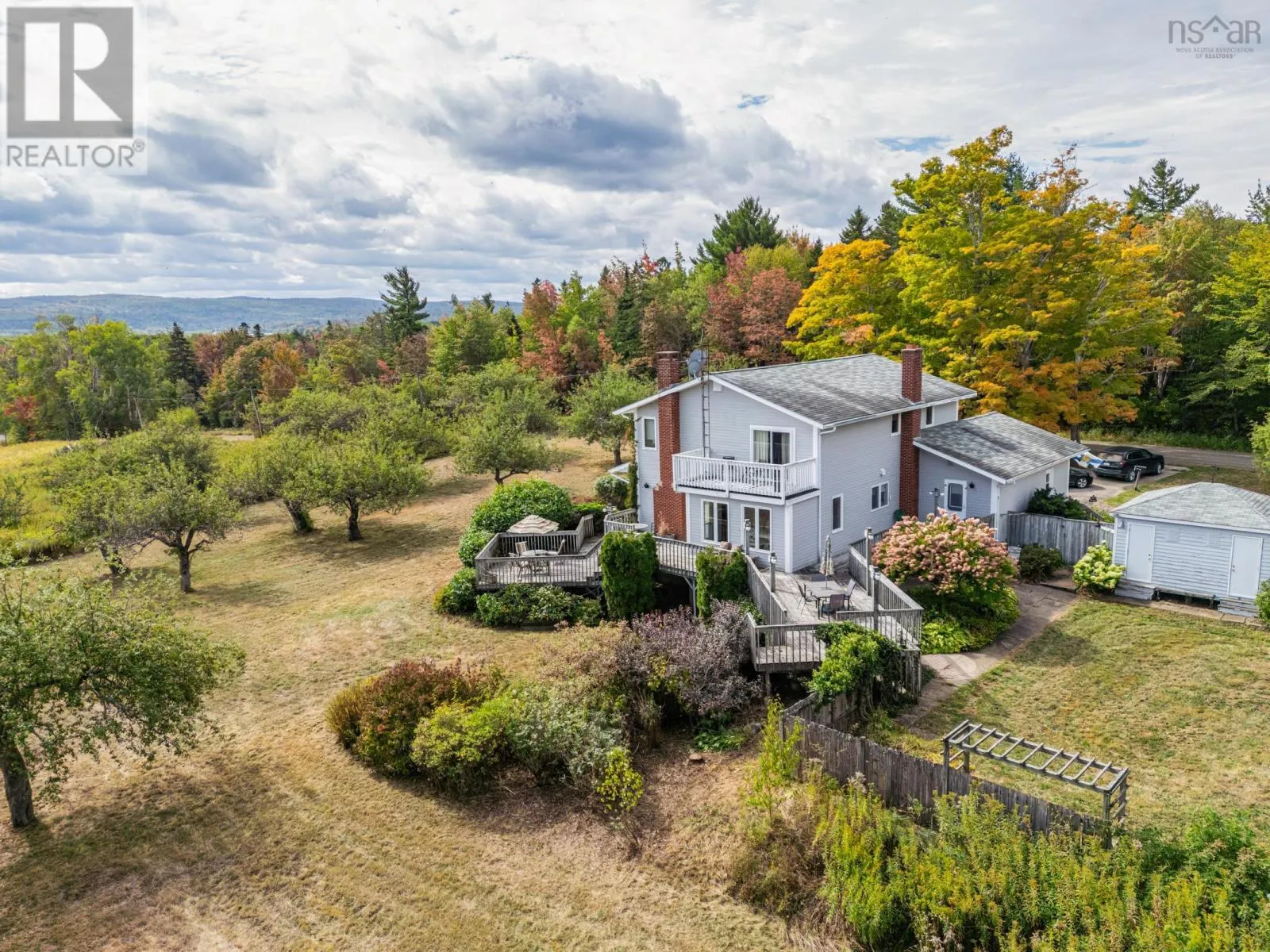 From Hwy 1 turn onto gravel Phinney Mountain Road. Look for civic number on the left. Outstanding 4 bedroom executive country home on 4.5 acres overlooking the Annapolis Valley. Known as 'Vinegar Hill', this home features seamless indoor/outdoor living, a chef's kitchen with DeCoste cabinetry, a living room with stone fireplace, large dining room, plus main floor study and laundry room. Upstairs offers a primary bedroom with private deck, ensuite, walk-in closet, second bathroom, and three additional bedrooms. The basement has a games room, cold room, utility room, and lots of storage. Outside is a paved driveway, huge wrap-around deck/patio, car port, lovely landscaping, and a large shed. Located on a quiet country lane, close to Bridgetown, this beautifully built and cared for home could be just what you have been waiting for. (id:27476)