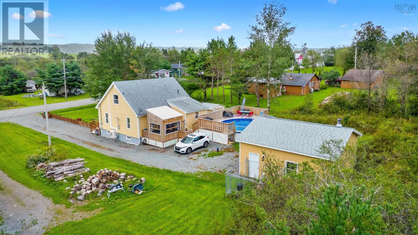 HWY 224 to the #336 or #289 to #336 Welcome to your dream home in the heart of a picturesque small town! This charming residence offers an array of recent updates and amenities that will make every day feel like a retreat. The entire home has been tastefully painted, creating a fresh/inviting atmosphere throughout. Stay comfortable year-round with a brand-new heat pump and a cozy pellet stove, perfect for those chilly winter evenings and a wood stove in the garage! The kitchen has been upgraded with a modern new island and beautiful Cherrywood cupboards, providing ample storage and a stylish focal point with five newer appliances. This home is equipped with a water softener for your convenience. Step outside and relax on the new decks, take a refreshing dip in the above ground pool with a screen room, or tinker away in the new double garage, complete with a wood stove for your projects. Additional storage is available in the new storage shed. Enjoy the perks of a small-town living with friendly neighbours and local gatherings at the town centre. Basic amenities like the post office and a convenience/liquor store are right in your community, while a short 10-minute drive takes you to gas stations and restaurants in Upper Stewiacke or Middle Musquodoboit. There's an elementary school right in the community, and junior and high schools are just 15-minutes away in Middle Musquodoboit. Health care needs are easily met with a hospital and drug store also in Middle Musquodoboit. Embrace a healthier lifestyle by sourcing fresh vegetables and meat from the local farmers un Upper Stewiacke and Middle Musquodoboit, contributing to the vibrant and close-knit community. Enjoy the serenity of this peaceful area, where you can truly savour the joys of rural living. This home offers a perfect blend of modern comfort and small-town charm, making it an ideal place to call home. Don't miss the opportunity to make this delightful property your today! (id:27476)