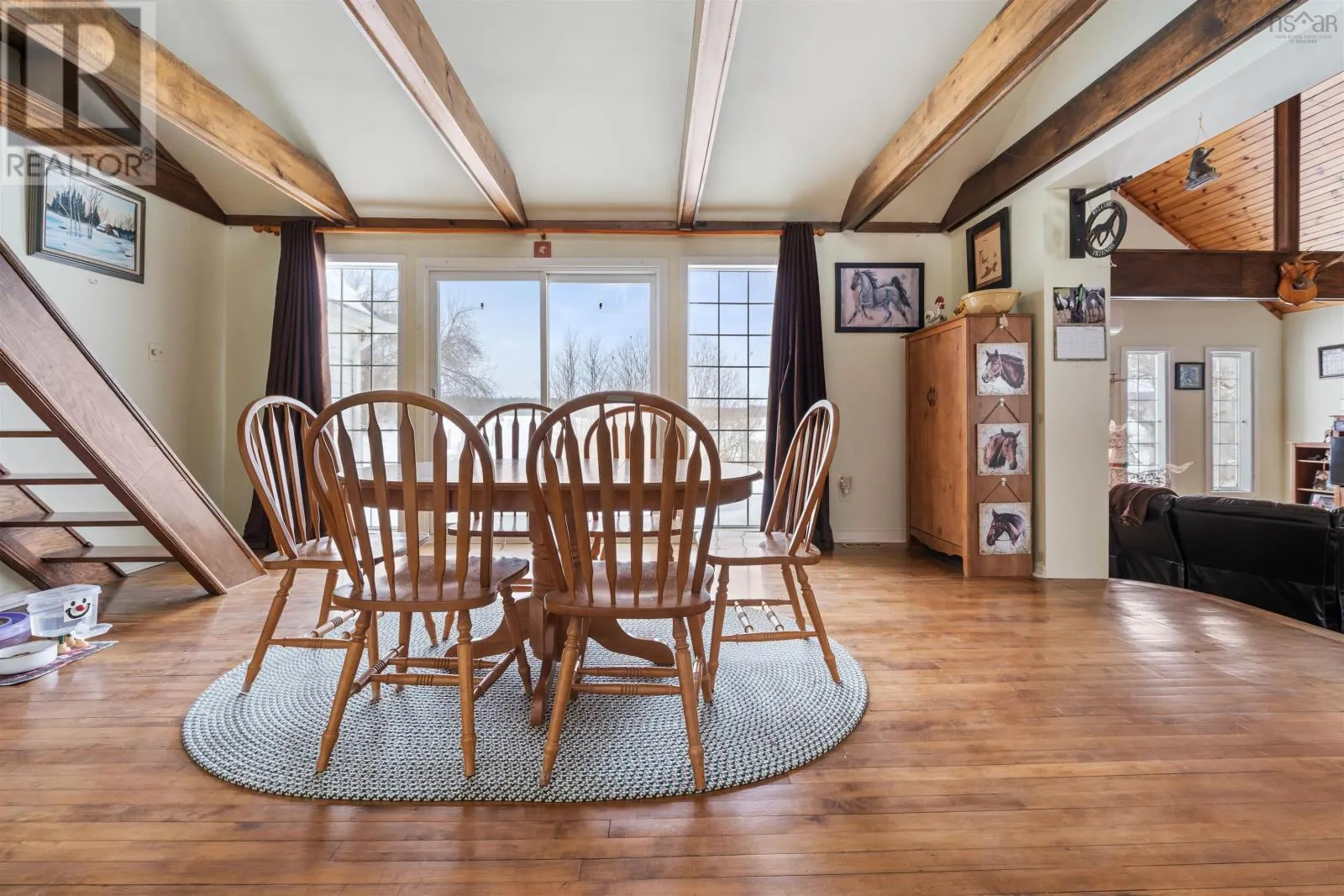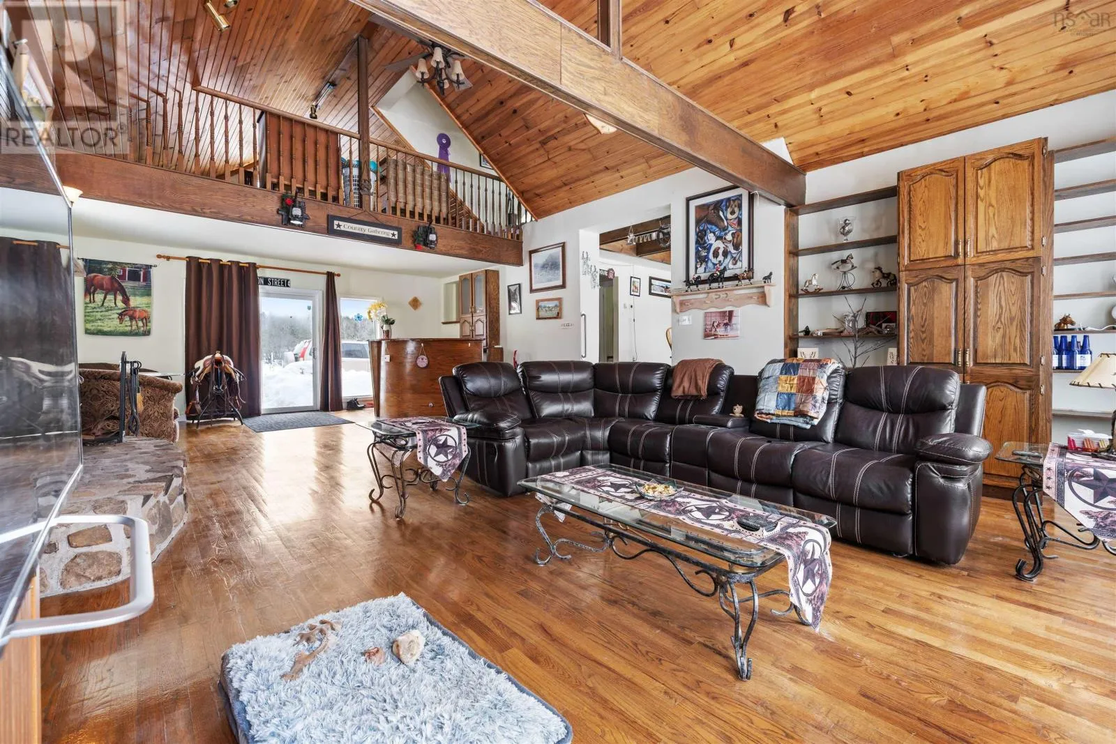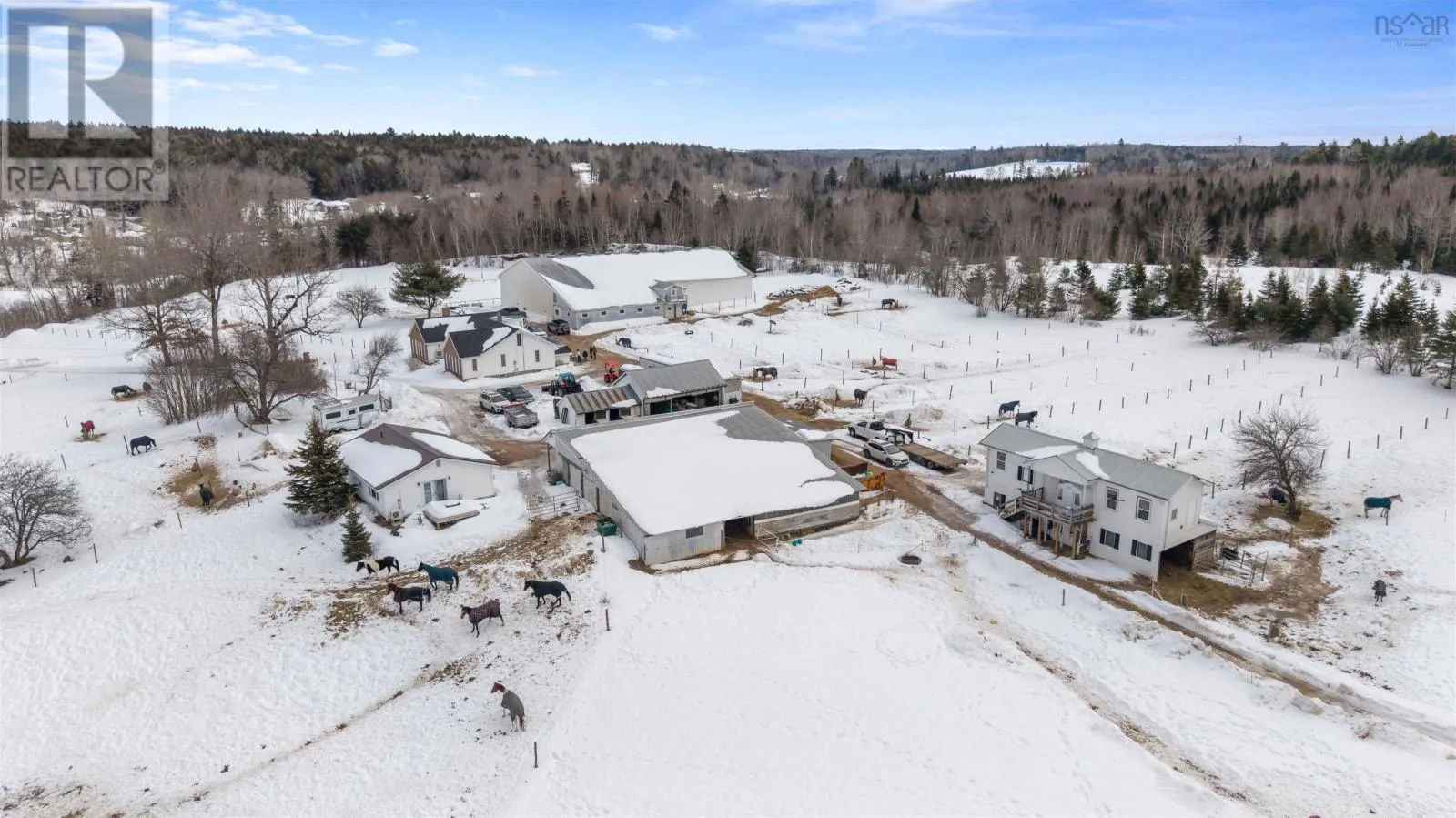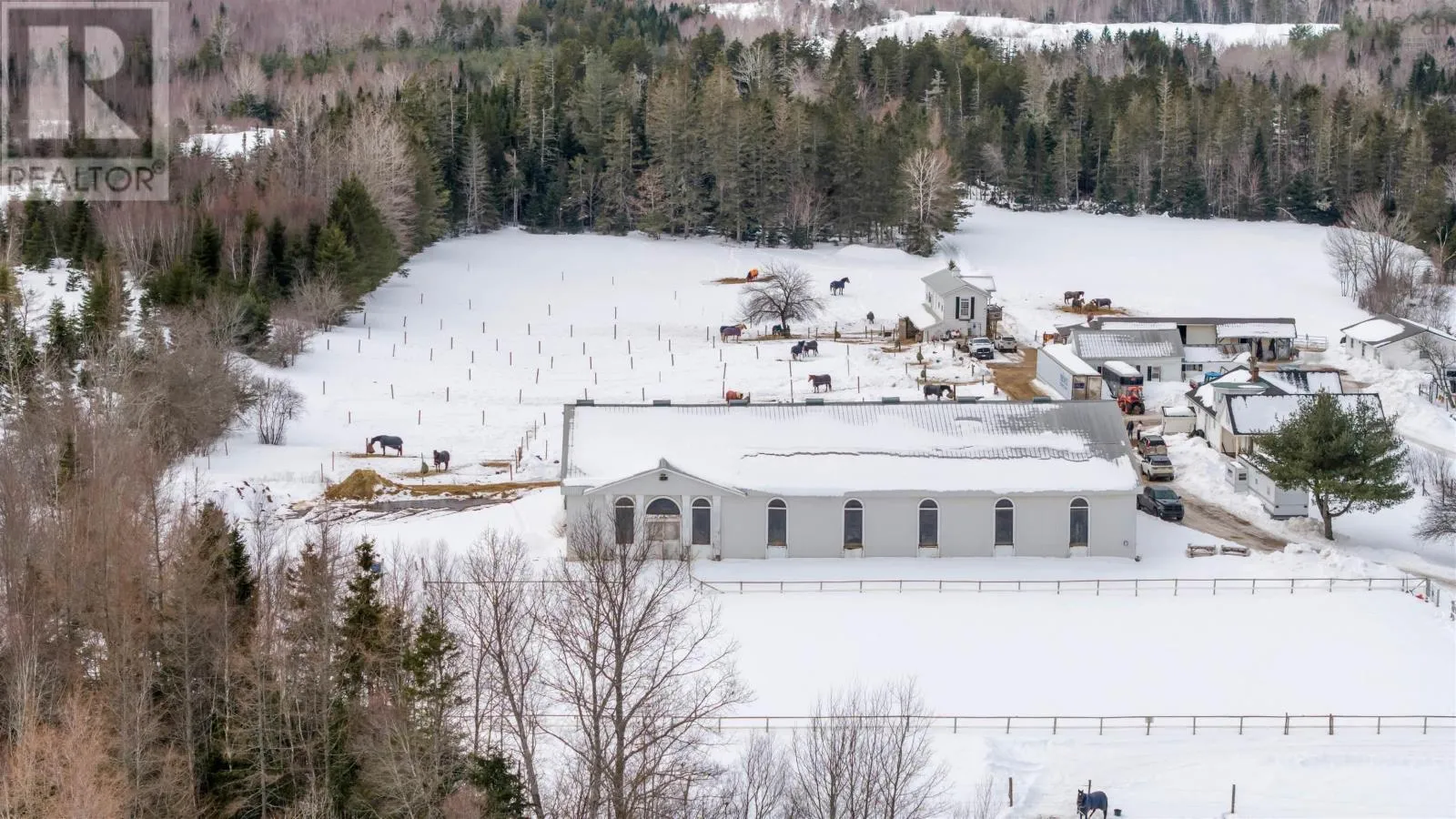 Google/Apple maps Turn-key equestrian property on 41.6 acres with indoor arena, fenced paddocks, two homes, and established boarding operation. Located in the quaint community of Upper Nine Mile River, this successful boarding facility offers incredible potential for lessons, training, breeding, or your own private horse farm. The main home features 2 bedrooms and 1.5 baths, including a spacious primary bedroom with the opportunity to convert the existing jacuzzi room into a walk-in closet and full ensuite. The living room is the highlight of the home, with vaulted ceilings, an eye-catching fireplace, and generous living space, while the loft area offers additional finished living space which could be enhanced with the addition of dormers. A second home on the property provides excellent flexibility for rental income, extended family, or farm help. This 1-bedroom, 1-bath home sits on a slab and includes a bonus room that could easily serve as a second bedroom, office, or tack room. The equestrian infrastructure is well established with approximately 25 cleared acres, much of it already fenced into paddocks and pasture. The 180 x 90 indoor arena features six attached stalls and a second level with bathroom, viewing area, and tack room. A newly built 100 x 200 outdoor arena adds additional riding space, while trails throughout the property provide plenty of room to explore. All located just 15 minutes to Highway 102 in Elmsdale and approximately 50 minutes to downtown Halifax, offering the perfect balance of rural living and city access. (id:27476)