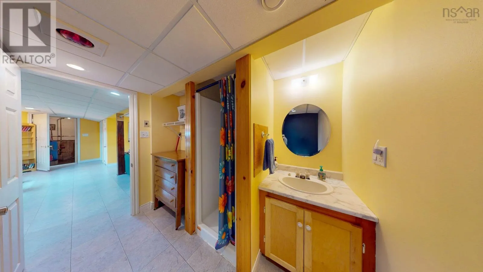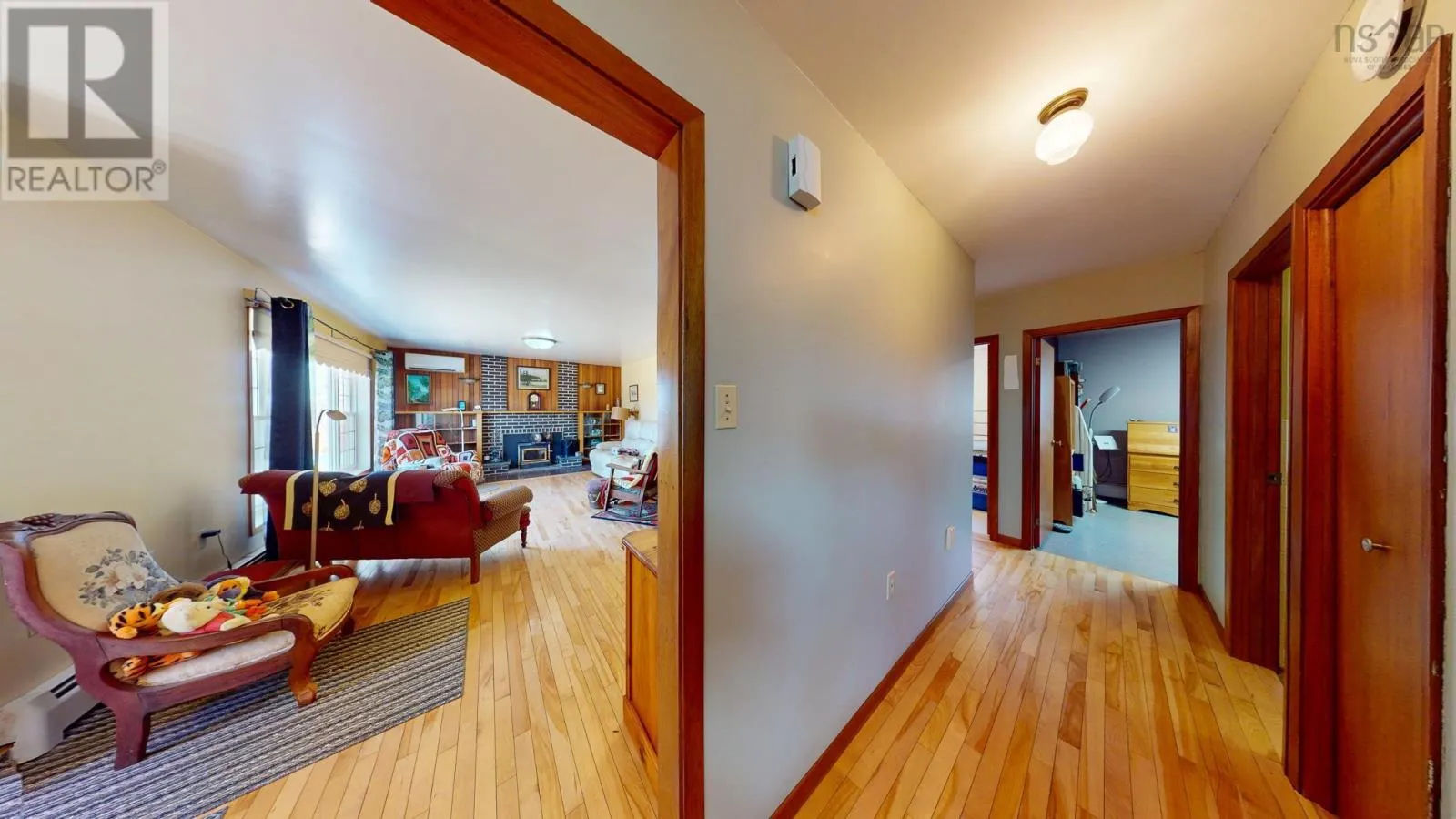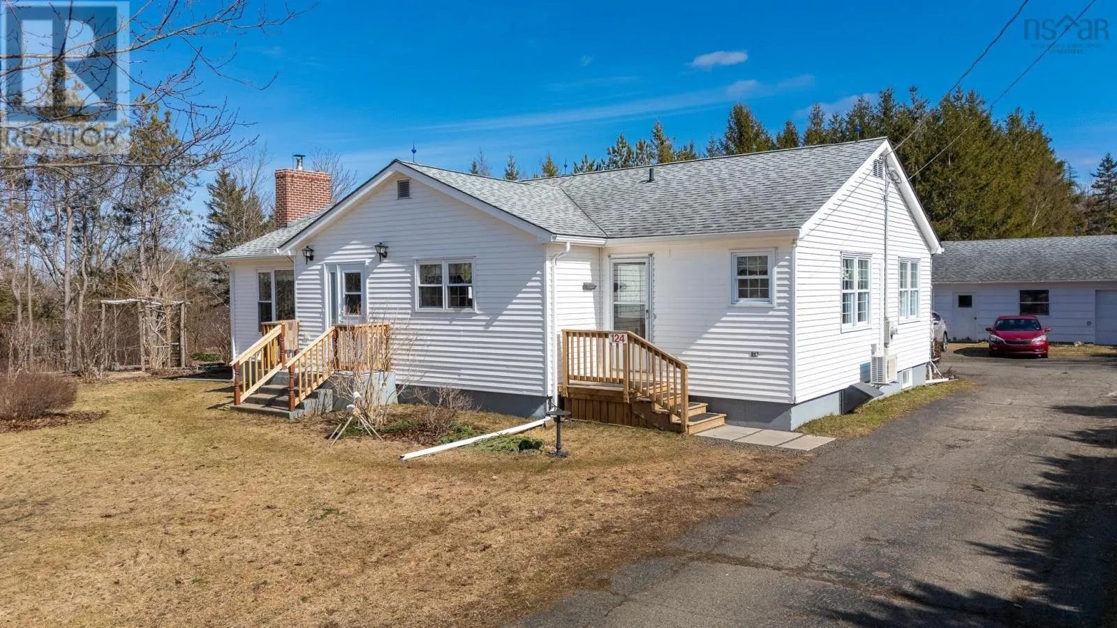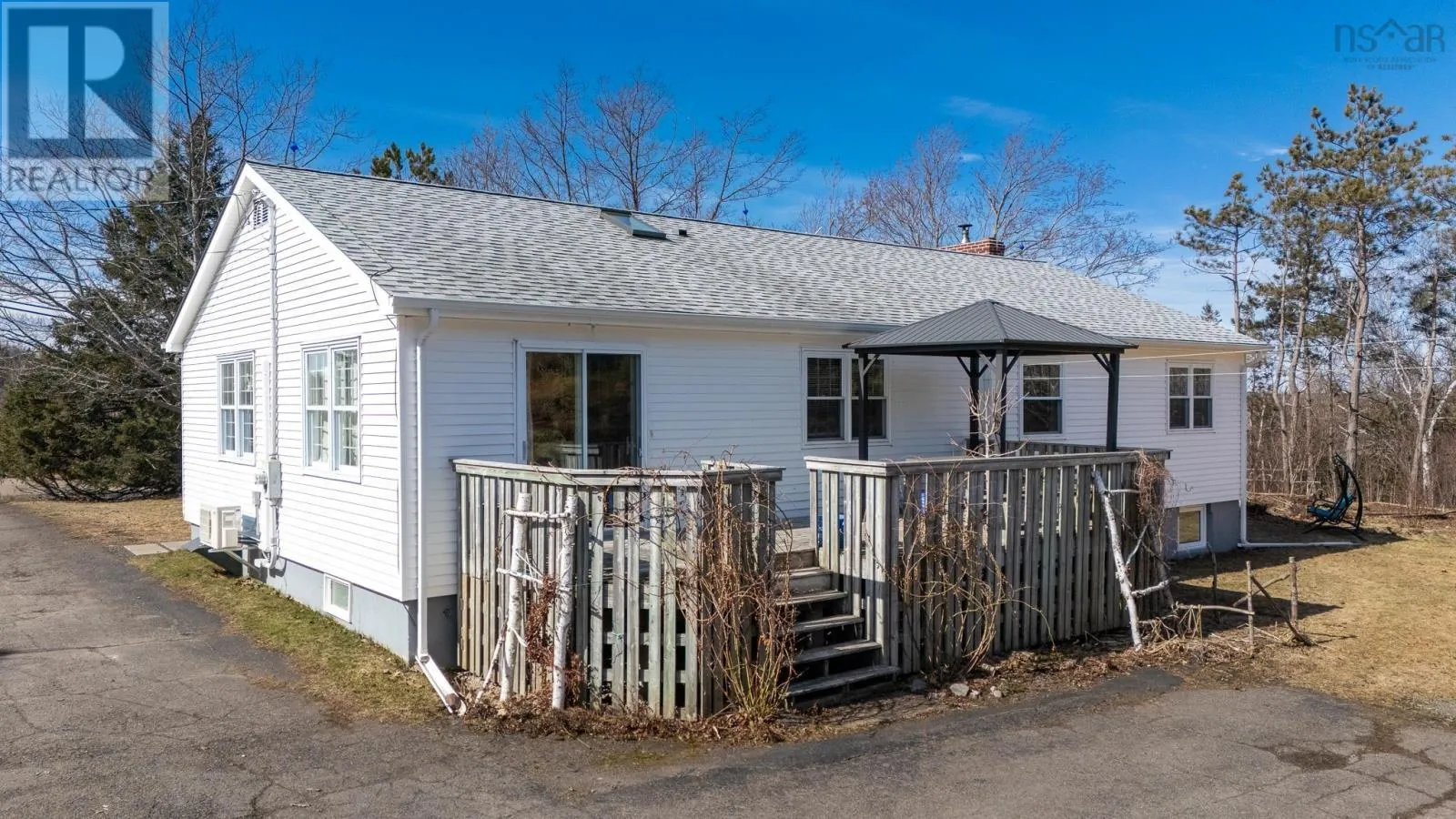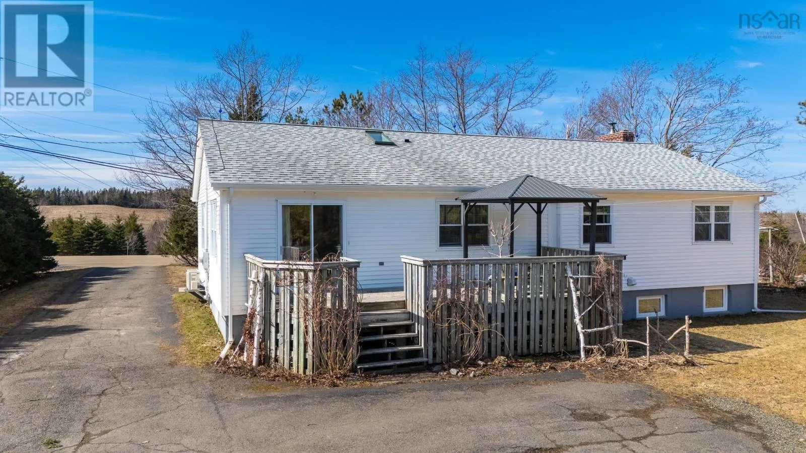 From Antigonish take Trans Canada Highway 104. Turn left onto Pomquet Monks Head Road. Set on a picturesque nearly 8-acre parcel with river frontage, this well-cared-for bungalow offers exceptional space, solid construction, and endless potential. The main level features beautiful hardwood floors, updated windows and doors, two bedrooms, and a third room thoughtfully converted to a convenient main-floor laundry, along with a full bath and additional half bath. The living room is warm and inviting with a cozy fireplace insert, while a bright home office with exterior access and its own half bath creates an ideal work-from-home setup. The fully finished, dry basement extends the living space with a large family room, spacious bedroom, full bathroom, cold room, and ample storage. Mechanical highlights include a 200-amp electrical service, generator panel, newer oil boiler, Roth oil tank, and two ductless heat pumps. Outside, enjoy a detached garage and a level yard framed by mature trees and gardens. Less than a km off the TCH104, just 15 minutes from the town of Antigonish, home of St.FX, and just a short drive to the Pomquet Beach Provincial Park and Ecole acadienne de Pomquet. (id:27476)