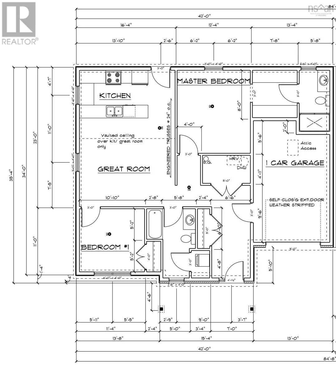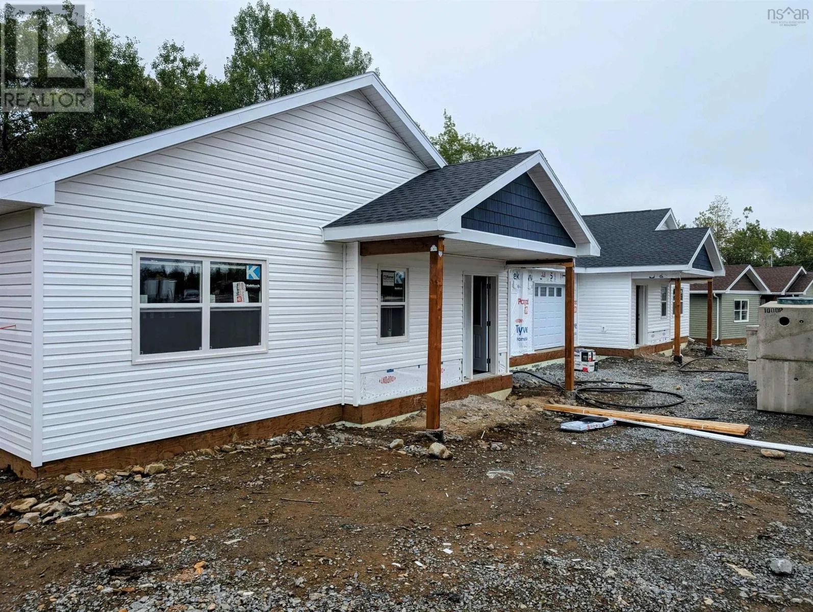 Sackville Drive to Buttercup Grove to Wineberry Way, right onto Shadebush Walk Welcome to Meadow Ridge Estates modern bungalow living at its finest!Just 20 minutes from downtown Halifax and 15 minutes from the airport, this thoughtfully designed homeoffers both convenience and comfort close to all essential amenities. Step inside to find a bright, openconcept main living area with vaulted ceilings and a spacious kitchen featuring abundant cabinetry. Theprimary suite includes a generous walk-through closet leading to a private ensuite with a 5 foot shower.A second full bathroom, guest bedroom, main floor laundry, and a large entryway add to the homespracticality. Enjoy outdoor living with a stamped concrete front porch and rear deck, perfect forrelaxing or entertaining. Additional highlights include a single-car garage and an energy-efficientductless heat pump. This home comes complete with HST included in the price and peace of mind provided byan 8-Year LUX Home Warranty. (id:27476)