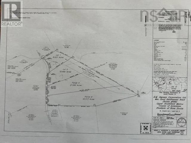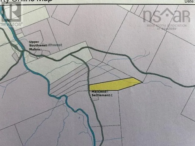 Left Side of MacLeod Settlement Road heading South. This property features 32.52 acres (+-) at MacLeod Settlement Road in Upper Southwest Mabou. The property was partially surveyed by the previous owner, and as per survey, features 330 feet (+-) of frontage on the MacLeod Settlement Road. The land appears to be wooded (mixed forest). A brook traverses the property towards the northeast end. (id:27476)