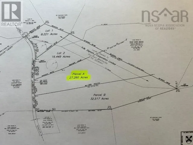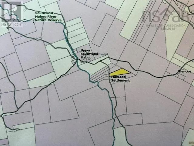 MacLeod Settlement Road at Upper West Mabou. This property features 27.26 acres (+-) fronting on the MacLeod Settlement Road at Upper South West Mabou. The property was surveyed in 2006, for the previous owner. The property is wooded (mixed forest), and features 235 feet of road front. A brook traverses the property towards the back. There is a trail established along the northern boundary of the property. This is beautiful country setting in a lovely picturesque area on Cape Breton Island. (id:27476)