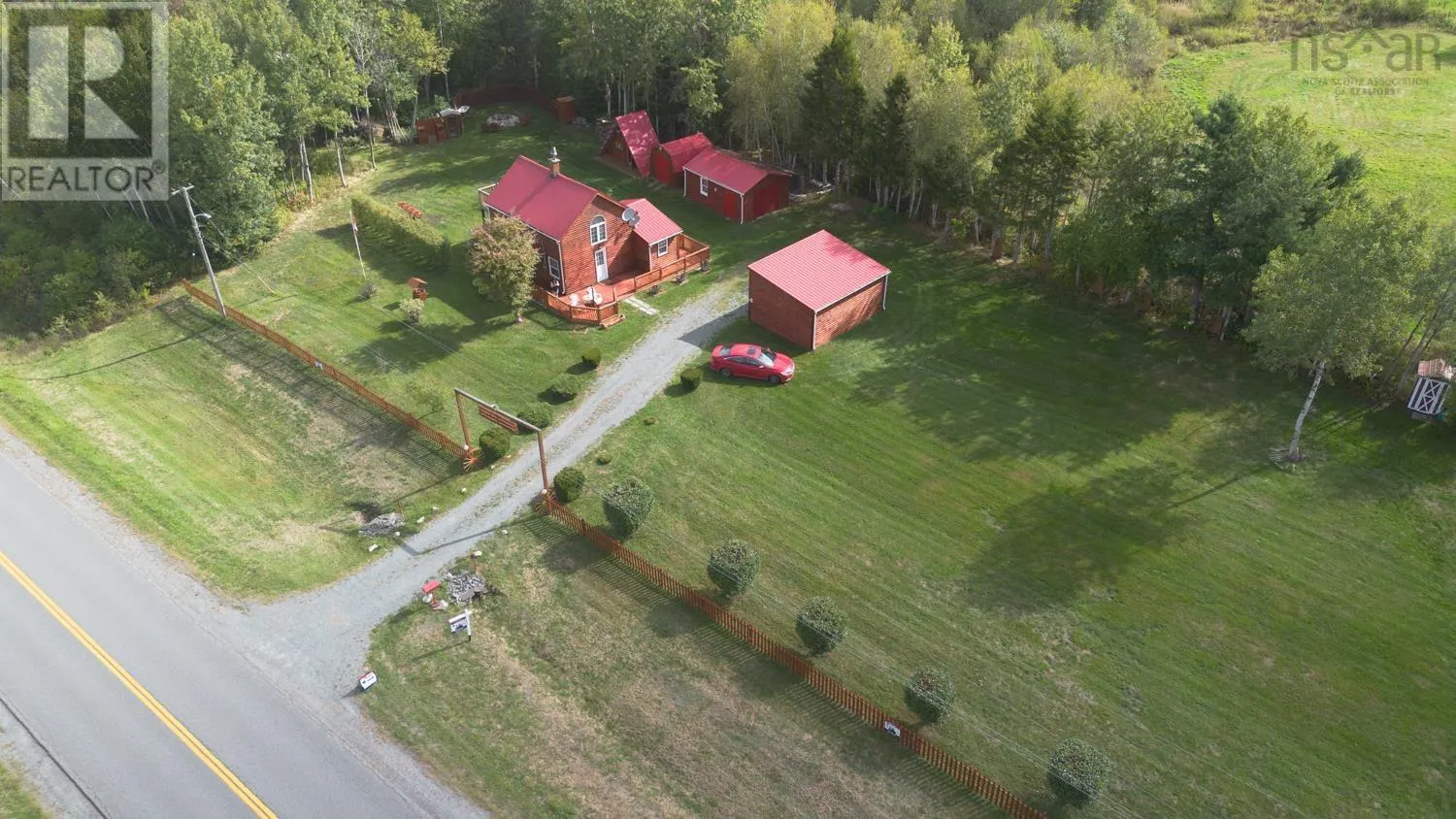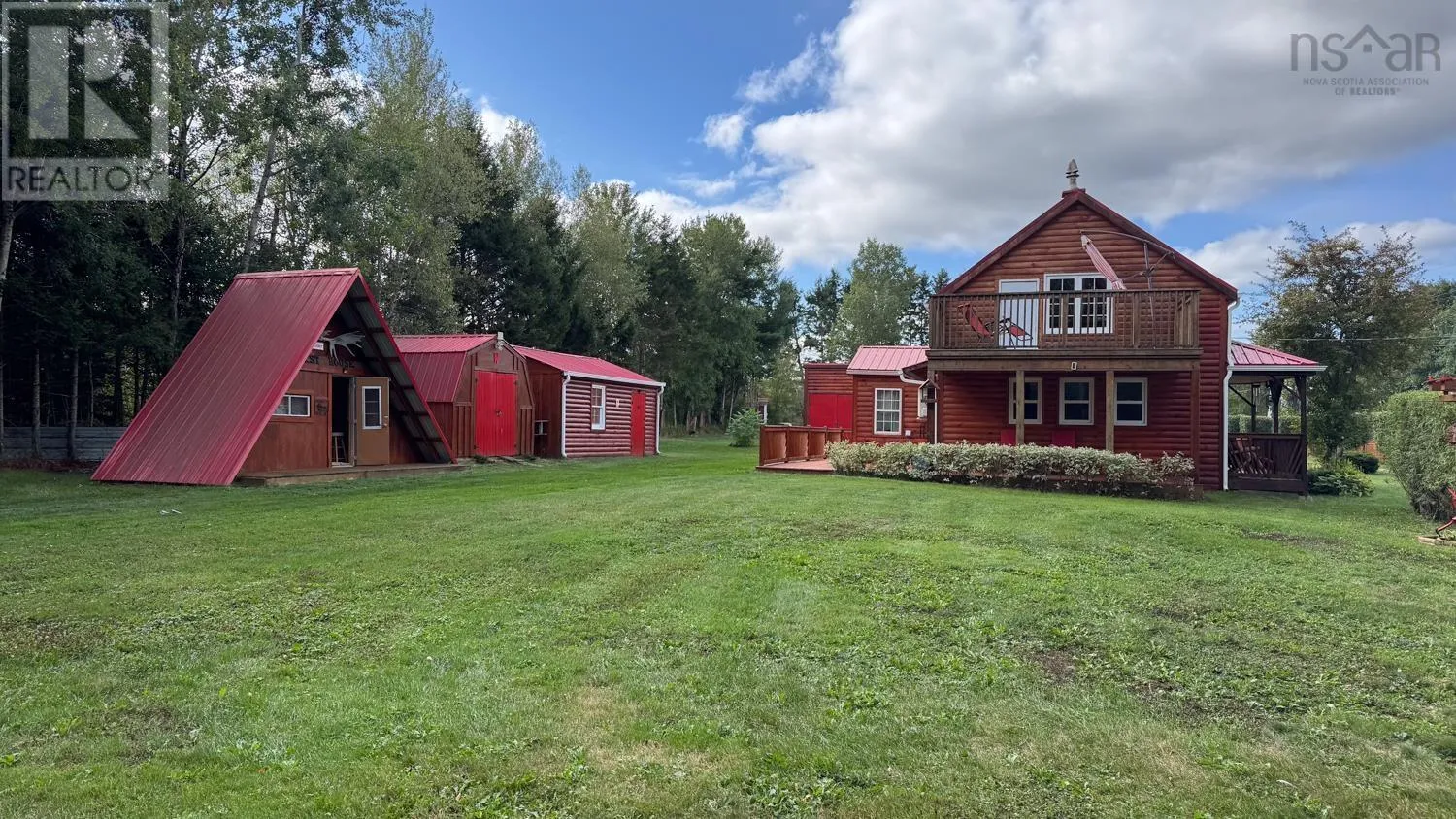 Upper Stewiacke Highway 280-Turn right onto Stewart Hill Road Move right into this stunning Cottage, Airbnb, Family Retreat, or Retirement Home on 1.3 Acres! Welcome to your perfect escape. Whether youre dreaming of a private cottage, an Airbnb income opportunity, a family retreat, or a retirement home, this log-style property with its bold red roof delivers character, comfort, and flexibility on 1.3 acres and low county taxes! Inside, the home is finished throughout in no-maintenance tongue-and-groove pine, perfectly complementing the log-style siding. Warm wood-accent laminate floors run throughout, and all windows have been updated. The main level offers a cozy kitchen with woodstove (fridge and stove included), a comfortable living area, a half bath with laundry, and a bedroom ready for your finishing touches. A heat pump ensures year-round comfort, and a brand-new hot water tank is already in place. Upstairs, a large open loft-style primary bedroom overlooks the living room below, with a wraparound walkway leading to a private raised deck overlooking the backyardan ideal spot for morning coffee or evening stargazing. If the spiral staircase isnt your style, the seller could install a traditional staircase instead. Theres also potential to add a third bedroom, and the seller is open to making that improvement for the right buyer. Outside, a charming A-frame guest space, two garages, a baby barn, and a dedicated RV power shed with its own meter provide endless possibilities, including the ability to service up to four RVs at once. Wraparound verandahs and multiple decks expand your outdoor living space, while the fire pit and large open field invite gatherings with friends and family. From the covered porch, enjoy peace and privacy while watching horses graze across the road. For outdoor enthusiasts, hunting, ATV trails, fishing, and a swimming hole are all nearby, yet youre just two minutes from Upper Stewiacke Village with its school, grocery, NSLC, gas station, restaurant, and community center. (id:27476)