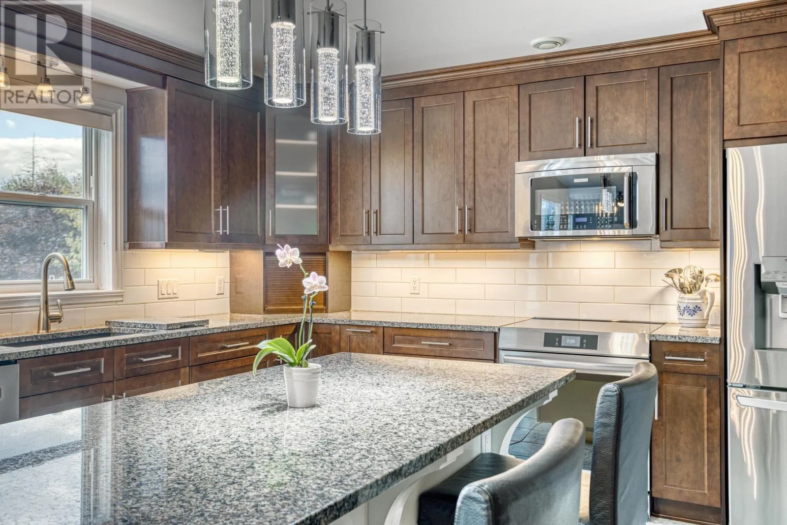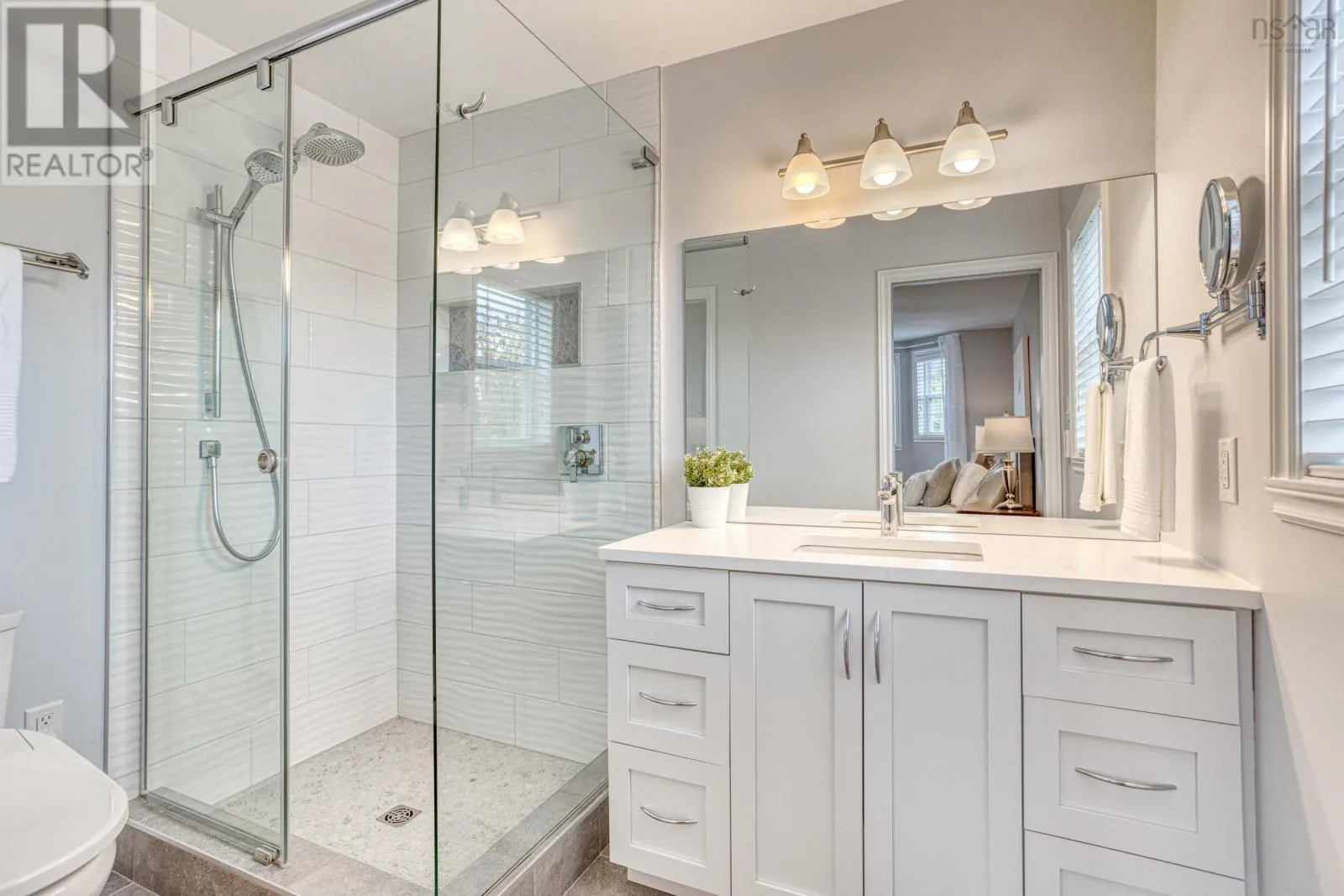 From Hammonds plains road, turn onto Westwood blvd by the petro can station, continue and turn right at high timber, then right onto summit. Nestled on a private, treed, and landscaped lot, this stunning two-story home offers the perfect blend of comfort, style, and modern convenience. Meticulously maintained and thoughtfully updated, it is truly move-in ready for its next owners. Step inside to an open-concept main floor featuring a bright family room with a cozy propane fireplace, a stylish kitchen with stone countertops (new appliances in 2023) and spacious living room. A convenient half bath adds to the functionality. Just off the kitchen, youll find a 12 x 16 four-season sunroom with gleaming hardwood floors & southern exposurean inviting spot to enjoy your morning coffeeleading to a three-season room with a relaxing hot tub. Upstairs, youll discover four bedrooms and two fully renovated bathrooms, with the ensuite also having heated floors. A new walk-in closet sets off this space. The fully finished lower level adds versatility with an additional bedroom, recroom, three-piece bathroom, laundry room, and a walkout to the backyard. Every detail has been considered, with additional upgrades including an on-demand propane water system, solar panels, EV charging base, backyard irrigation system, Hunter Douglas blinds, the water system replaced a few years ago and the driveway was just sealed. Enjoy exclusive Wright Lake access, perfect for swimming, kayaking, or simply unwinding by the water on warm summer days. Ideally located close to all amenities, this home offers easy access to St. Margarets Bay Centre for hockey, swimming, dance, and a gym. Youre just 20 minutes from Bayers Lakes shopping and dining, 30 minutes from downtown Halifax, or head out HWY 103 to explore the charming seaside communities of Chester, Lunenburg & Mahone Bay. Whether relaxing in the hot tub, enjoying the privacy of your treed lot, or taking advantage of the incredible recreational and lifestyle opportunities nearby, this home offers a lifestyle as exceptional as its features. (id:27476)