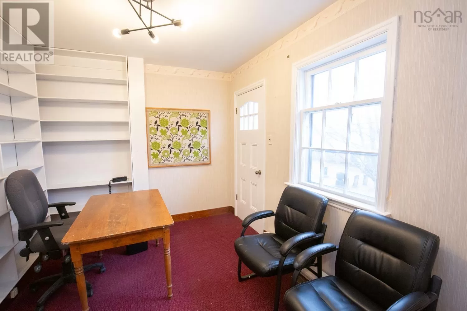 Pictou Road to Salmon River Road Situated in the community of Valley, just minutes from highway access to Halifax, New Glasgow, and New Brunswick. We have available a private office with entry-off, of the side of the building. It has built in desk and cabinets, a large window, and 2 closets. It can be furnished or vacant possession. There is a shared kitchen and two half baths on the lower level. Zoned Institutional. the property is suitable for various uses including medical clinics, civic and cultural spaces, community halls, daycare centers, educational services, farmers markets, funeral homes, nursing homes, places of worship, private clubs and organizations, and public recreation and residential facilities (please confirm permitted uses with the Municipality of Colchester). Rent includes heat and power. Call your REALTOR® today to explore the possibilities! (id:27476)