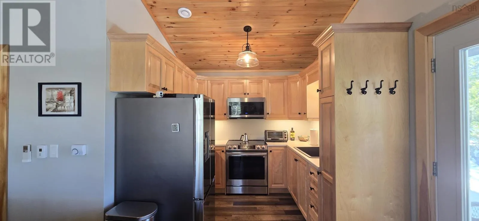 Highway 14 to new Ross Rd., right to Resort Rd, right onto Falcon and left onto Sparrow. Discover the perfect 2-bedroom home at Falls Lake Resort, ideal for a young couple, retirees, or anyone seeking a peaceful, year-round getaway. Built just 3 years ago, this single-family residence has been enjoyed solely as a private home, yet offers the potential for full-time or short-term rental if desired. Vaulted ceilings and abundant natural light enhance the luxurious interior, complemented by upgraded flooring and LED lighting throughout. The chef-inspired kitchen features a deep oversized sink, high-end appliances, custom cabinetry with crown molding, and under-cabinet lighting. Comfort is guaranteed year-round with hydronic radiant floor heating backed up by a heat pump. Step outside to enjoy the extended deck with outdoor fans, perfect for relaxing or entertaining. Extras include a 10x10 matching wired shed, 30-amp RV hookup, electric car charger, includes a GenerLink transfer system and a Generac 5500 portable generator, and keyless entry. Located just steps from pristine beaches, shared docks, and minutes from a ski resort and all local conveniences, this home offers an unmatched blend of comfort, convenience, and lifestyle. Move in and start enjoying everything Falls Lake has to offer today. (id:27476)