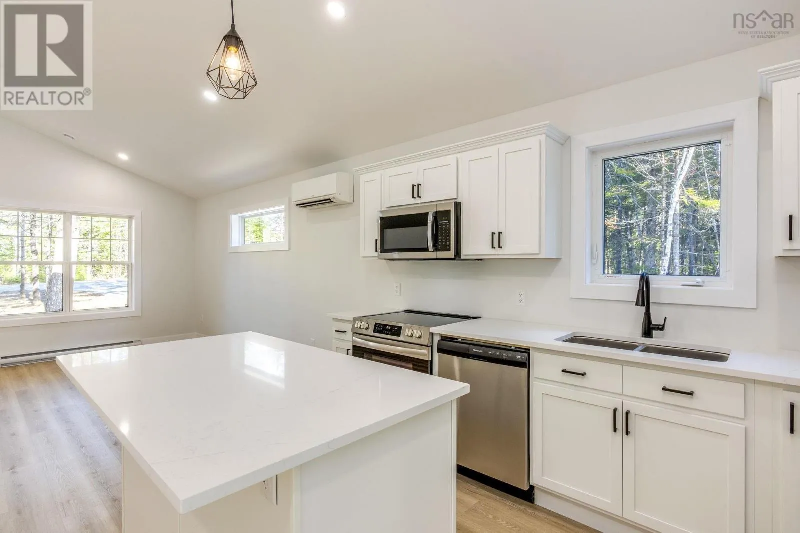 Highway 14 to Chateau Lane, left onto Alpine Way, Left on to Village Path, Left onto Summit Ridge. Lot 46 - CIVIC 43 Welcome to this beautifully crafted brand new 2 bedroom, 1 bath bungalow, perfectly designed for easy living in the heart of cottage country. Step inside to find modern comfort throughout, featuring durable vinyl plank flooring, elegant quartz countertops, and a bright, open-concept layout ideal for both relaxing and entertaining. Enjoy year round efficiency with a heat pump, and keep things organized with a convenient mudroom just off the rear entry. Outside, unwind on the spacious concrete patio that is already wired for a hot tub... perfect for soaking in the tranquility of your natural surroundings. Nestled in the sought-after Chateau Village community, homeowners enjoy exclusive access to a private beach on Falls Lake, offering the ultimate retreat for swimming, paddling, or simply taking in the peaceful views. Whether youre looking for a full-time residence or a weekend getaway, this thoughtfully designed bungalow offers the best of low maintenance modern living in a serene, wooded setting. Call your agent to view today! (id:27476)