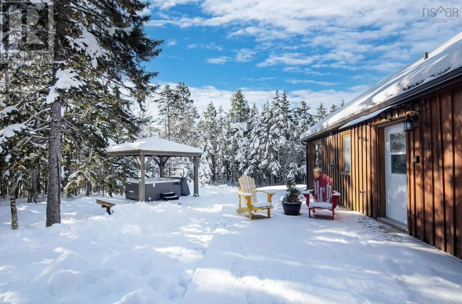 Take NS HWY 101 to HWY 1, to Chester Road (Trunk 18) to Chateau Lane to Alpine Way, then left on Village Path, and right on to Summit Ridge Road. Welcome to cottage country living in this highly sought-after communityso desirable that many choose to call it home year-round. This well-appointed three-bedroom, slab-on-grade bungalow offers exceptional versatility, whether you are seeking a full-time residence or a spacious seasonal retreat. The bright, open-concept living and kitchen area is highlighted by beautiful vaulted pine ceilings, creating a warm and inviting atmosphere. Electric heat is efficiently supplemented by a ductless mini-split system providing both heating and air conditioning for year-round comfort. Outdoor living is enhanced by two newly constructed decks, offering ample space for entertaining or relaxing, along with a private hot tubperfect for unwinding after a day of outdoor adventure. Additional features include a detached, wired double-car garage, a 10 x 14 storage shed, and convenient access to the popular Falls Lakeideal for swimming, paddling, and outdoor enjoyment. Located just 20 minutes from Windsor, the area offers an abundance of recreational opportunities, including lakes and streams, provincial parks, hiking trails, and nearby skiing. This is an excellent opportunity to enjoy the best of relaxed living with easy access to amenities. Book your private viewing today. (id:27476)