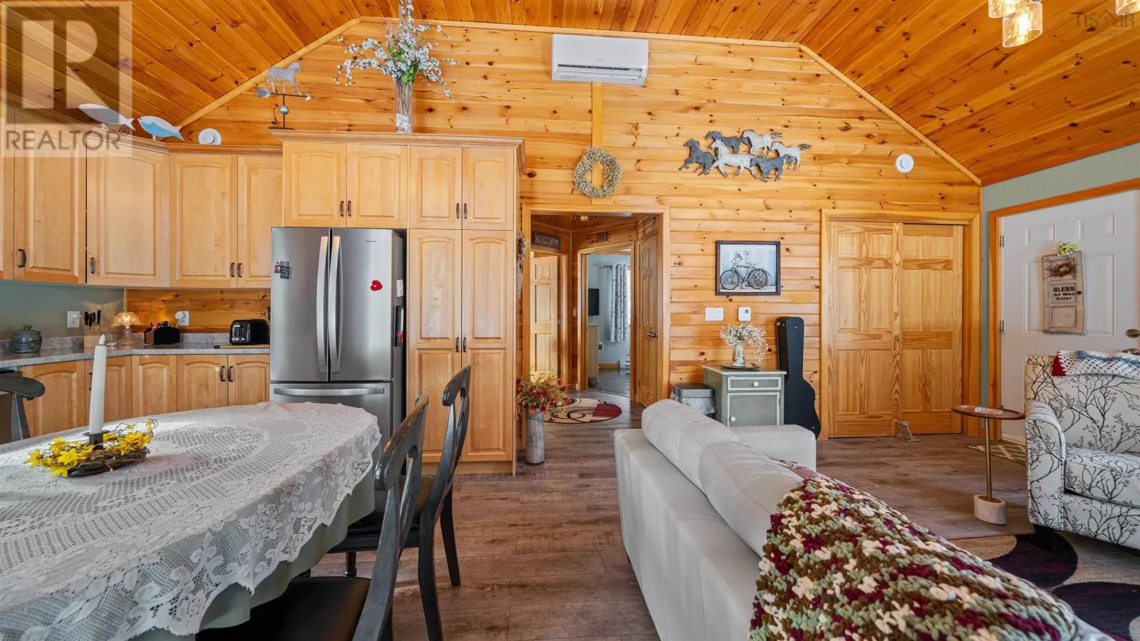 From 101 take exit 5 and head west to Hwy 1 turning right to Hwy 14, follow New Ross Rd and turn right, then right on Fall Lake Resort on Resort Rd take your second right on Falcon Drive, follow no exit sign and take a left onto Sunshine Lane Hidden within the privacy of Falls Lake Resort, this custom-built, one-level home offers the perfect blend of comfort, nature, and thoughtful design. Featuring two bedrooms, an open-concept great room, upgraded windows, and one of the largest lakefront lots on Murphy Lake offering an amazing private beach, you and your family are going to love living in 10 Sunshine Lane. The sun-filled great room showcases cathedral wood ceilings and serves as the heart of the home, ideal for everyday living and relaxing. Pine accents and high end custom cabinetry complement the natural setting while maintaining a contemporary feel. The well-designed kitchen with stainless steel appliances invites creativity and easy entertaining. The sellers spared no expense in the customization of this beautiful lakefront oasis, promising years of carefree stewardship to the new owners. Outdoors, the expansive wooden patio extends the living space, offering an ideal setting for bird watching, stargazing, or hosting friends, with the added potential of extending the existing home further. Enjoy the year round lake views from the privacy of your kitchen table. The nature focused landscaped yard is completed with a garden shed and maintained walking trails. This property includes deeded access to Falls Lake and Murphy Lake and is conveniently located less than an hour from Halifax, 18 minutes to Windsor, and 28 minutes to Chester. Part of a friendly condo community with a monthly condo fee of $117.08. annual fee covering road maintenance, beach upkeep, garbage, snow removal, and septic care. (id:27476)