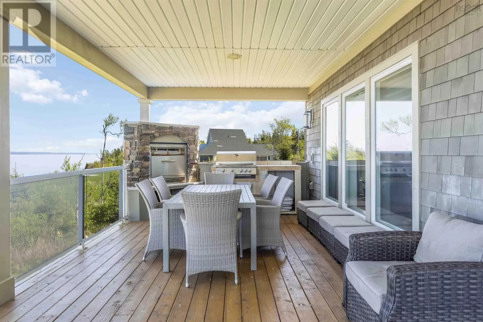 101 to Victoria Rd, head north over the mountain, Left on McNally Rd, Right on Augsburger, Left on Fundy Bay to civic on RHS The epitome of luxury coastal living, this spectacular oceanfront estate has every upgraded feature! The quality custom build boasts over 6000 sqft of thoughtfully designed living space on 3.6 private acres showcasing unbeatable 180 degree ocean vistas. Three bedrooms each with private ensuite, plus primary bedroom with massive 6 piece ensuite, triple walk in closets, soaring ceiling & windows in formal dining room, indoor pool & outdoor hot tub overlooking the ocean, games room with wet bar, wine cellar/tasting room, generous bonus room, office/library, triple attached & double detached garages, outdoor kitchen and massive raised deck flaunting views of Isle Haute, the Bay of Fundy & the coast of New Brunswick as the backdrop of breathtaking sunrises AND sunsets over the water. Ideally situated off the beaten path, enveloped in the peaceful natural landscape, this property is a total showstopper proving you actually can have it all! (id:27476)