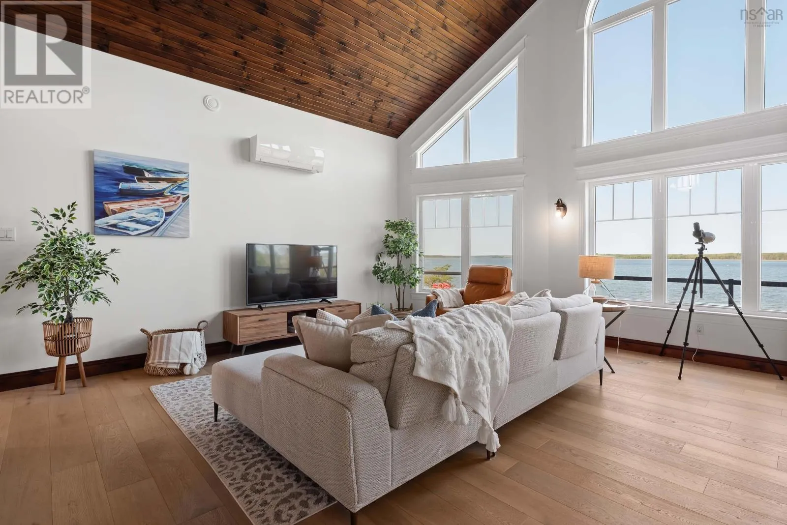 From the 311 Tatamagouche to Hwy 6 toward Malagash, continue towards Wallace. Property in Wallace Bridge on right side of Hwy 6. Escape to the serene beauty of Wallace Bay, where this expansive chalet-style home blends luxury with natural tranquility. Set on a sprawling lot with 400 feet of private waterfront, this A-frame retreat offers breathtaking views of the Northumberland Strait, stunning sunrises and sunsets, and a thoughtfully designed interior that seamlessly balances modern upgrades with timeless charm. Professionally renovated throughout, this home showcases high-quality craftsmanship and modern conveniences. The custom kitchen is a standout, featuring quartz countertops, wood floating shelves, a walk-in pantry, and a large working islandideal for both casual mornings and gourmet entertaining. The open-to-above great room is the heart of the home, with soaring ceilings, floor-to-ceiling windows that flood the space with natural light, and a cozy fireplace for year-round comfort. Upstairs, the loft-style primary suite offers a private retreat with stunning water views and a fully renovated ensuite, complete with in-floor heating, a custom-tiled shower, and a stone countertops. A fully renovated main floor bathroom and gorgeous engineered hardwood floors elevate the main living areas, while heat pumps and a new propane furnace provide energy-efficient, year-round comfort. The homes exquisite curb appeal is matched by its beautifully landscaped property, featuring mature gardens, a wrap-around deck, and a fire pit area perfect for gathering under the stars. Your coastal lifestyle awaitsswim, boat, or kayak from your private waterfront, explore nearby trails and beaches, or take in the sea breeze in this vibrant community. Wallace Wharf (with boat launch and docking), Ski Wentworth, and several golf courses, including Northumberland Links, Wallace River, and Fox Harbour Resort, are just minutes away. This is your chance to embrace a peaceful, four-season oceanfront lifestyle in one of the regions most desirable locations! (id:27476)