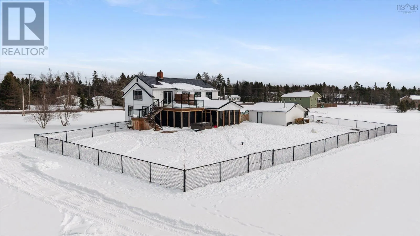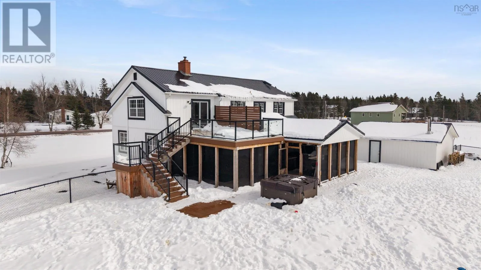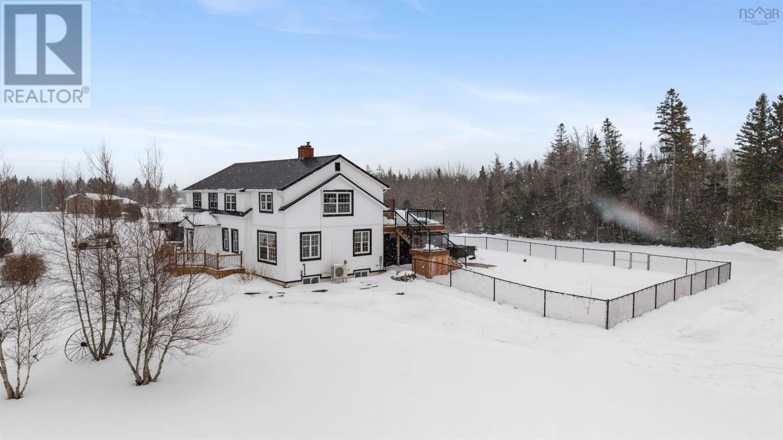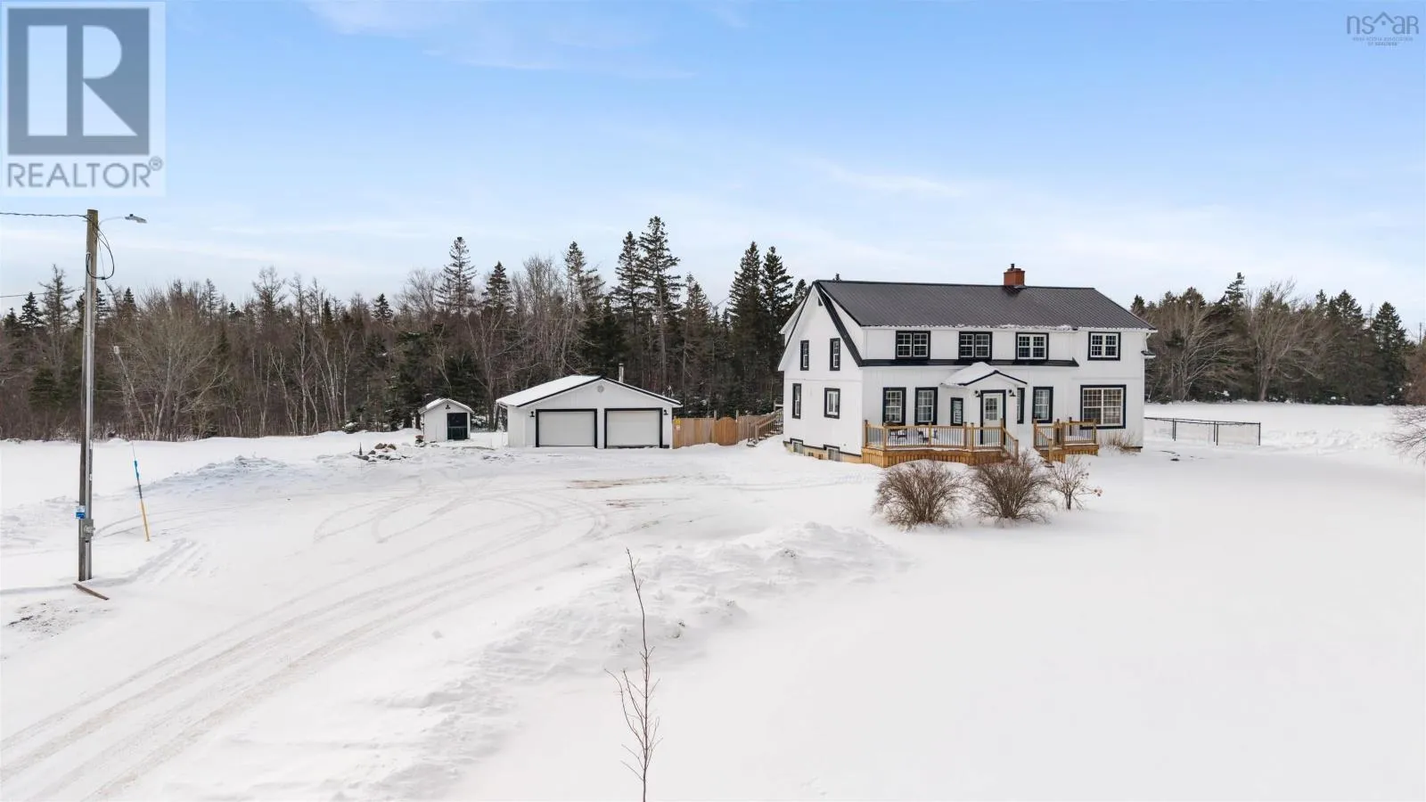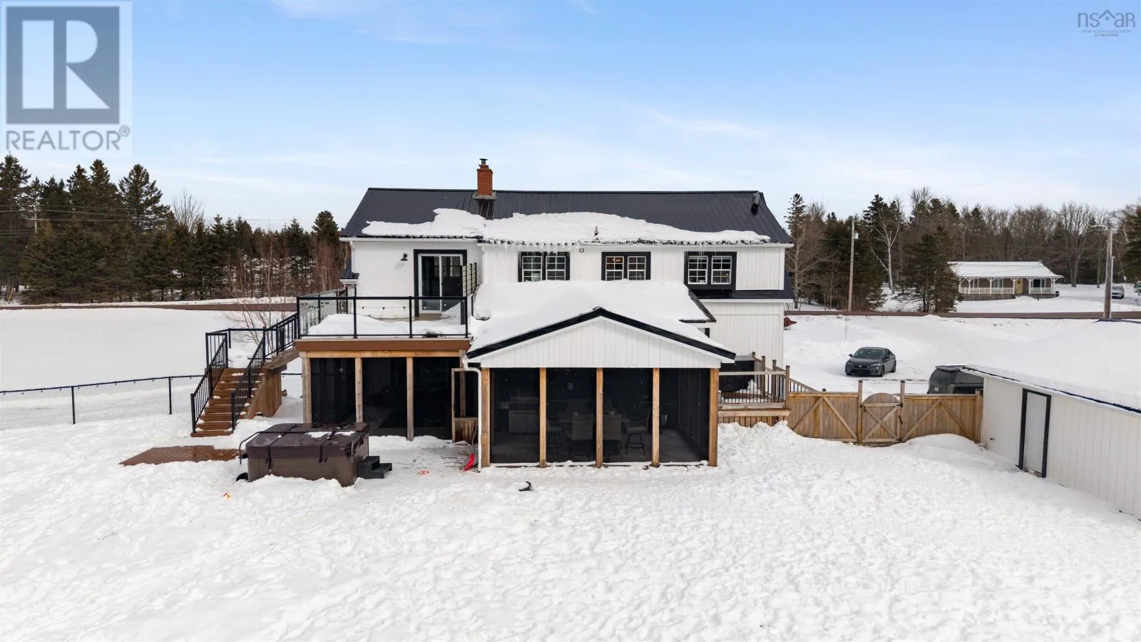 https://goo.gl/maps/u4akfHr9M8BXAtMx8 COMPLETELY RENOVATED FIVE BEDROOM, TWO STORY HOME sitting on 3.8 Acres located just outside of Amherst, NS! Located just minutes to the Amherst Golf Course, Trans Canada Highway or 15 minutes to our beautiful beaches. This Century home was moved 15 years ago onto a new foundation/location. The main floor of the home offers open concept living with hardwood or new flooring throughout. Rooms include large entryway, beautiful laundry room, updated kitchen pantry, relaxing common space, new eat in kitchen, separate large dining room, living room with cozy wood insert with and double patio doors to a private deck, outside kitchen space all completely covered, fenced in back yard & back entrance to the two bay de-attached garage! Upstairs youll fine the large master bedroom suite on one side of the home with large sitting room, en suite bath. Also two guest bedrooms. The lower level of this home provides buyers with a large family room, third full bathroom, two additional guest rooms, storage and utility space. The property offers ducted furnace, wood stove insert, beautifully landscaped yard & absolute lovely area! Whether you are dreaming of a full-time family home or just an all in one exceptional country property with elegance, and convenience of minutes from down town Amherst, the Amherst Golf Course or TCH...this one could be for you. (id:27476)