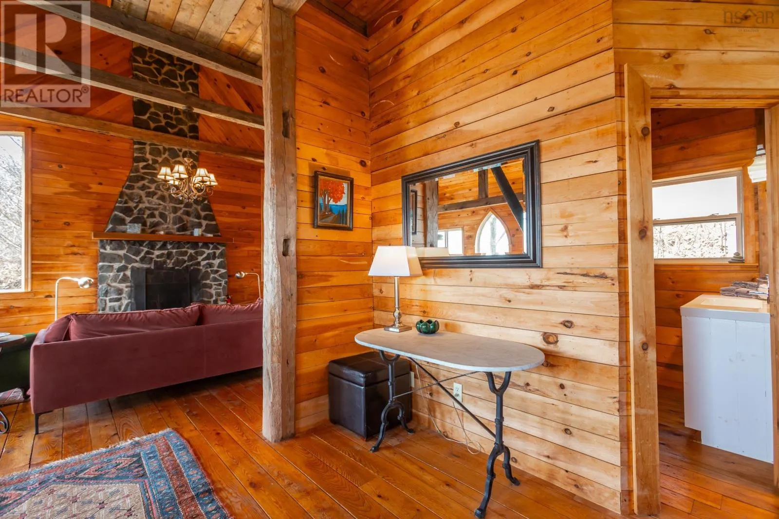 Take Highway 217 west along the Digby Neck to Waterford. The property is situated at the top of a hill. Look for civic number. Stunning, private seaside home overlooking St Mary's Bay just minutes from Digby. This post and beam 2 bedroom, 1.5 bath property with huge stone fireplace is quintessentially Nova Scotia. Enjoy open concept design, large windows to soak up the views, soaring 27 foot ceiling in the living/dining room, huge wrap around deck and easy access to the endless shore. The systems include a drilled well, lovely wood stove, electric baseboard heat and that magical stone fireplace. Set well off the road with landscaped gardens full of wild roses and flowers, then follow the meandering path to beautiful St Mary's Bay. Enjoy beach combing, bonfires, sunrises and stress-free days in your own private sanctuary. Don't miss this rare opportunity! (id:27476)