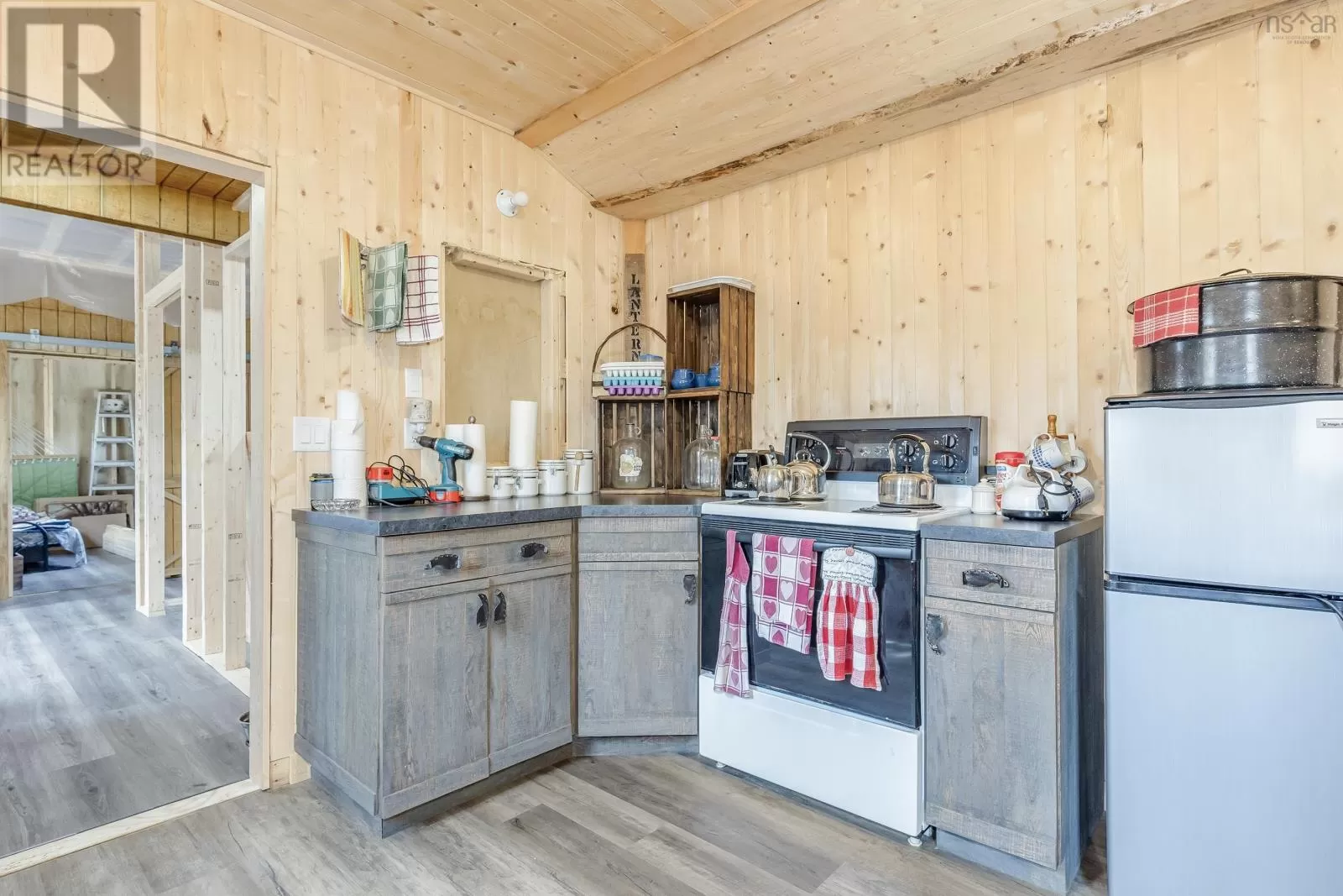 Hwy 10 to Waterloo Avenue, property on rhs GLAMPING ANYONE??? Adorable 1 bedroom camp/ cottage nestled into over an acre with deeded access to popular Waterloo Lake! A work in progress with most of the heavy lifting completed including wrap around driveway, substantial clearing, new drilled well (not hooked up to the cottage), woodstove, 200amp panel, bathroom space framed in, new vinyl click flooring throughout, pine clad living room/kitchen, vinyl windows, kitchenette, insulation, metal roof and an outhouse on site. The ideal getaway or future building location, only 20 min. to all of Middleton's many amenities, 1 hr to Bridgewater, 2 hrs to Halifax. (id:27476)