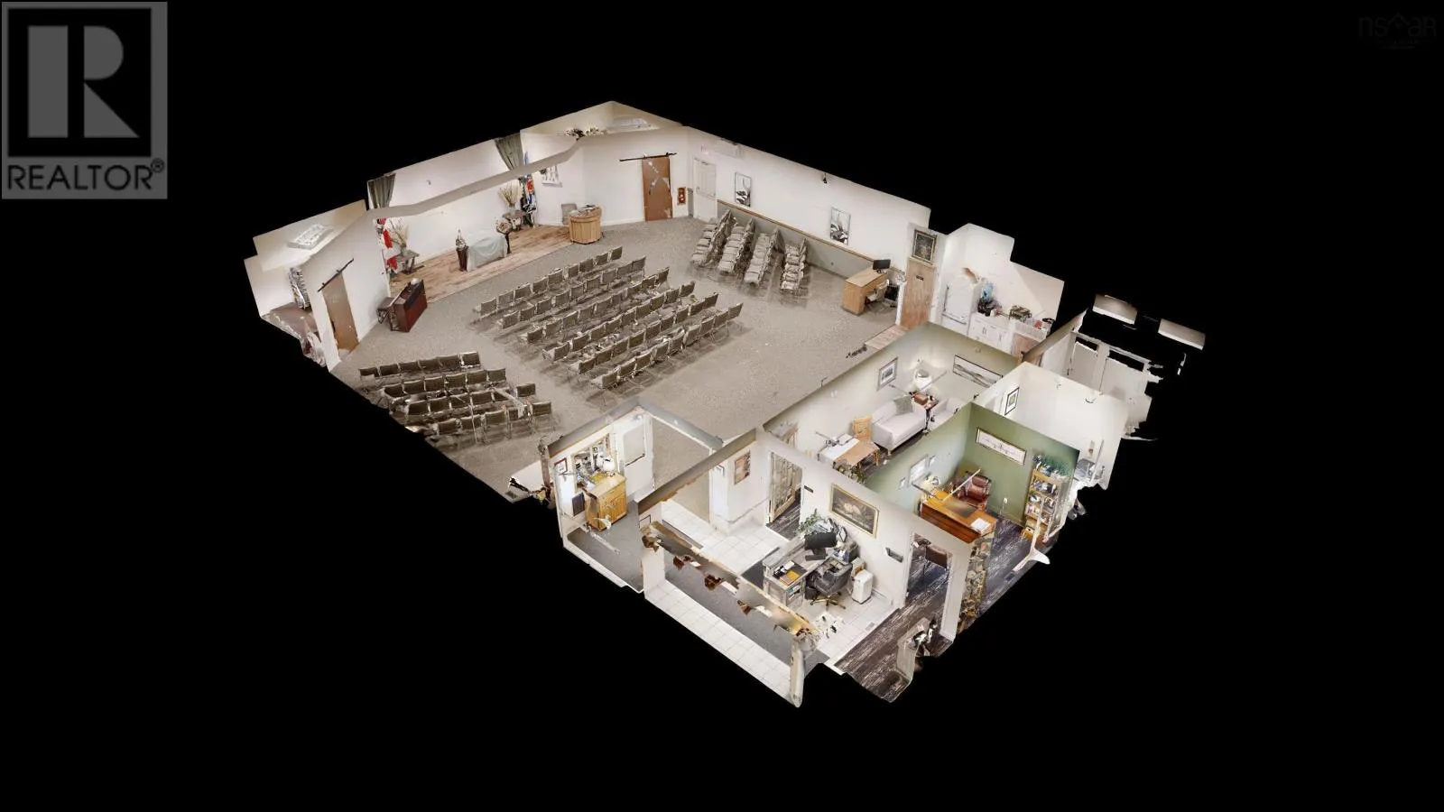 Highway 1 Waterville. Commercial Property for Sale with C-3 ZONING ALSO PERMITTING RESIDENTIAL DEVELOPMENT Waterville, Nova Scotia Excellent opportunity to own a one-level, maintenance-free commercial building located in a high-traffic area fronting on Highway 1 in Waterville, Nova Scotia. This prime location offers exceptional visibility and accessibility, ideal for a wide range of business ventures OR RESIDENTIAL RE-DEVELOPMENT The property features a large, level paved parking lot with ample space for customers and staff, exterior lighting, and well-maintained landscaping for strong curb appeal. Recent upgrades include: new electrical with LED lighting thru-out, new vinyl siding, new offices, updated washrooms, reverse osmosis water treatment system, updated heating & cooling system. Inside, the spacious main showroom provides flexible open-concept space suitable for displaying vehicles, boats, pools, hot tubs, or other large merchandise. The layout also allows for easy subdivision, making it well-suited for medical, professional, or retail uses. Additional features include customer and employee washrooms, a comfortable waiting area, offices, and a reception area. This property represents a fantastic opportunity for a new or expanding business. With Municipal approval, there is also potential to convert the building into residential units, adding future development value. (id:27476)
