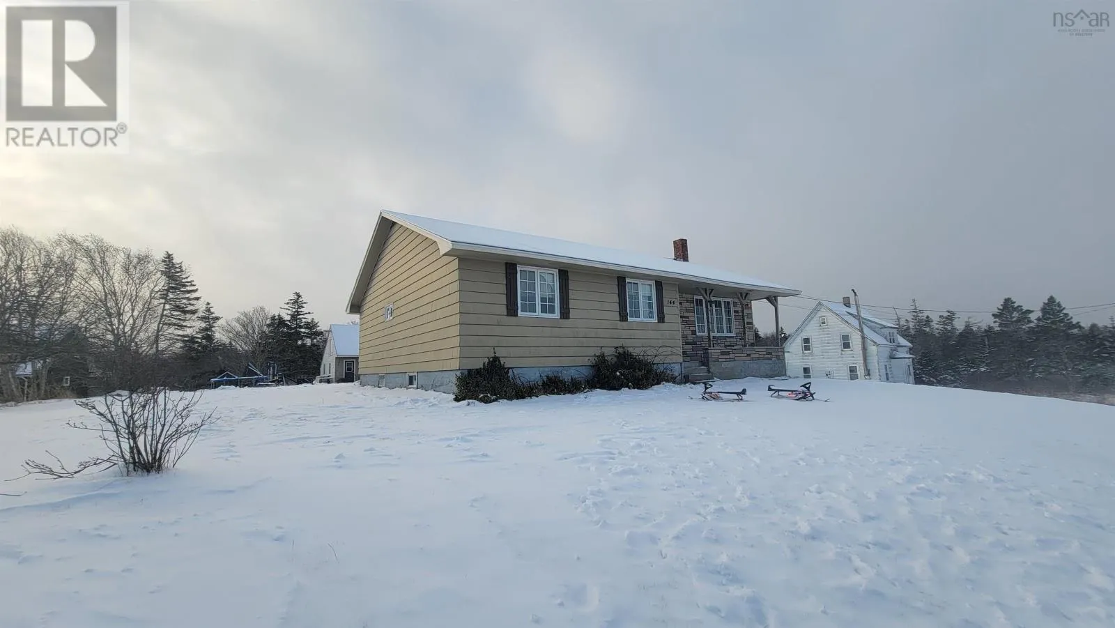 From Yarmouth take Highway 3 towards arcadia, turn right onto highway 334. Stay on Highway 334 for approximately 13km, then turn left onto Chemin De L'est. Driveway on right, shared driveway with Civic#:142, property located on top of the hill behind civic#:142. Welcome to 144 Chemin De L'est, the main level features a spacious kitchen and living room, four bedrooms, and a four-piece bathroom with a jet tub. The basement is partially developed and includes a finished three-piece bathroom, offering flexibility and potential for additional living space depending on your needs. Heating is provided by a heat pump, electric baseboards, and oil-fired hot water system. Recent updates include a new roof installed in 2024. The property is serviced by a drilled well and also features a wired double garage. This bungalow is located in the quiet French community of Wedgeport, approximately 20 minutes from the Town of Yarmouth and its full range of amenities. A solid opportunity in a peaceful coastal community. (id:27476)