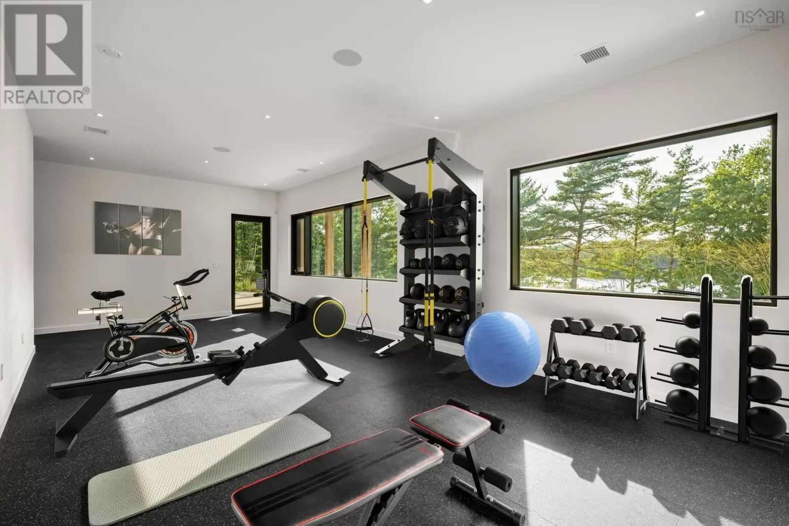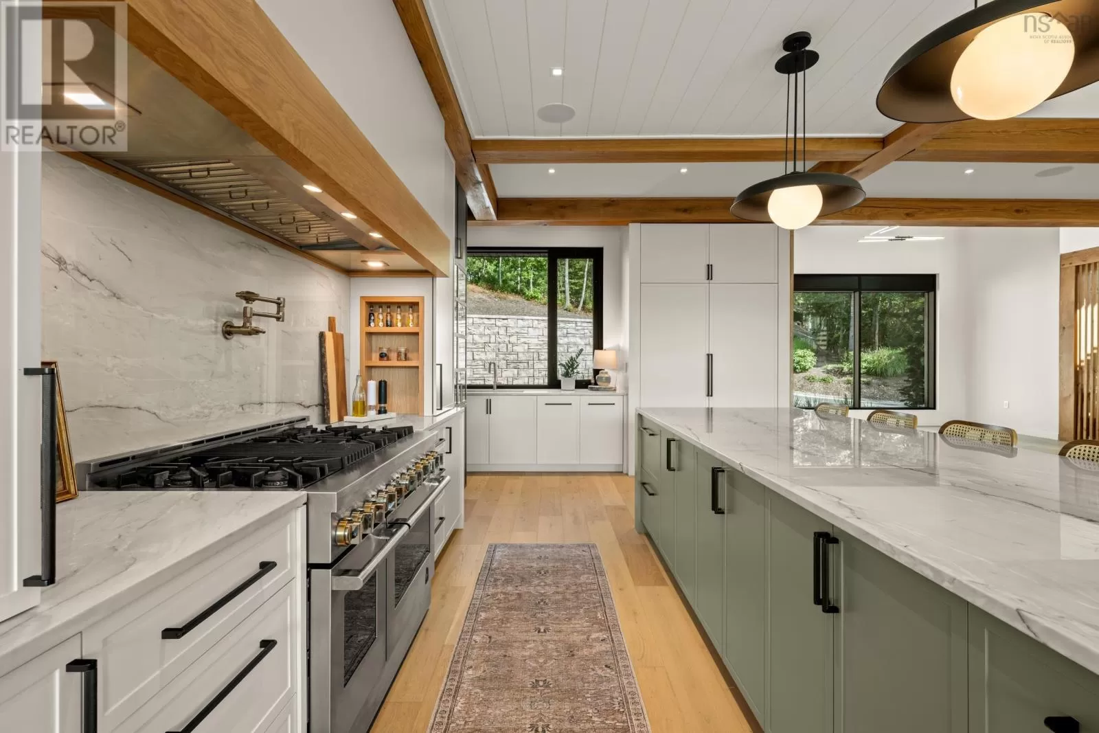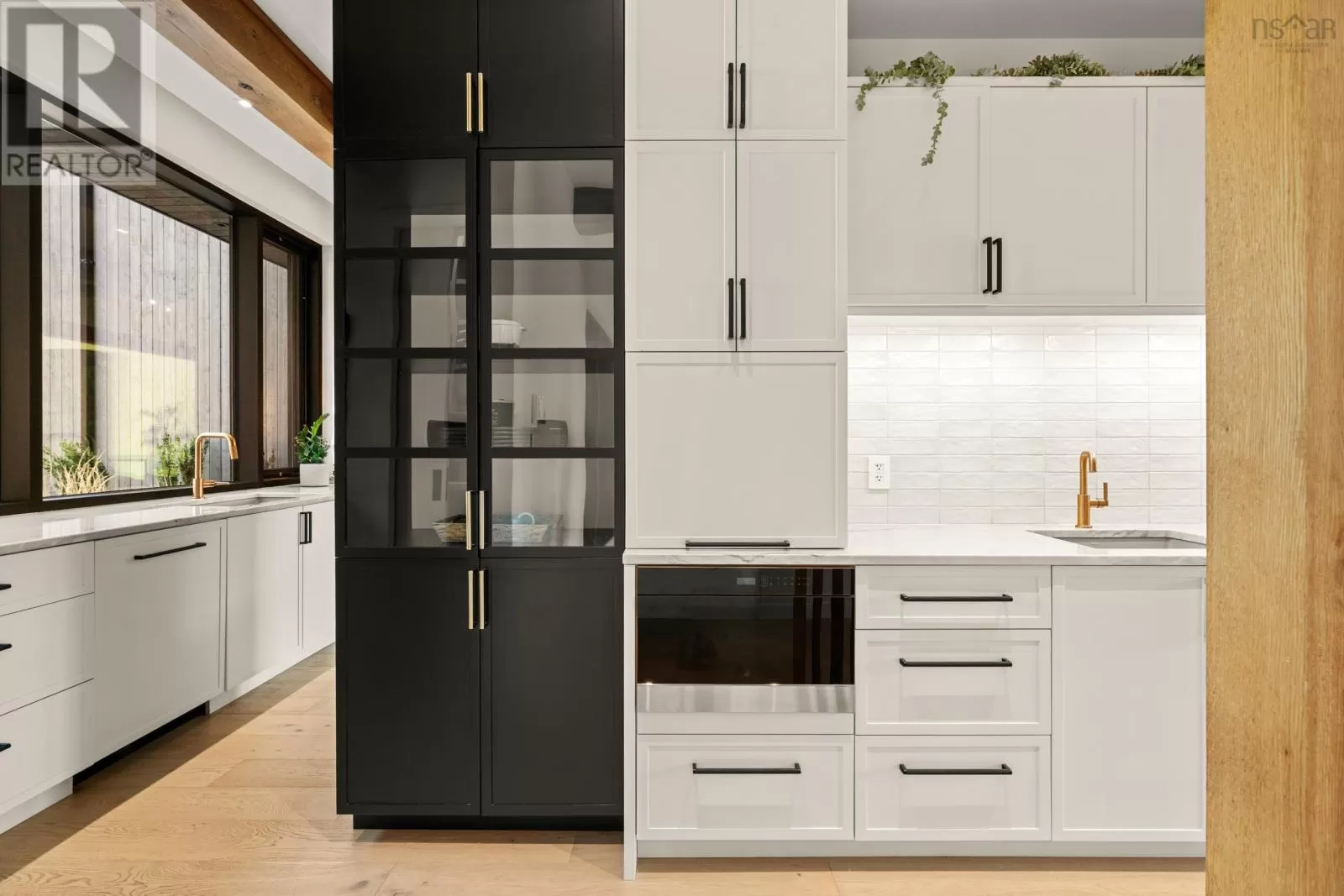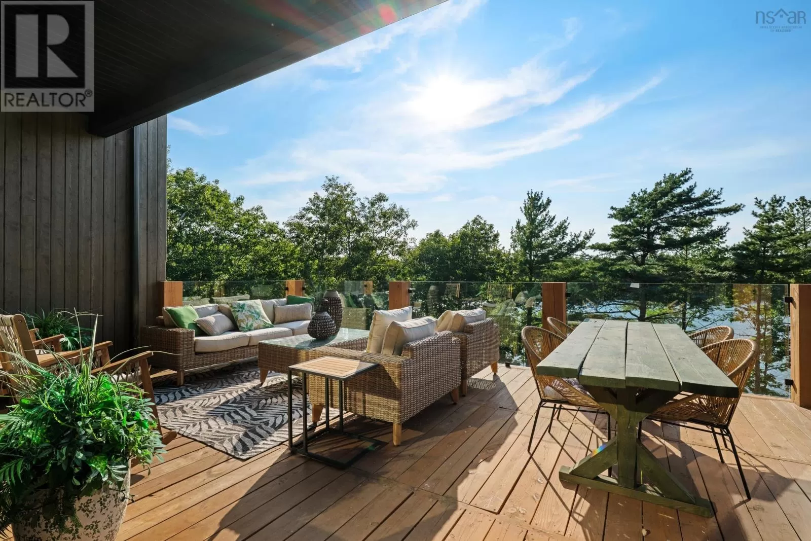 Highway 2, turn left across train tracks and left down Sunnylea Road Terrace House stands as a rare architectural achievement, 10,417 sq.ft. of contemporary design envisioned by David Bourque, crafted to a standard seldom seen in Nova Scotia. Built to commercial grade specifications, this estate marries strength, precision, and artistry, setting a benchmark for luxury living. The construction tells its own story of permanence: ICF walls, an aluminum curtain wall system with Solarban 60 glazing, and a standing seam metal roof create a structure designed to endure. Inside, solid white oak beams soften the modern aesthetic, while radiant in-floor heating, including in the triple garage, ensures year-round comfort. Ten discreet ducted cooling units and a fully engineered mechanical system provide silent efficiency without visual interruption. With 6 bedrooms and 8 baths, the home balances intimacy and scale. The main level primary suite is a private retreat, complete with a lounge, double sided fireplace, walk-out patio, walk-in dressing room with laundry, and a striking ensuite anchored by a sculptural concrete tub. Additional bedrooms feature private ensuites, and the thoughtful flow adapts seamlessly to both family living and entertaining. The culinary space elevates daily rituals, offering a commercial grade gas range, dual panel ready JennAir refrigerators, a statement island, and a secondary prep kitchen. In the loft, you'll find a versatile suite with bunk beds, kitchenette, and bath extends the homes hospitality, while the lower level provides a world of its own with a bedroom, full bath, secret room, wine room, bar, gym, and theatre. Refined finishes, including Emtek hardware, cold rolled steel railings inset with custom glass, Control4 smart automation, and book matched stonework, underscore the homes craftsmanship. Set on 185 feet of frontage along Grand Lake, the property offers a rare combination of natural serenity and modern convenience, with downtown Halifax and the airport within easy reach. (id:27476)