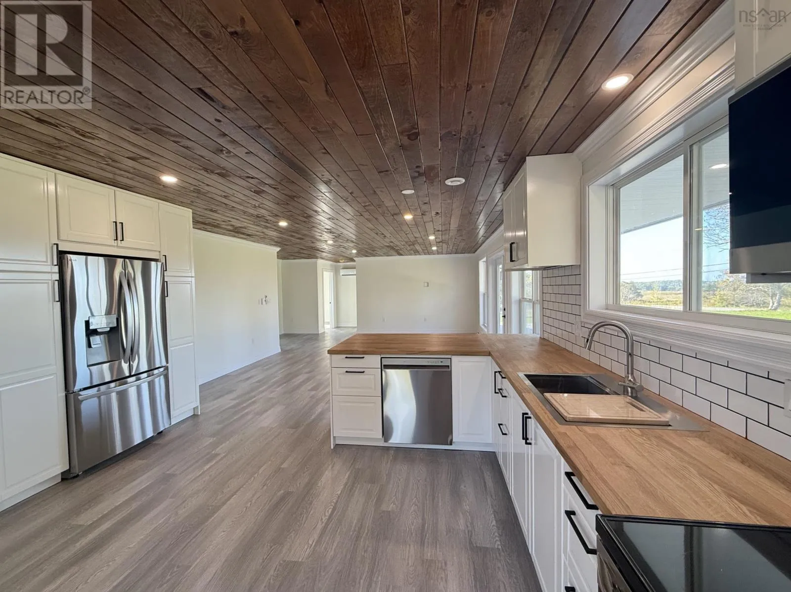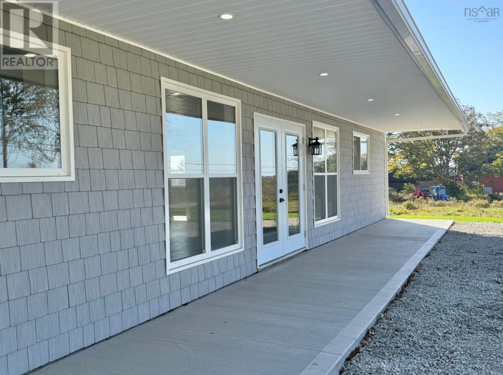 From Yarmouth: Follow Highway 1 to Wellington, property signed on the right just after MacCormack Rd Move-In ready New Construction - Completed in 2025. This brand-new home offers modern comfort and thoughtful design, built with convenience and style in mind. Situated just 10 minutes from Yarmouth in the sought-after Meadowfields school district, this 3-bedroom, 2-bath property is perfect for families, retirees, or anyone looking for easy one-level living. Step inside to an inviting open-concept layout, highlighted by warm wood ceilings that create a cozy, welcoming feel. The bright and functional kitchen comes complete with all new appliances, seamlessly flowing into the dining and living spaces-ideal for entertaining or everyday living. The primary bedroom features a private ensuite bath as well as concrete patio, making an ideal location for a hot tub! The two additional bedrooms and a second full bath provides ample space for family, guests or a home office. With slab-on-grade construction, electric baseboard heating, and heat pumps for efficient year-round comfort, this home will prove to be the right choice for years to come. Enjoy the covered front patio, perfect for relaxing outdoors, while knowing your home is virtually maintenance-free. Thoughtfully built with accessibility in mind, this home is especially suitable for those with mobility concerns. (id:27476)