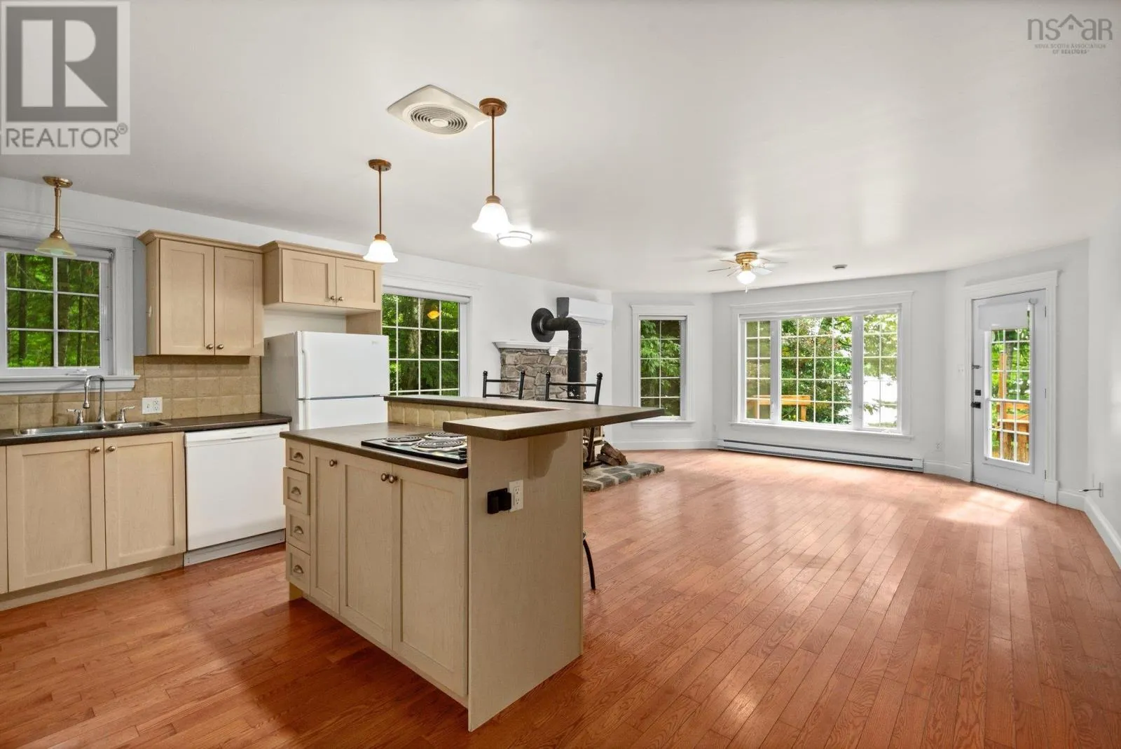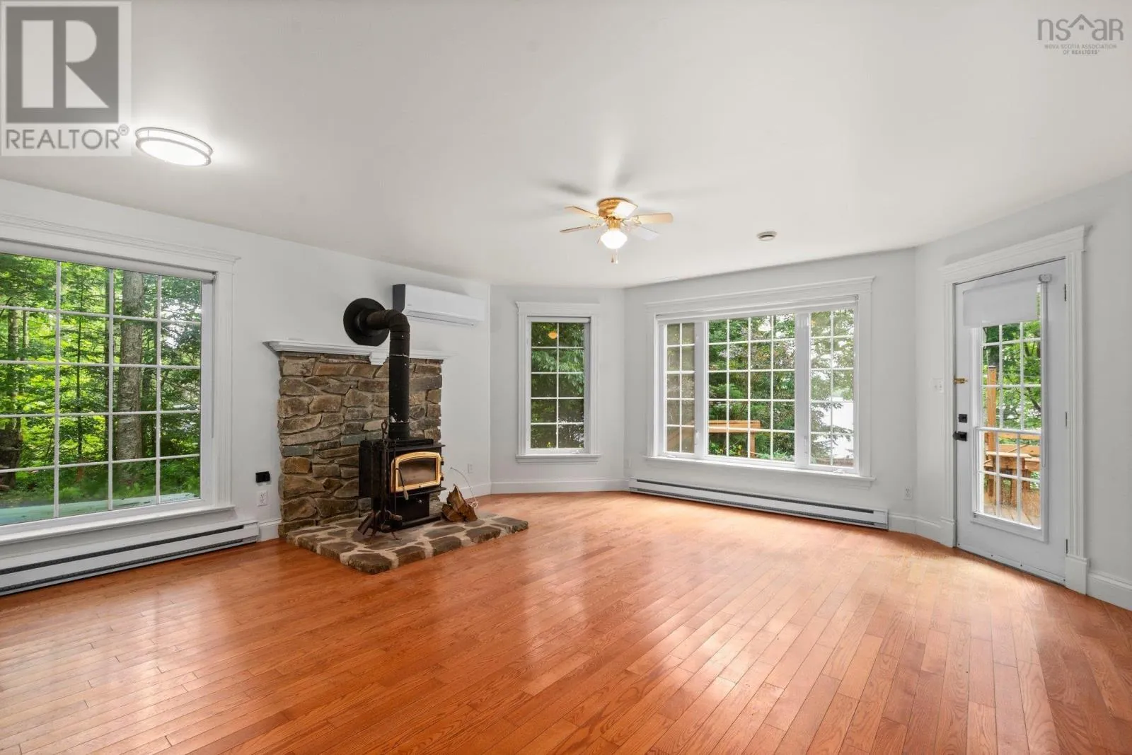 1st Roundabout exit onto NS Trunk 2 onto Fall River/Oakfield/Wellington, onto sunnylea road, onto Kings Rd. This is a rare Grand Lake property that offers the perfect blend of natural beauty, comfort, and versatility with a chalet-style family home that is also a legal duplex set on nearly 50,000 sq ft of gently sloping land and 152 feet of lake frontage. Designed for both peaceful living and smart investment, the home features two fully self-contained unitseach with stunning lake viewsseparated by a professionally built rock and mortar retaining wall corridor. The original larger two-story unit includes 3 bedrooms 2 full bathrooms and the master suite has a private balcony and ensuite. The main floor has the kitchen, dining, living room as well as a den that would be a great exercise or office space as it has a full bathroom as well. From the main home you walk outside to a sunroom with new flooring. The newer unit with chalet architecture features an open concept main floor with the living room and kitchen, it has hardwood floors, heatpump and power meter. The upstairs has 2 bedrooms and a full bathroom. Current owner has been renting out both homes, although an ideal lakefront investment, it also serves as a wonderful family home and inlaw suite combo. A concrete boat launch, lakefront patio, and 48-foot aluminum dock with waterproof composite decking make enjoying the water effortless, and the detached two-story, double-bay garage with a finished, heated lower level is perfect for car enthusiasts or hobbyists. With the new Exit 5A extension making the airport just 7 minutes away and Halifax/Dartmouth only 15 minutes, this is a rare opportunity to enjoy lakefront serenity without sacrificing convenience. (id:27476)