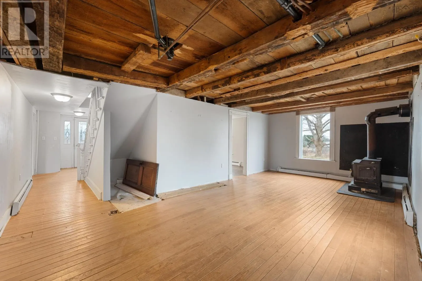 From Yarmouth, head East on Highway 1 to Civic # 1245, signed on left. Step into the character and potential of this spacious century home, offering 56 bedrooms and 2 full bathrooms on just over an acre of land. Some updates have already been completed, while additional renovations will allow a new owner to truly make this property their own. Conveniently located only 10 minutes from the Town of Yarmouth, this home features a versatile layout with two staircases, a large kitchen, a formal dining room, and a main-floor bedroommaking one-level living an option. The main level also offers two living rooms, one of which could easily serve as a family room or an additional bedroom. Upstairs, youll find four more bedrooms along with the second full bathroom. Heating options are plentiful with efficient heat pumps, a wood stove, and an oil furnace. Outside, the property includes a large barn and shed, offering potential for reclamation of barn wood, restoration or storage. Rich in original character, much of the homes historic charm remains intact, including hand-hewn beams, hardwood and softwood flooring, and classic woodwork throughout. This handyman special is an excellent opportunity for those looking to restore and reimagine a timeless home in a convenient rural setting. (id:27476)