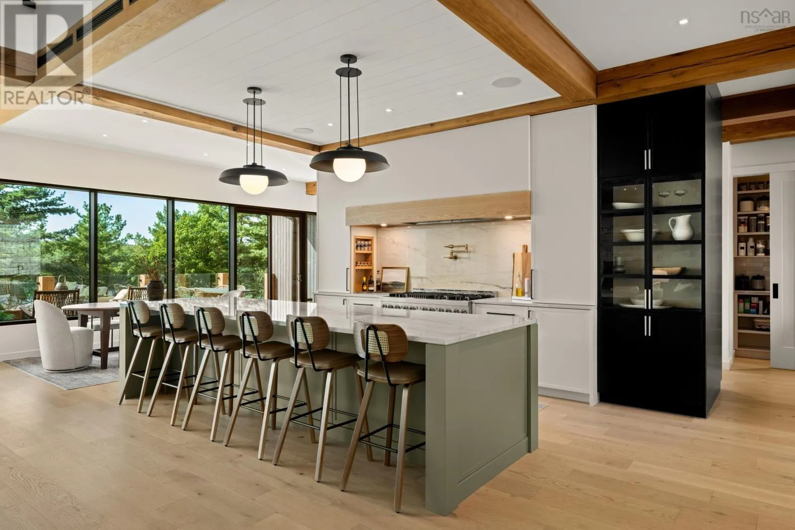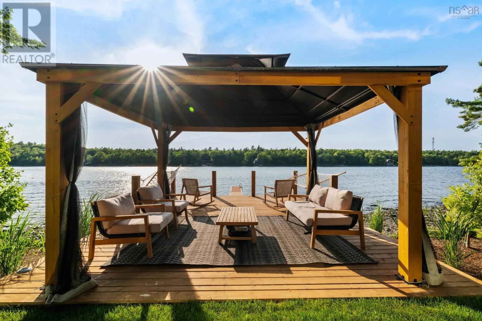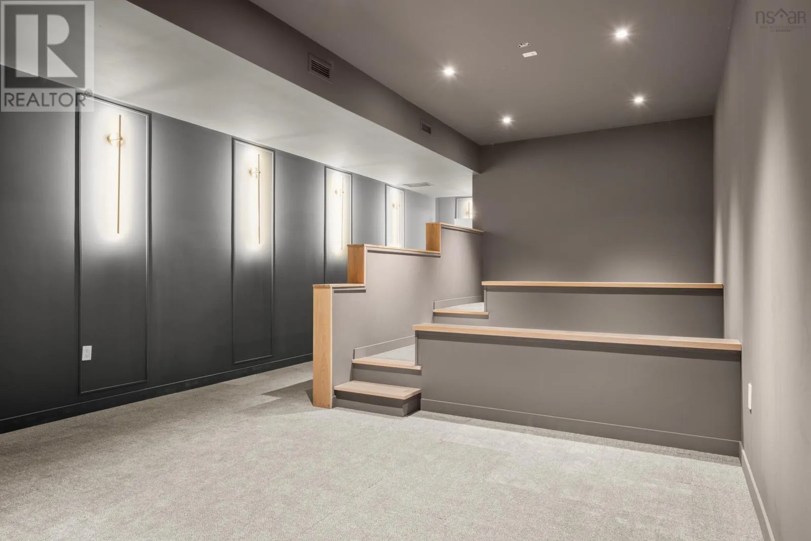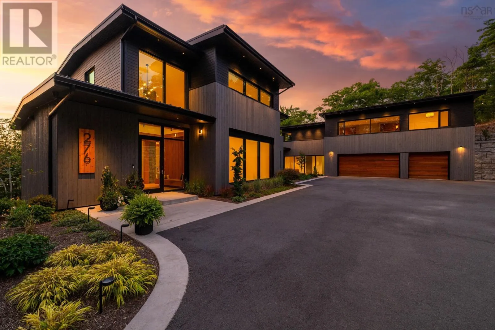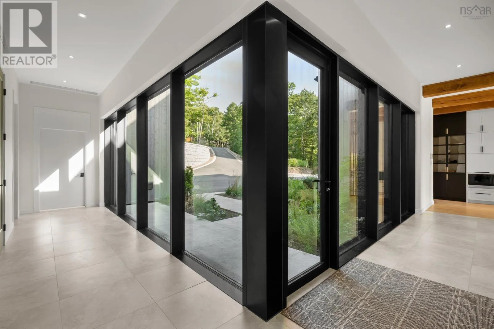 Highway 2, turn left across train tracks and left down Sunnylea Road Terrace House stands as a rare architectural achievement, 10,417 sq.ft. of contemporary design envisioned by David Bourque, crafted to a standard seldom seen in Nova Scotia. Built to commercial grade specifications, this estate marries strength, precision, and artistry, setting a benchmark for luxury living. The construction tells its own story of permanence: ICF walls, an aluminum curtain wall system with Solarban 60 glazing, and a standing seam metal roof create a structure designed to endure. Inside, solid white oak beams soften the modern aesthetic, while radiant in-floor heating, including in the triple garage, ensures year-round comfort. Ten discreet ducted cooling units and a fully engineered mechanical system provide silent efficiency without visual interruption. With 6 bedrooms and 8 baths, the home balances intimacy and scale. The main level primary suite is a private retreat, complete with a lounge, double sided fireplace, walk-out patio, walk-in dressing room with laundry, and a striking ensuite anchored by a sculptural concrete tub. Additional bedrooms feature private ensuites, and the thoughtful flow adapts seamlessly to both family living and entertaining. The culinary space elevates daily rituals, offering a commercial grade gas range, dual panel ready JennAir refrigerators, a statement island, and a secondary prep kitchen. In the loft, you'll find a versatile suite with bunk beds, kitchenette, and bath extends the homes hospitality, while the lower level provides a world of its own with a bedroom, full bath, secret room, wine room, bar, gym, and theatre. Refined finishes, including Emtek hardware, cold rolled steel railings inset with custom glass, Control4 smart automation, and book matched stonework, underscore the homes craftsmanship. Set on 185 feet of frontage along Grand Lake, the property offers a rare combination of natural serenity and modern convenience, with downtown Halifax and the airport within easy reach. (id:27476)