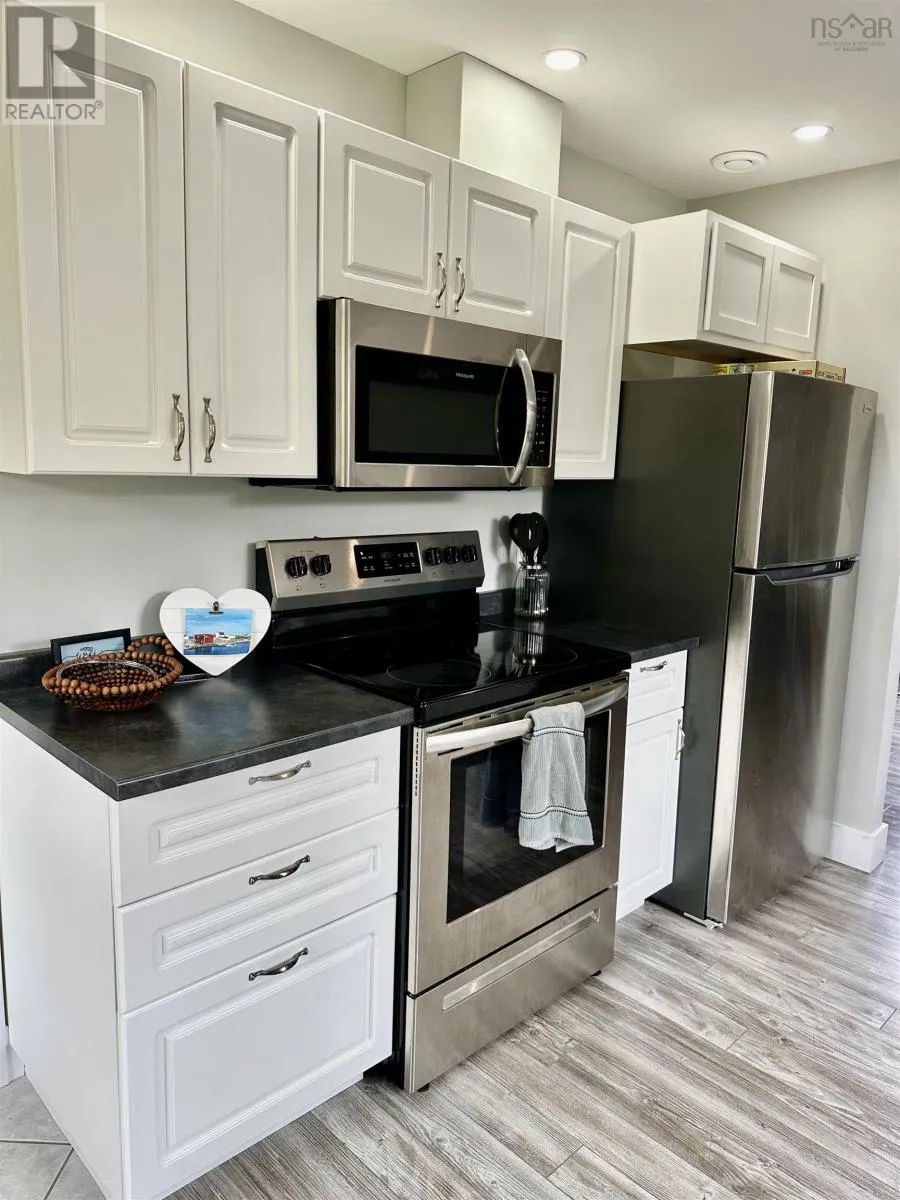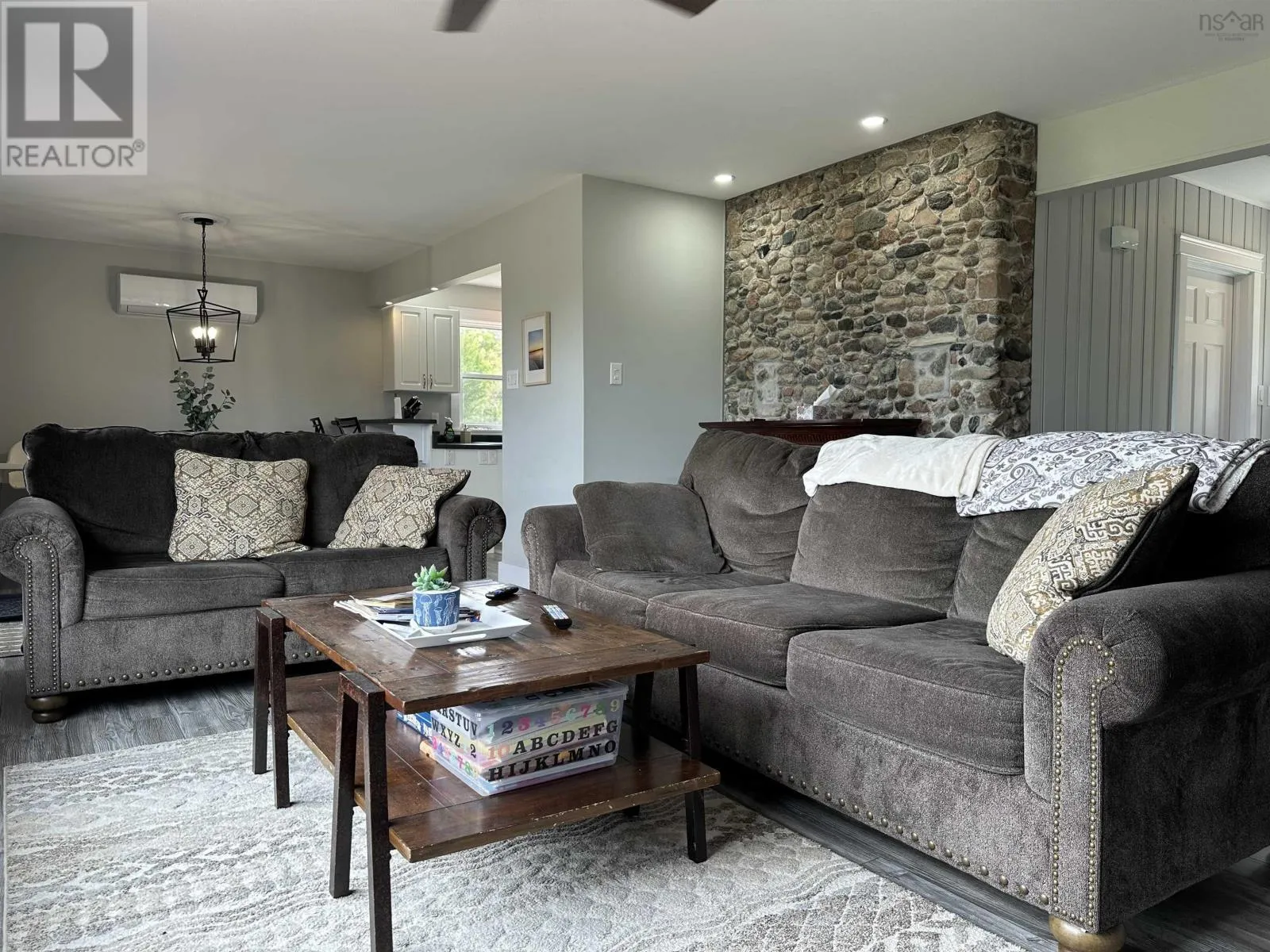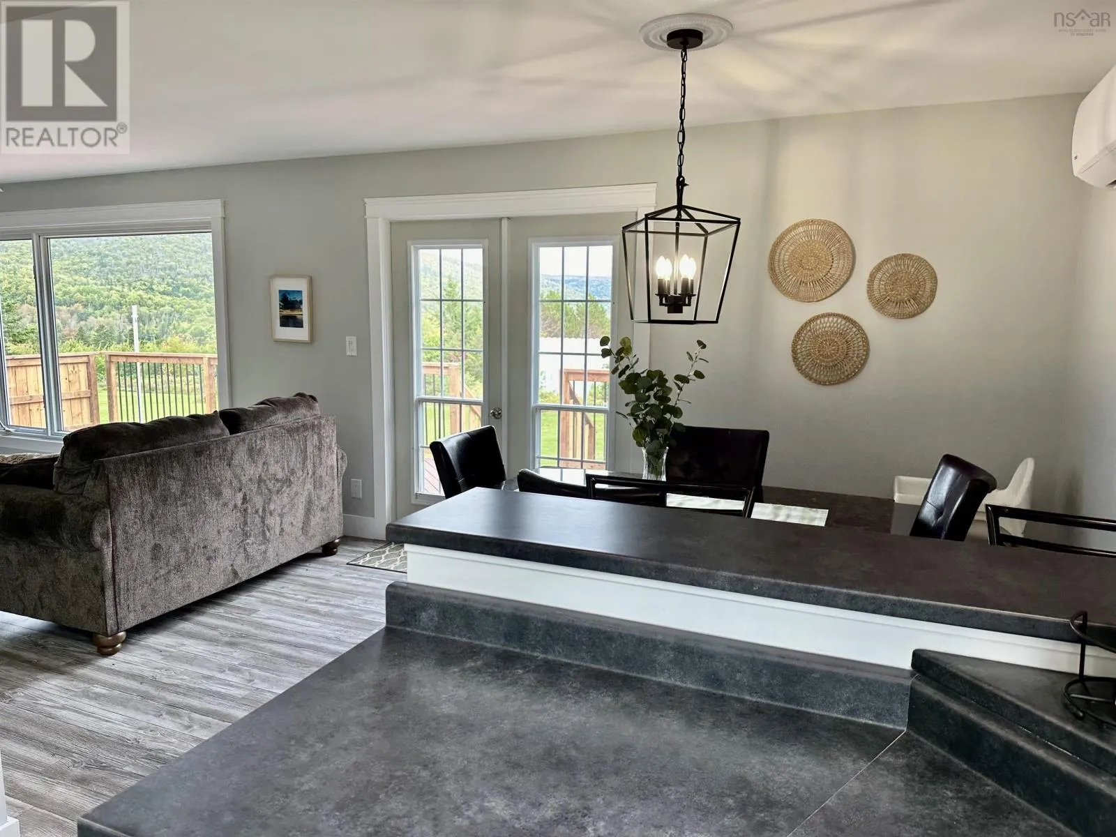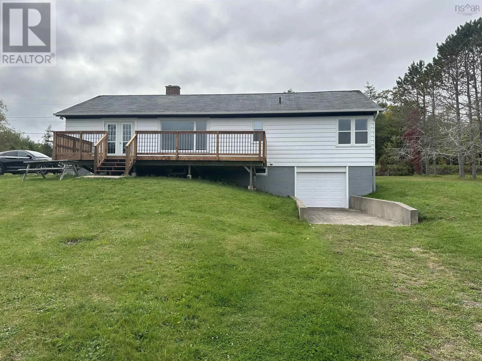 West Bay Marshes This well built 3 BDRM, 2 BATH bungalow is located in West Bay Marshes, and situated on a 1 acre lot with deeded access to the Bras d'Or Lakes. Just a 25 minute drive to the town of Port Hawkesbury. The house has a 27x21 built in garage and large 51x27 steel dome outbuilding, ideal for storing your boat. Most of the main floor has been taken to the studs in 2022 and refinished with new kitchen with breakfast nook, stainless appliances, dining room, living room, hall, laundry room and bathroom. Freshly painted and beautiful pot lighting. Newly installed ductless heat pump in 2022. The basement has a full bath, rec area, and den/office. Many updates include windows, cement paver double driveway, and more! A few minutes walk from the house is deeded access to one of the finest sheltered coves on the Bras d'Or Lakes-ideal for boat launching. The finest sailing, boating, and fishing is only a few minutes away. Enjoy the view of North Mountain from your 30x10 large back deck. This property is well maintained and offers a variety of fruit trees. (id:27476)