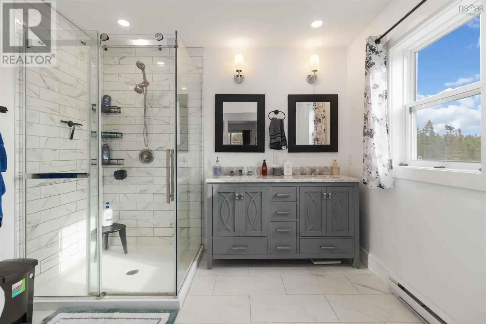 Take Lighthouse Rte/Prospect Rd/NS-333 W to Middle Village Rd in West Dover. House is on the left. Nestled in the picturesque seaside community of West Dover, this exceptional five-bedroom, four-bath home sits on 2.24 acres of natural Nova Scotia beauty, blending contemporary design with functional luxury just 30 minutes from Halifax and minutes from iconic Peggys Cove. Built just over a year ago, the property now features a newly added 24' x 24' detached wired garage by the current owner, offering 10-foot ceilings and a convenient garage door openerideal for vehicles, tools, or outdoor equipment. Inside, the open-concept main floor showcases a gourmet kitchen with solid-surface countertops, premium appliances, and a large island that flows seamlessly into the bright dining and living areas. A cozy sunroom provides the perfect spot to enjoy morning coffee or sunset views, while upstairs, the private primary suite includes a walk-through closet and a spa-inspired ensuite with a glass shower. Two additional bedrooms and a full bath complete the upper level, and the fully finished lower level offers a spacious recreation room, two bedrooms, a full bath, and a utility areaperfect for guests, hobbies, or extended family. Two efficient ductless heat pumps ensure year-round comfort within the home. Surrounded by rugged coastal scenery, granite hills, and ocean inlets, the property offers direct access to nature with endless opportunities for hiking, kayaking, birdwatching, and exploration, all within reach of local amenities in nearby Tantallon. Offering modern comfort, privacy, and the timeless charm of coastal living, 136 Middle Village Road captures the very best of Nova Scotias natural beauty and contemporary craftsmanship. (id:27476)