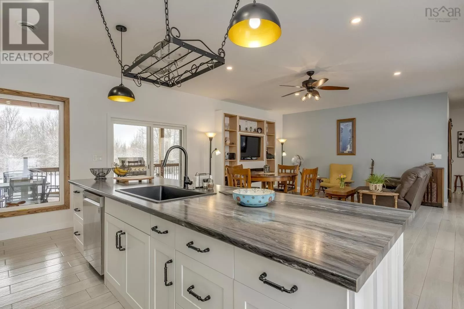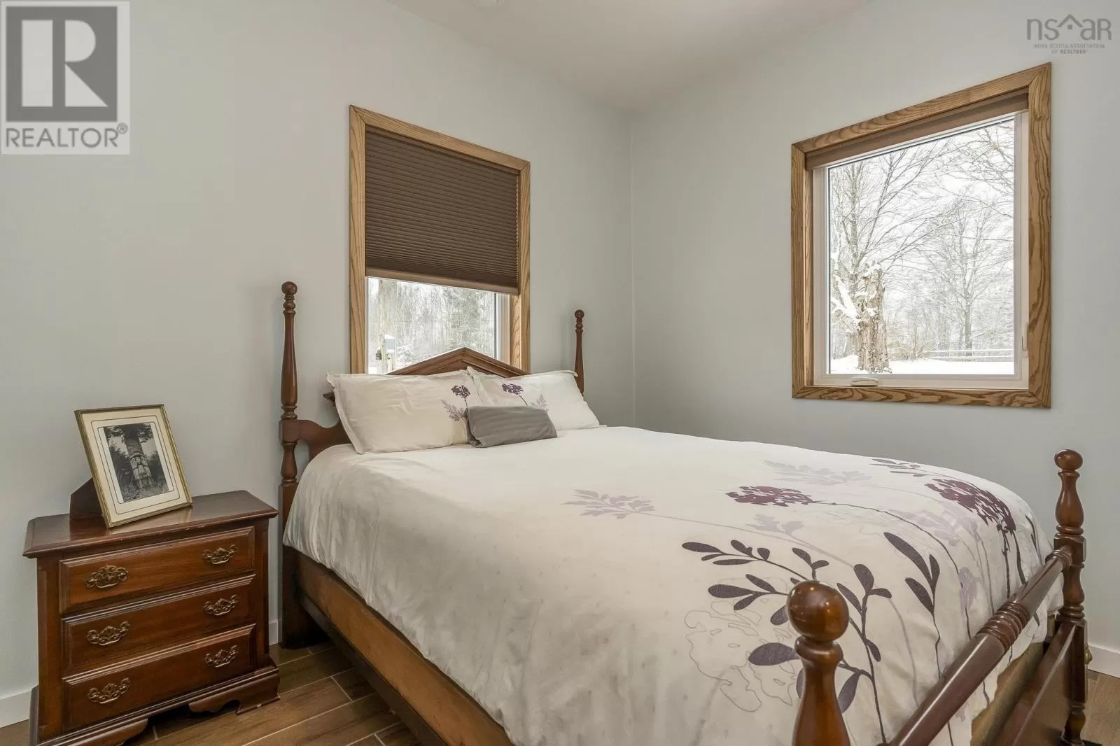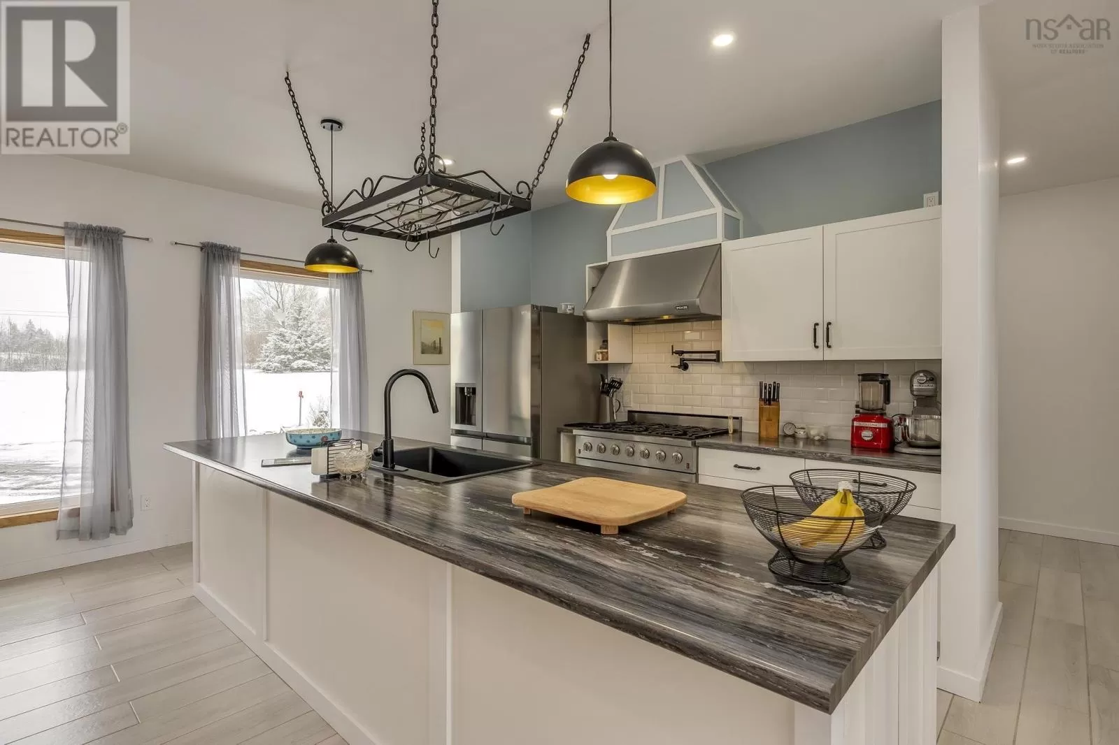 From Nictaux, travel West on Hwy #201. Turn left onto Inglisville Rd. Property is on the left hand side, watch for civic/sign. Once in a blue moon, a special one-of-a-kind property becomes available. Offering maximum privacy, a spacious interior with high end finishes, and 15 acres of freedom! Located in a peaceful rural setting, yet only minutes to amenities and with great services such as wired fiber-op high speed internet, garbage pickup, and on a school bus route. Only three years old, this property shows like new! Featuring an attached 24x34 shop/garage that is wired and heated, this space will be well enjoyed by the family hobbyist or has potential for a home-based business with flexible mixed-use zoning. The interior is flooded with natural light form the thermo-dynamic windows and multiple patio doors. 9 ceilings and an open concept design pairs will with efficient in-floor heating and quality tile flooring throughout. Enter into the front foyer, or the XL mudroom offering laundry connections, walk in closets, and a built-in home office/crafting station. The primary suite is truly stunning! Featuring a luxe ensuite with a huge marble walk in shower, dual vanity, relaxing soaker tub, and separate water closet. Two secondary bedrooms are on the opposite side of the house for added privacy and share the 3pc bath with another beautiful walk-in tile shower. Chefs kiss in the dream kitchen complete with a 6-burner propane range, walk in pantry, and 12 island! Spend your spare time relaxing on the expansive 56 covered veranda with custom wood ceiling, or cozy up by the living room fireplace and watch your favorite show. The 15 acres would be well suited for hobby farming with raised veggie planters and your own sugar shack/ smoke house! This is the complete package that will please even the most particular buyers, so dont miss your chance! There is a package version of this listing that includes an additional 29 acre lot with a wired heritage barn and detached garage. Please reference MLS® 202519099 for more details. (id:27476)