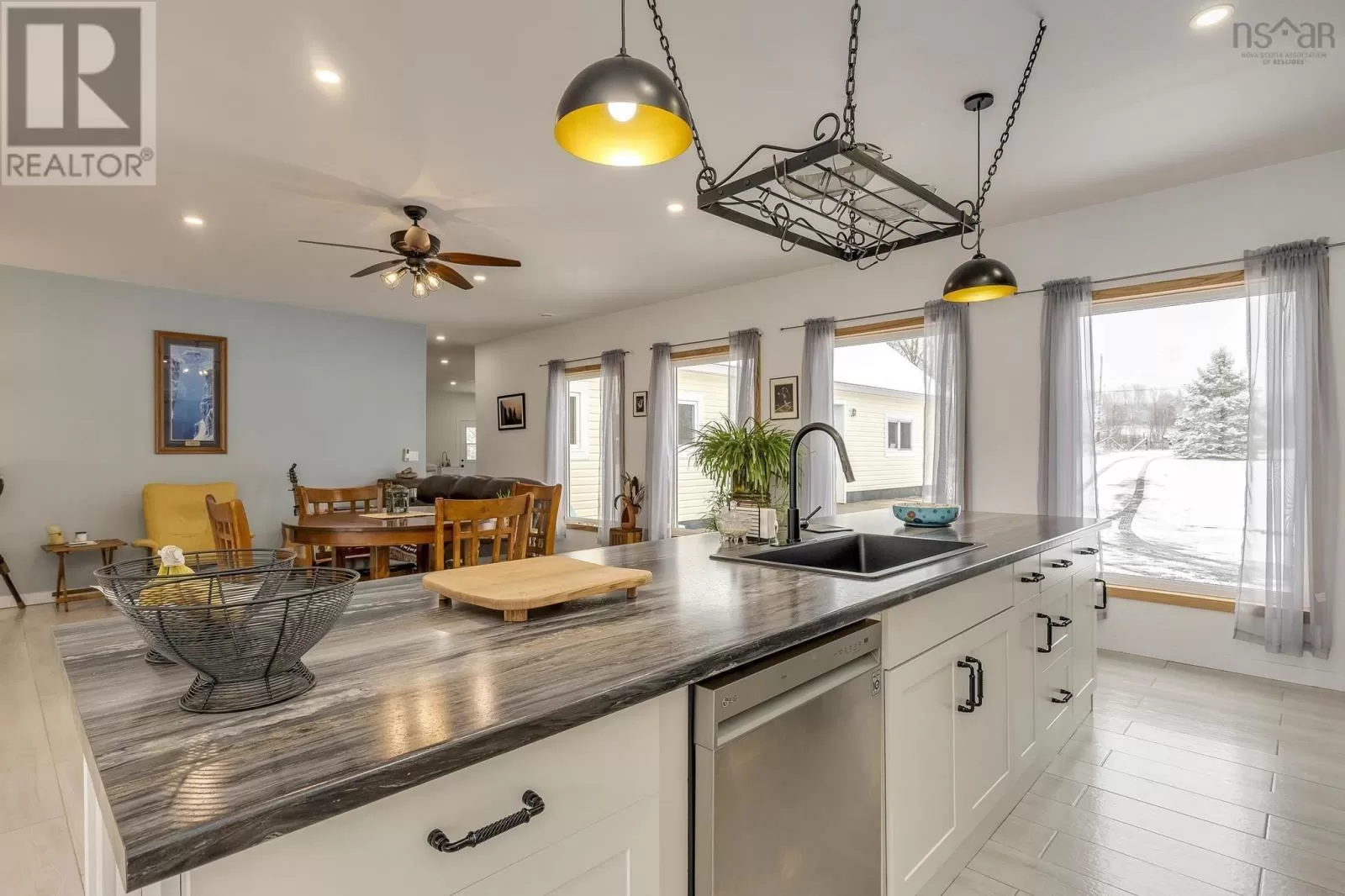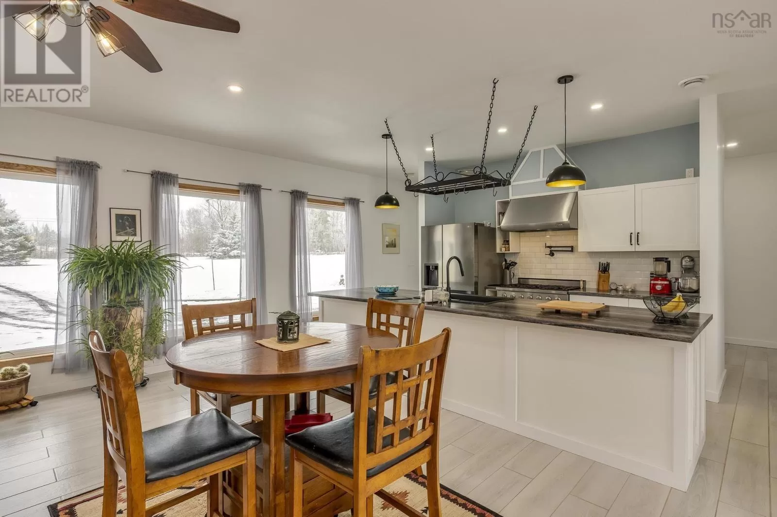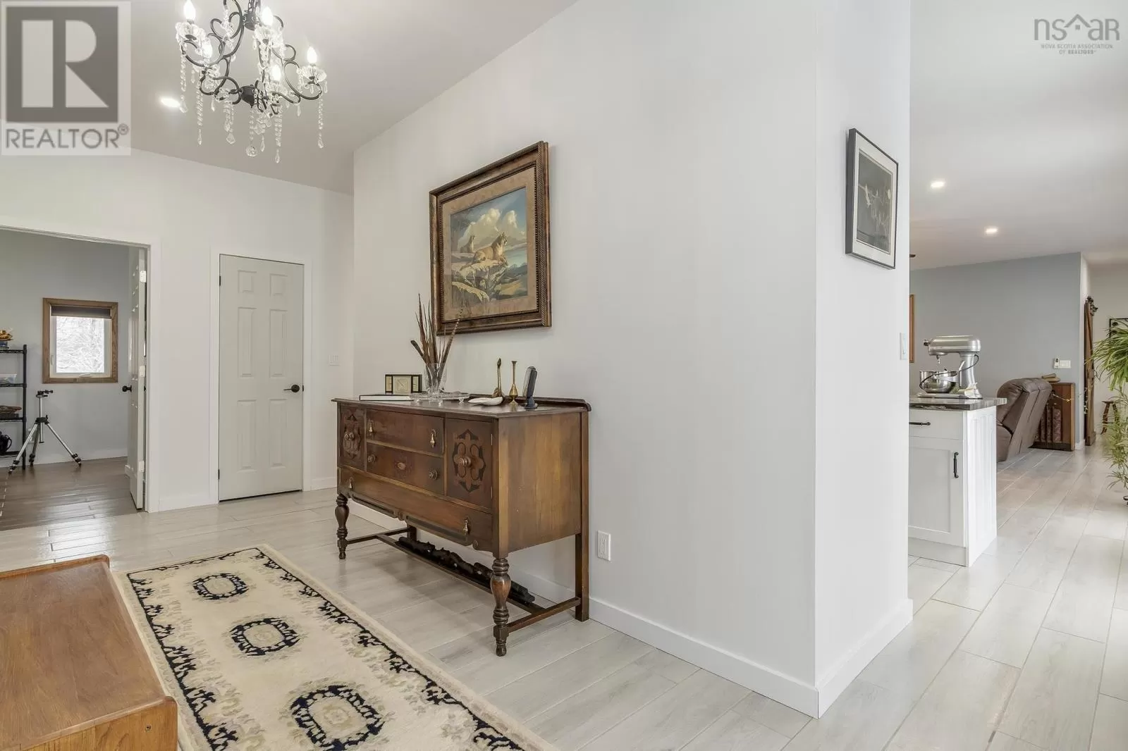 From Nictaux, travel West on Hwy #201. Turn left onto Inglisville Rd. Property is on the left hand side, watch for civic/sign. Once in a blue moon, a special one-of-a-kind property becomes available. Offering maximum privacy, a spacious interior with high end finishes, and 15 acres of freedom! Located in a peaceful rural setting, yet only minutes to amenities and with great services such as wired fiber-op high speed internet, garbage pickup, and on a school bus route. Only three years old, this property shows like new! Featuring an attached 24x34 shop/garage that is wired and heated, this space will be well enjoyed by the family hobbyist or has potential for a home-based business with flexible mixed-use zoning. The interior is flooded with natural light form the thermo-dynamic windows and multiple patio doors. 9 ceilings and an open concept design pairs will with efficient in-floor heating and quality tile flooring throughout. Enter into the front foyer, or the XL mudroom offering laundry connections, walk in closets, and a built-in home office/crafting station. The primary suite is truly stunning! Featuring a luxe ensuite with a huge marble walk in shower, dual vanity, relaxing soaker tub, and separate water closet. Two secondary bedrooms are on the opposite side of the house for added privacy and share the 3pc bath with another beautiful walk-in tile shower. Chefs kiss in the dream kitchen complete with a 6-burner propane range, walk in pantry, and 12 island! Spend your spare time relaxing on the expansive 56 covered veranda with custom wood ceiling, or cozy up by the living room fireplace and watch your favorite show. The 15 acres would be well suited for hobby farming with raised veggie planters and your own sugar shack/ smoke house! This is the complete package that will please even the most particular buyers, so dont miss your chance! There is a package version of this listing that includes an additional 29 acre lot with a wired heritage barn and detached garage. Please reference MLS® 202519099 for more details. (id:27476)