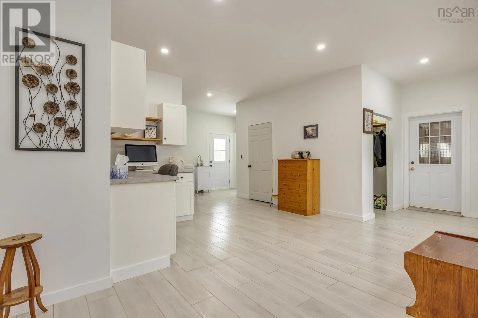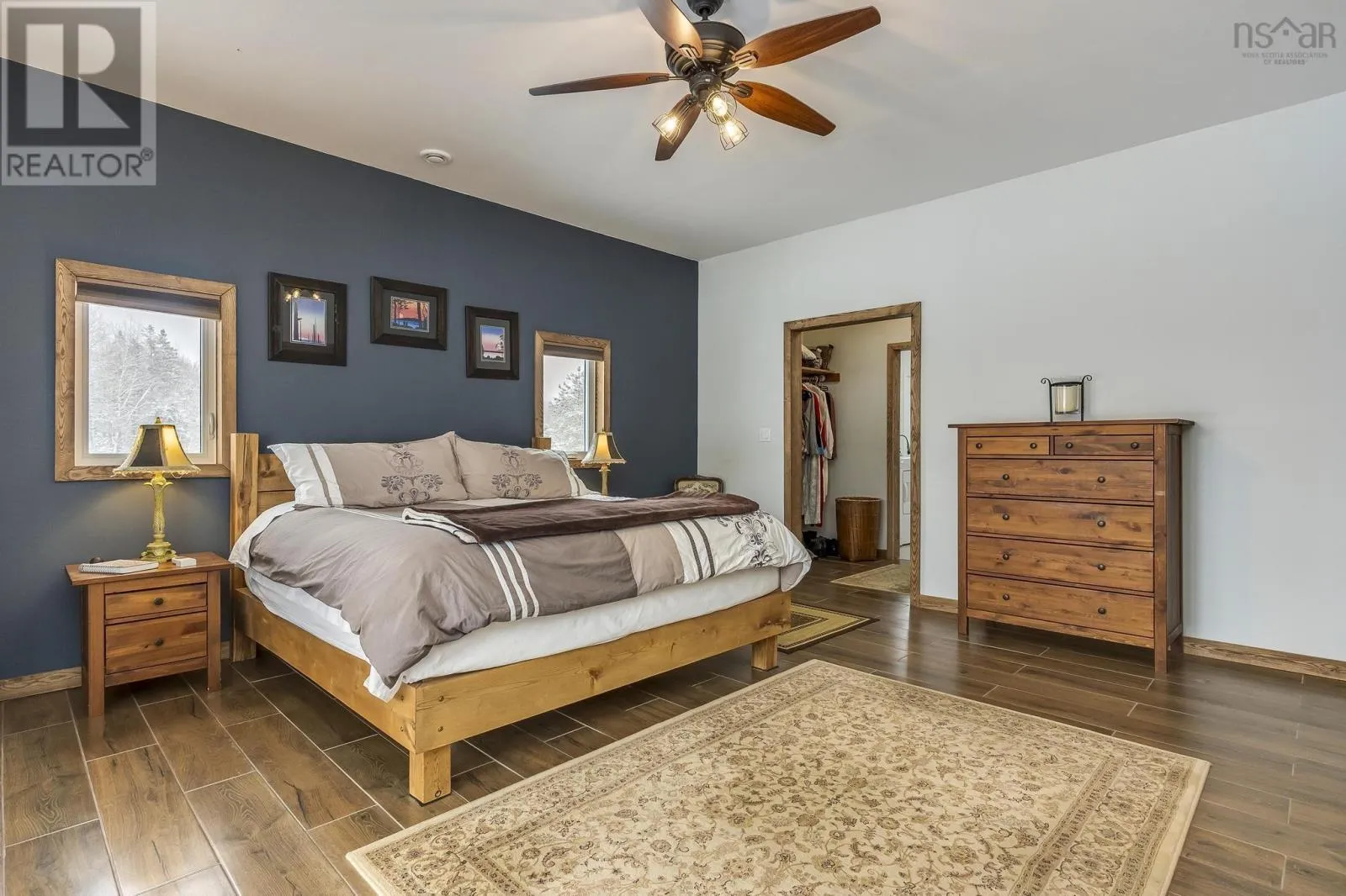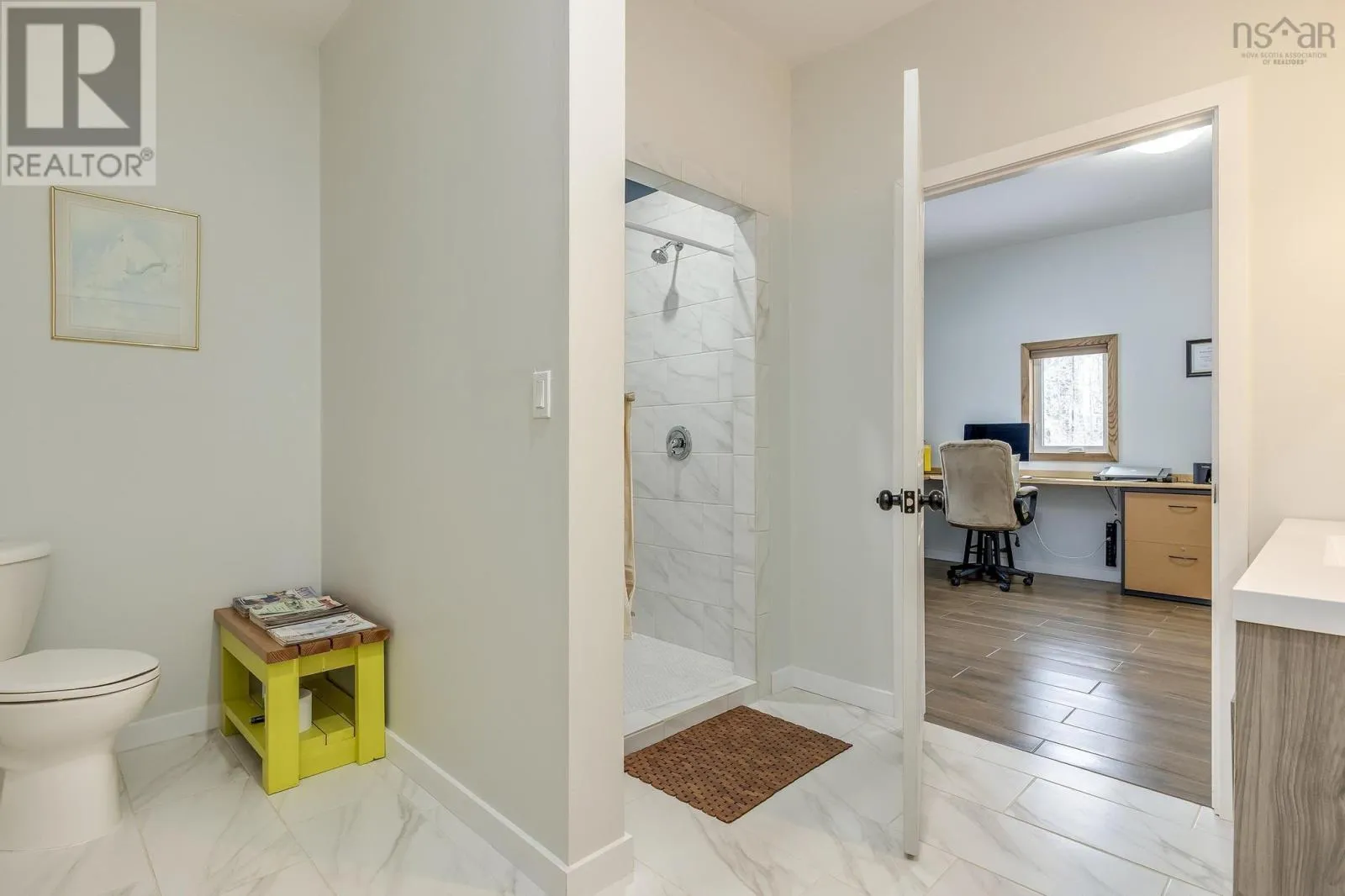 From Nictaux, travel West on HWY#201. Turn left onto Inglisville Rd. Property is on the left hand side, watch for civic/sign. *land is Once in a blue moon, a special one-of-a-kind property becomes available. Offering maximum privacy, a spacious interior with high end finishes, and 41 acres of freedom! Located in a peaceful rural setting, yet only minutes to amenities and with great services such as wired fiber-op high speed internet, garbage pickup, and on a school bus route. Only three years old, this property shows like new! The interior is flooded with natural light form the thermo-dynamic windows and multiple patio doors. 9 ceilings and an open concept design pairs will with efficient in-floor heating and quality tile flooring throughout. Enter into the front foyer, or the XL mudroom offering laundry connections, walk in closets, and a built-in home office/crafting station. The primary suite is truly stunning! Featuring a luxe ensuite with a huge marble walk in shower, dual vanity, relaxing soaker tub, and separate water closet. Two secondary bedrooms are on the opposite side of the house for added privacy and share the 3pc bath with another beautiful walk-in tile shower. Chefs kiss in the dream kitchen complete with a 6-burner propane range, walk in pantry, and 12 island! Spend your spare time relaxing on the expansive 56 covered veranda with custom wood ceiling, or cozy up by the living room fireplace and watch your favorite show. Featuring an attached 24x34 shop/garage that is wired and heated, this space will be well enjoyed by the family hobbyist or has potential for a home-based business with flexible mixed-use zoning. There is also a beautiful heritage barn on site! Measuring 35x40 with a large entry door, newly installed power meter, and full hay loft above making this a very usable and versatile space. The 14x25 back add on is home to the chicken coop and tack room, and there is a separate detached garage as well. This is the complete package, ready to live the dream! (id:27476)