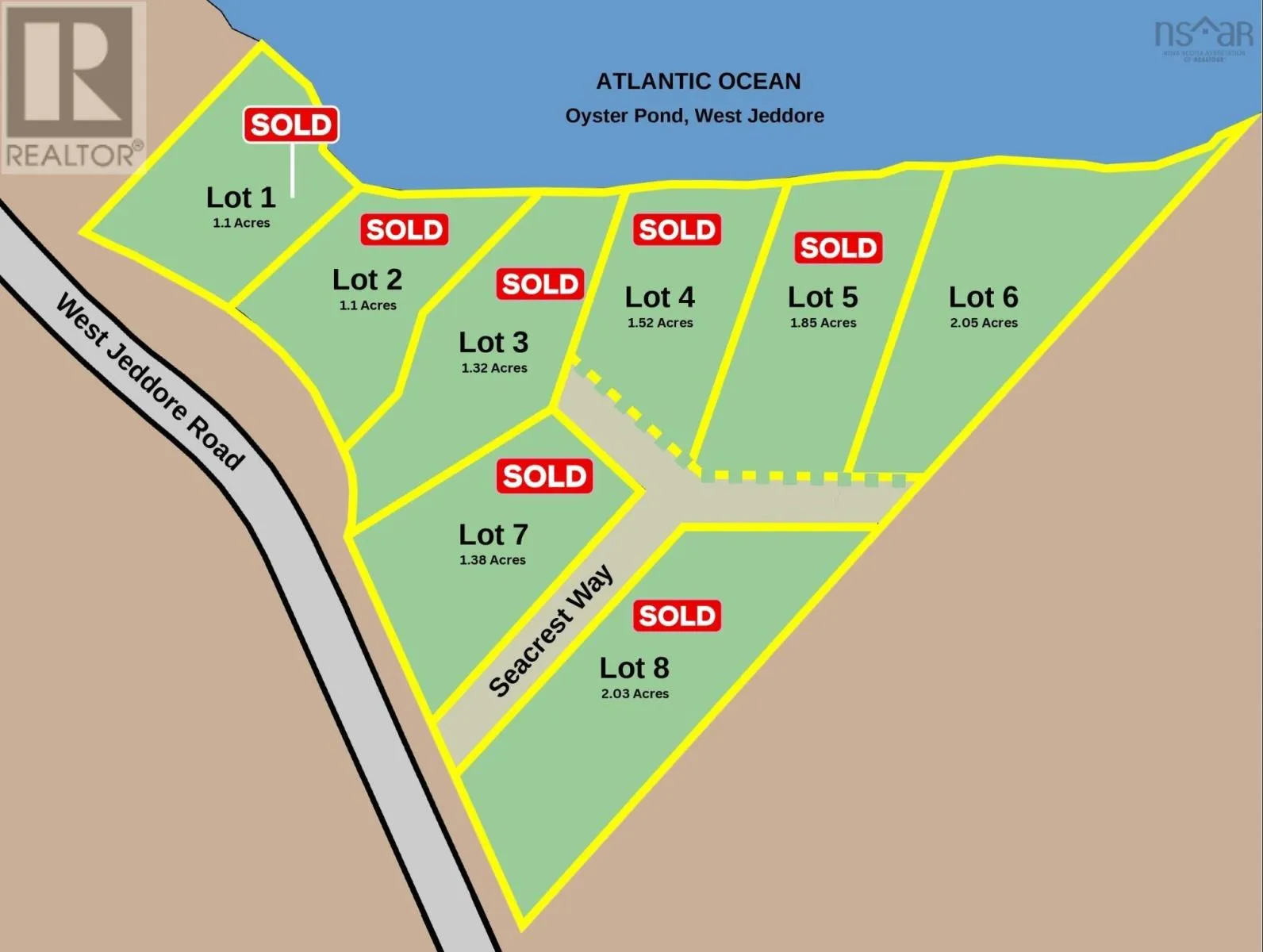 West Jeddore to Seacrest way, lot 6 driveway is the one on the right. Lot 6 Seacrest Way offers an ideal building opportunity for anyone looking for ocean views, privacy, and beautiful, tranquil waterfront. Panoramic views from the perched up building area make this lot truly special. The driveway off the shared private road Seacrest way is in place, making it easy to picture where your dream home could go. Looking east, you'll be able to enjoy sunrises and gorgeous views of the Jeddore inlet year round. The waterfront on Oyster Pond (a tidal ocean cove), is very user friendly and perfect for a dock, swimming, kayaking, and other ocean activities. The depth of water in this cove is mostly in the 8-12'+ range and is plenty deep for use at all tides. At 1.9 acres, this is a great lot to host your dream home and oceanfront lifestyle. (id:27476)