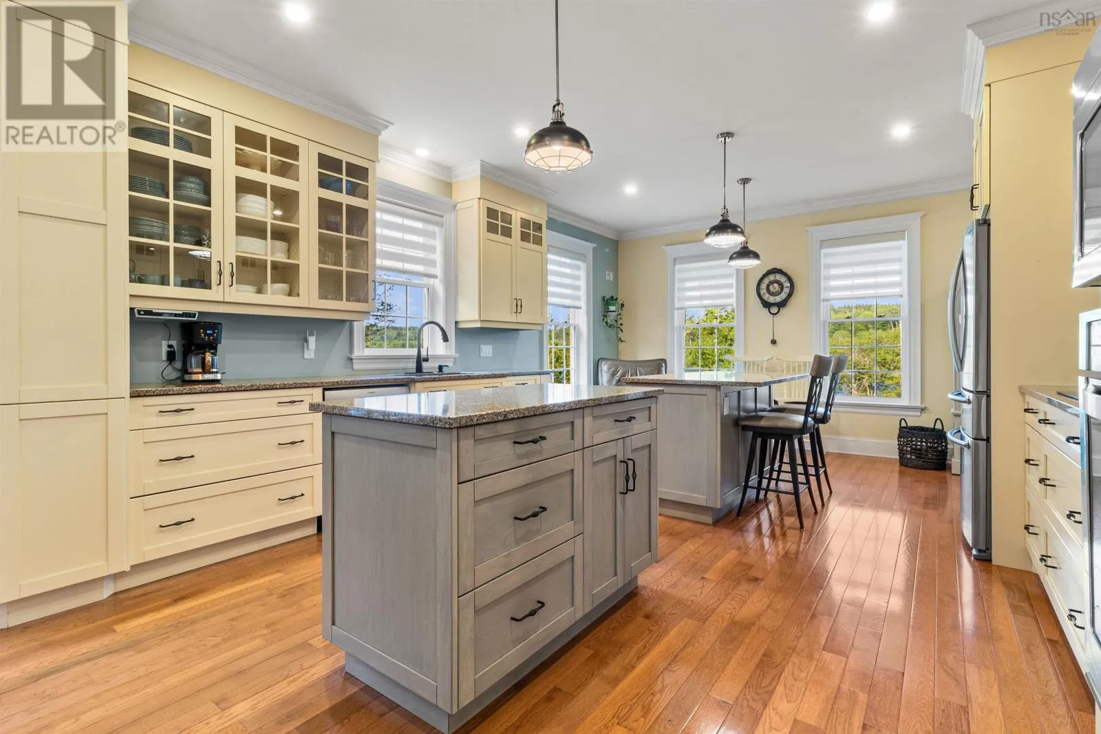 Take Exit 30 in Antigonish and follow Highway 7to Lake Lochaber, turn right on West Side Road. Welcome home to 1731 West Side Lochaber. This stunning six-year-old cape cod offers 3,789 square feet of luxurious living space along approximately 372 feet of pristine lakefront. Wake each morning to golden sunrises painting Lochaber Lake in brilliant hues while your coffee brews in a custom country kitchen designed for both quiet family moments and lively gatherings with friends. The kitchen truly tells your story - featuring double islands that create natural spaces for meal prep and conversation, a butlers pantry for seamless entertaining, gleaming granite countertops, and premium stainless steel appliances. You'll discover thoughtful design at every turn, from the open-concept living spaces that perfectly frame those stunning lake views to the versatile main floor den with separate entrance - ideal for multi-generational living, aging in place, or hosting guests exploring Nova Scotia's many treasures. Three spacious bedrooms, 2.5 beautifully appointed baths, dedicated office space for today's home-based professionals, and a fully finished basement that expands your possibilities. No detail was overlooked during construction: ductless heat pumps for year-round comfort, distinctive copper roofing, attached heated garage, central vacuum system, and mature perennial gardens. Step outside and the lake becomes your private playground. Paddle your kayak at dawn, cast a line at sunset, or simply sit on your waterfront and watch the world slow to Nova Scotia's peaceful rhythm. The nearby community centre serves as the heart of this tight-knit Lochaber community, hosting beloved strawberry festivals, monthly breakfast gatherings, and offering a gym and recreation facilities including tennis, basketball, and rowing. Yet you're never far from modern conveniences - just 20 minutes to Antigonish's shops and services, St. F.X. University's vibrant campus, and quality healthcare facilities. This isn't just a house, it's your Nova Scotia story waiting to unfold. (id:27476)