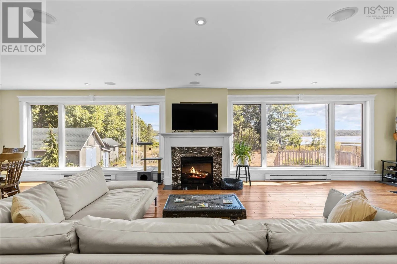 From Hwy 103, take Sable River Exit. Follow highway 3 to West Sable Road. Property will be on the left and signed Resting on approximately 5 acres with over 735 feet of river frontage on the Sable River, this 3-bedroom, 3-bath home beautifully blends homestead charm with modern conveniences. Inside, the open-concept kitchen, living, and dining area is a true showstopper. Floor-to-ceiling windows flood the space with natural light and showcase the serene river views. The spacious kitchen features warm wood tones, custom built-in cabinetry, modern stainless-steel appliances, and an oversized island that offers both additional workspace and storage. Patio doors open to a lovely patio and gazebo area, creating a seamless flow for indoor-outdoor dining. A wood stove and electric fireplace add warmth to the living room, while the adjoining laundry room offers a practical spot for stacking wood with easy access from inside. A main-level bedroom and full bath complete this floor. Upstairs, the primary suite is a true retreat, boasting river views, a full bath with a granite vanity, and a walk-in closet. Alarge landing provides an excellent space for a home office, while your third bedroom and 1/2 bath offers the perfect space for guests. Outdoors, the property offers everything you need for hobby farming and enjoying country living. A wooded area ensures a steady supply of firewood, while perennial gardens, a natural pond, and fenced-in spaces add beauty and function. With the exception of the boathouse, all outbuildings are wiredincluding the renovated chicken coop and workshop. If you've been dreaming of riverside living with the perfect balance of comfort and charm, this property is not to be missed! (id:27476)