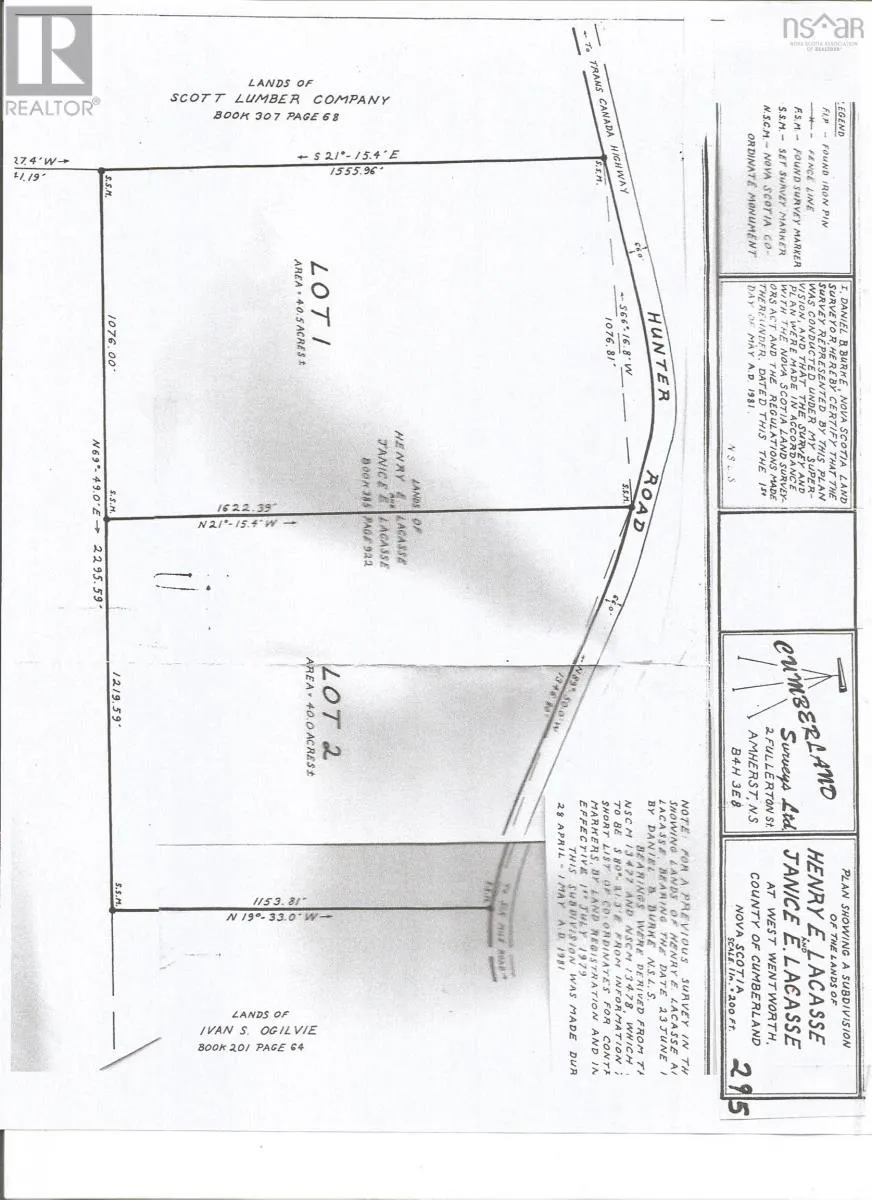 HWY 246 from Tatamagouche to HWY 4 to Hunter Road OR from HRM HWY 104 right onto Hwy 4 to Hunter Road 40 Acres on Hunter Road in Wentworth 0.9 miles from Hwy 4, the old Trans-Canada Highway and minutes from 104, the Trans-Canada Highway. It is 10 minutes from Ski Wentworth, 15 minutes from Fox Harbour, 40 minutes to Amherst or Truro, and about 2 hours to Halifax. The survey was done in 1981 and the property was migrated into the land registry system in 2012. Telephone, electric, and cable tv lines run across the 1200 foot street frontage. There is a culvert suitable for a driveway. The rectangular shaped property has a small stream. It has been under a forest management plan with the North Nova Forest Owners Co-op Ltd since 2005. Zoned forest resource, it is also suitable for residential and/or small business. This property would be very attractive to a person with a decent income and silvaculture and chainsaw experience. (id:27476)