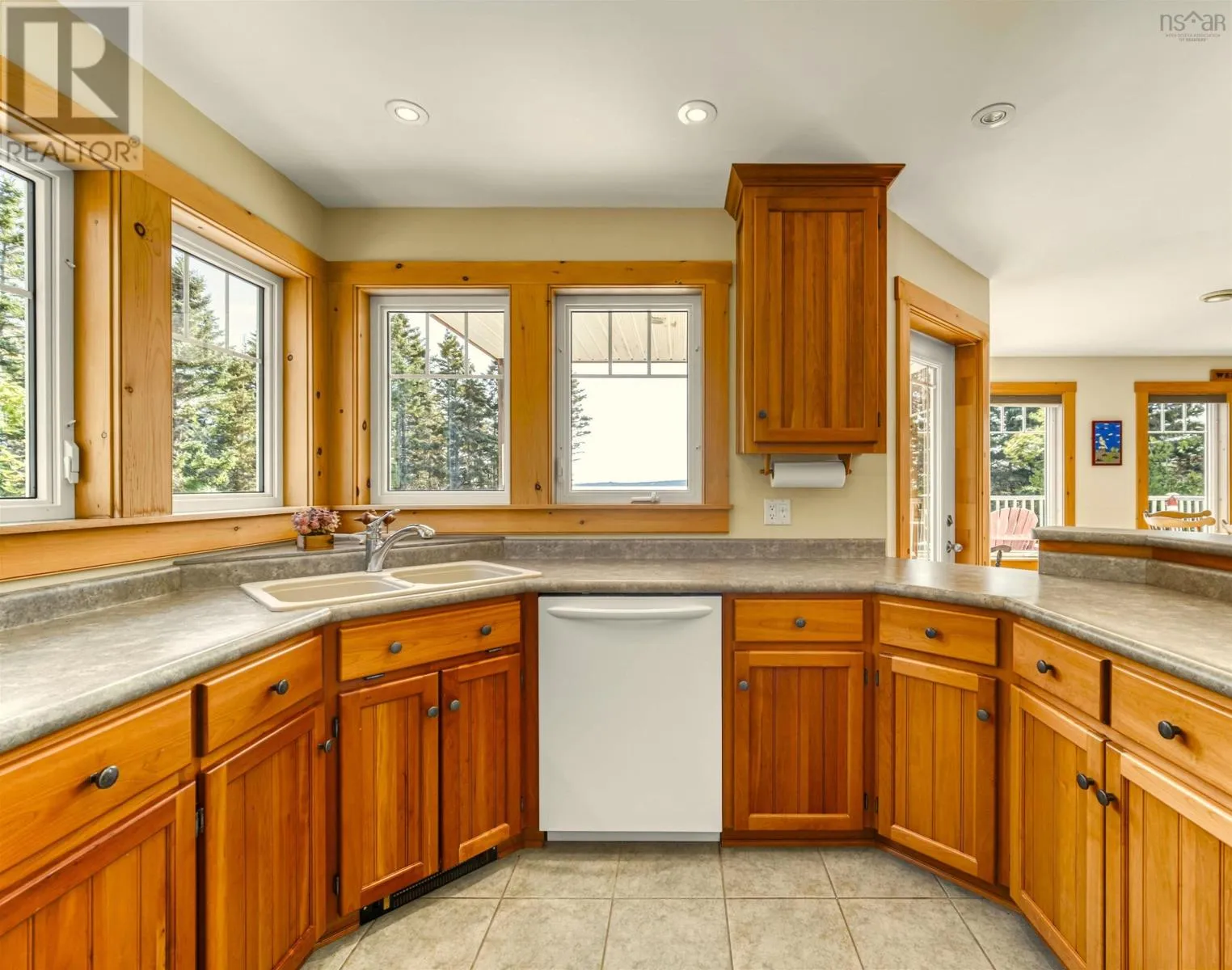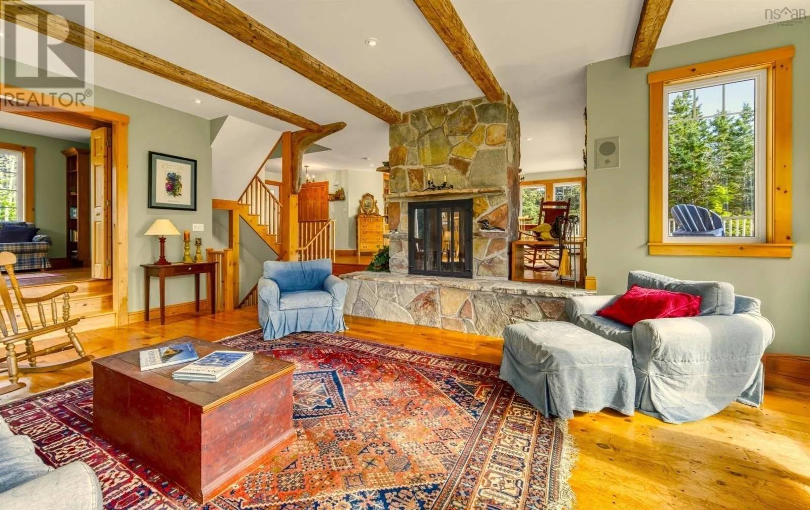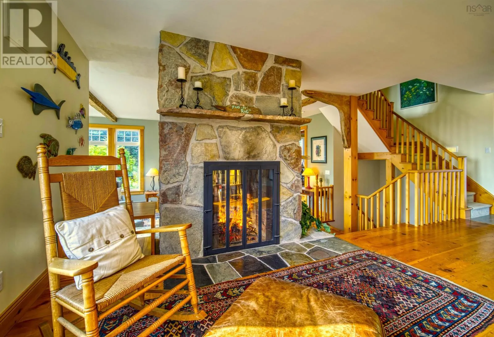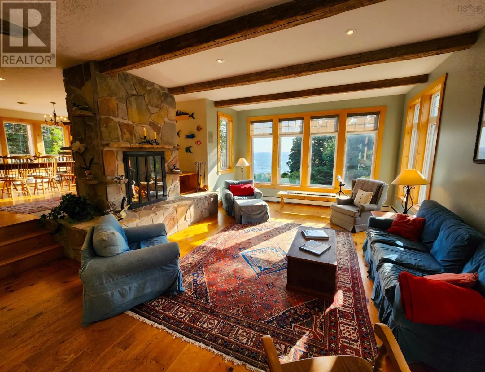 From Downtown Liverpool on Main Street take School Street past hospital which transitions into Shore Road. Take Shore Road for approximately 6.6 km turn left onto Pierce Point Road ....Civic Number 20 Pierce Point ... This timeless custom designed retreat , sequestered within a matured natural landscape, offers south-west views to the bold, open Atlantic. This enclave has been a cherished property with its tree-lined paths that gently enraptures your heart as it has its sole owners since its creation. Entering the main foyer one's eyes are drawn to the garden and sea views through an expanse of windows. A generous dining-room and kitchen space are grounded by a natural-stone, double fireplace lending warmth at this home's heart. The sunken living-room has an elevated sitting area to one side and in conjunction with the open kitchen-dining make this property ideal for family receptions. A mudroom laundry space and pantry off the kitchen reach to an attached double garage. A broad, open staircase provides access to the primary bedroom suite - encompassing an entire floor. This suite has large panoramic windows framed beneath a window seat and also features a gas fireplace. The tower loft, with an abundance of natural light, serves as an inviting studio or library. The large principle ensuite contains a walk in closet, soaker tub and separate tile shower and from the principle suite, a private deck would surely call for morning coffee. At the lower level, a large family room with wood stove offers full walkout to a custom-designed, brick patio. At this same level, two large bedrooms are complimented by two full baths. A utility room that completes this level. A charming, large, three bedroom guest house, tucked away off the main driveway is framed by forest. An open-concept living-dining space off the kitchen with a gas fireplace makes for the ideal retreat for visiting family. The primary bedroom with ensuite and laundry room complete this main floor. Two additional bedrooms with baths perfectly compliment this guest retreat. Though constructed in our century, this property and its stunning setting conveys the sentiments of another time. A rare opportunity. (id:27476)