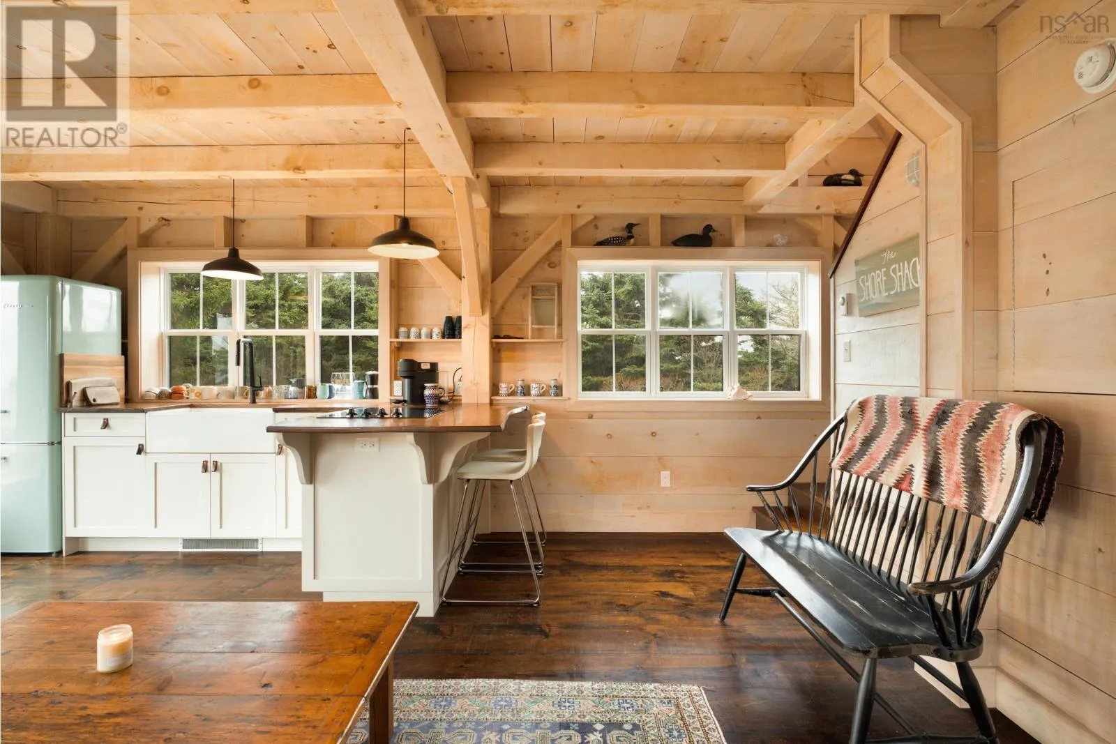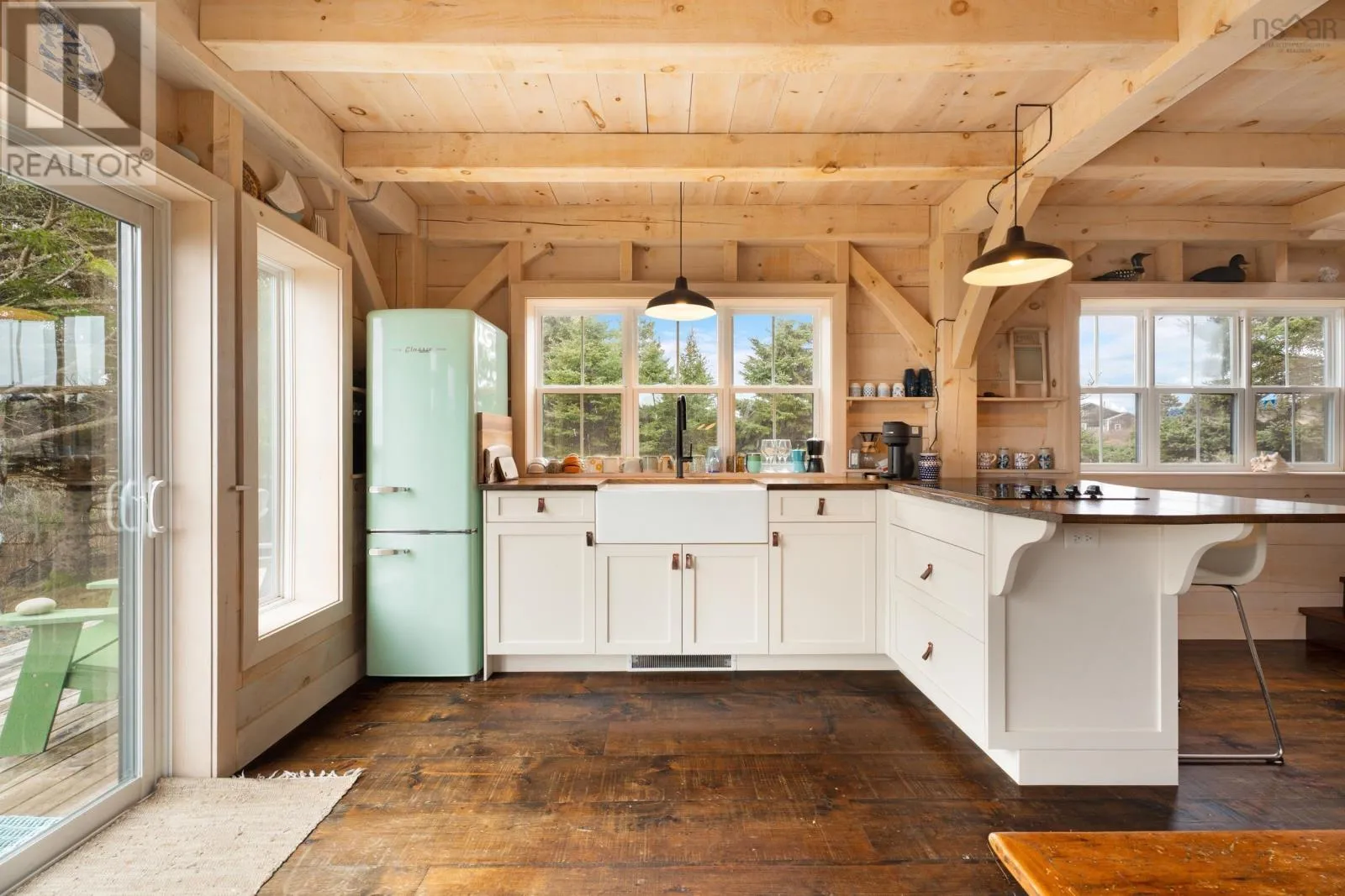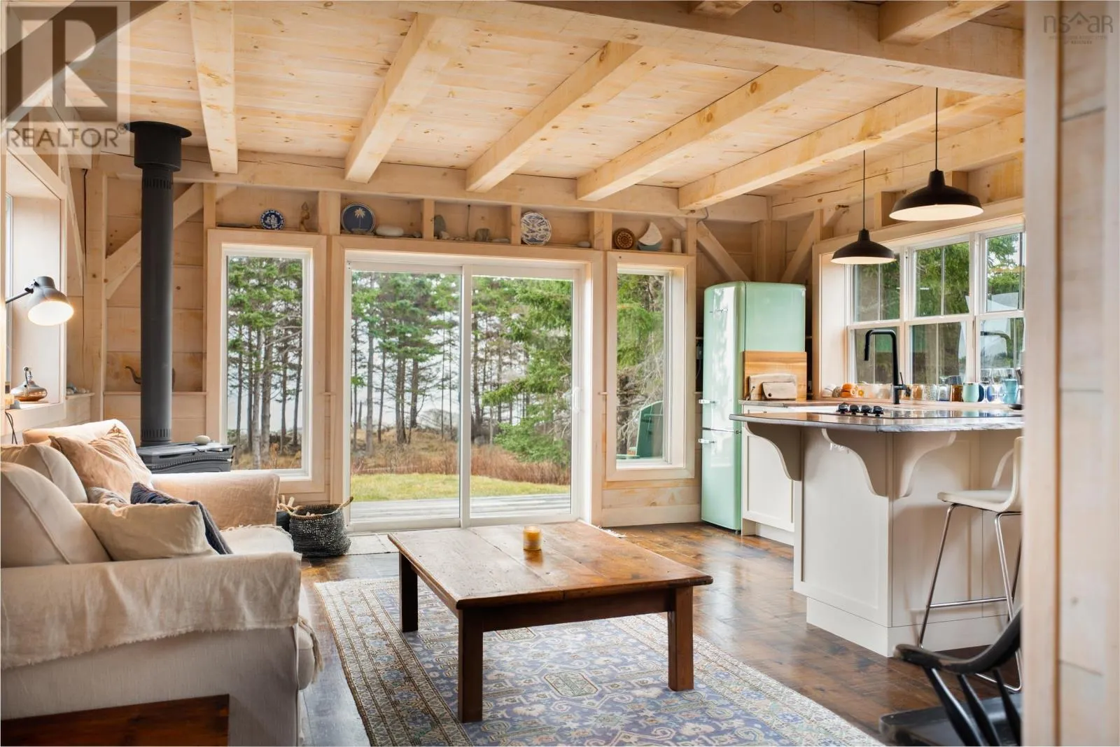 From Liverpool take Waterloo Street to Shore Road and right on Sand Beach Road Wake up to the rhythm of the Atlantic at this exceptional oceanfront retreat on Nova Scotias South Shore, offering an impressive 199 feet of private frontage along a stunning, unspoiled coastline. Designed for four-season enjoyment, this thoughtfully crafted post-and-beam home blends timeless character with modern efficiency, creating a serene sanctuary where nature takes center stage. Warm wood tones and structural beams set the tone inside, while a cozy woodstove invites you to unwind on cool evenings as the sound of waves fills the air. In warmer months, enjoy swimming directly from your own shoreline, and as the seasons shift, embrace invigorating cold plunges in the ocean, followed by restorative soaks in the hot tub, all while taking in the ever-changing blue hues of the sea. This property is a true private getaway from it all, designed to promote relaxation, reflection, and connection with nature. Fall asleep to the crash of waves along your private coastline, and wake refreshed by ocean air and endless horizons. This home is located just minutes from Liverpool, providing convenient access to shops, dining, and everyday amenities. Looking for an investment property or to supplement your mortgage? This property has been income generating from the beginning. Carefully built with efficiency and comfort in mind, this remarkable oceanfront offering delivers not only a home, but a lifestyleone defined by tranquility, natural beauty, and the timeless allure of life by the sea. (id:27476)