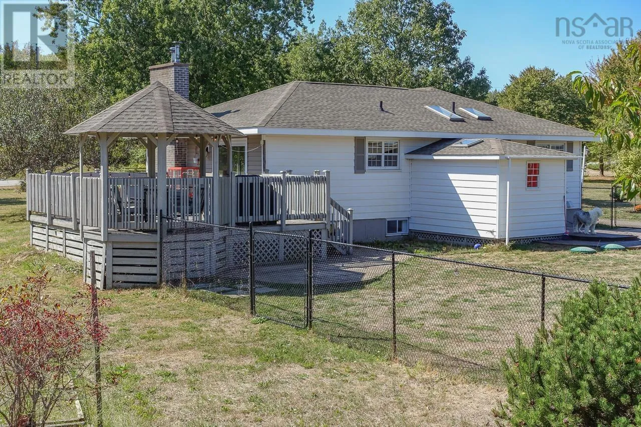 From Hwy#101, take exit#11, Port Williams/Canning to Ridge Rd, right to Forsythe Rd South. White Rock Bungalow Spacious, Updated & Move-In Ready: This charming bungalow offers 2,400 sq. ft. of total finished living space, featuring 3 bedrooms and 2 bathrooms. Inside, the main floor welcomes you with a large, bright mudroom leading into a sunny kitchen and adjoining dining area. Patio doors open to a generous deck with a gazebo; perfect for entertaining. The inviting living room features a newly installed woodstove insert for cozy evenings. Youll also find a double-sized primary bedroom, a second spacious bedroom, and a completely renovated 4-piece bathroom. The mostly finished lower level expands your living space with a third bedroom, a large family room with a wood stove, a den/office, a 3-piece bath, a laundry room, a cold room, and abundant storage. Outside, enjoy a tree-lined driveway leading to a circular turnaround, a fully fenced pet area with a concrete paddock off the mudroom, and a 16x12 shed with attached wood storage. Additional highlights include: Wheelchair ramp at the front entry. New septic field (2017). Wired for a generator (included). Blueberry bushes and peach trees on the property. This property combines space, privacy, and practical updates, ready for you to move in and enjoy. (id:27476)