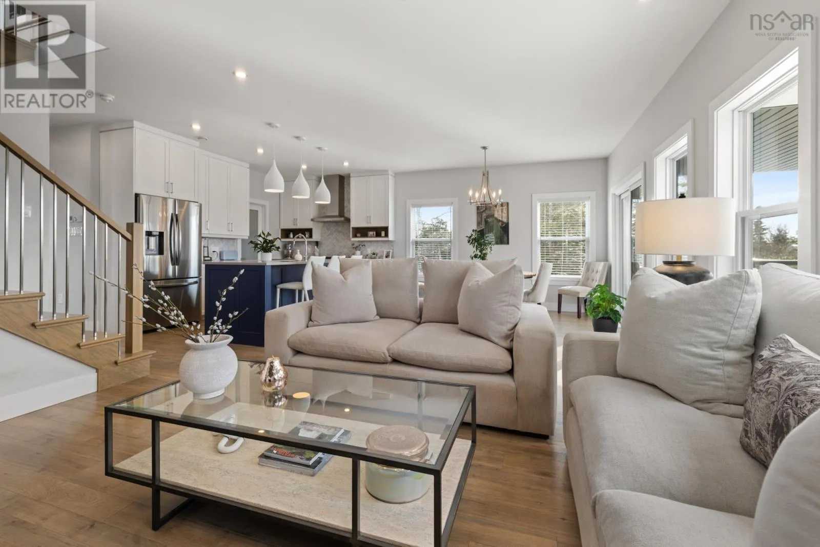 Prospect Road to left onto Terence Bay Road, right on Powers Road, right on Hargrove Lane. Stunning oceanfront home in Oceanside Estates Whites Lake, offering breathtaking views of Prospect Bay & ideal access for boating, kayaking, & coastal exploration. This elegant 2-storey is fully finished on all 3 levels & features a ducted heat pump & propane fireplace for year-round comfort. The open-concept main level is designed for effortless entertaining, showcasing a chef-inspired kitchen with quartz countertops, centre island, propane cooking, walk-in pantry (5 x 6.7) and a cozy den & 2pc bath. Full length deck is partially covered and has amazing views! 4 bedrooms & 3.5 baths include a luxurious primary suite with walk-in closet & spa-inspired ensuite featuring double sinks & a custom shower. Upper-level laundry adds everyday convenience. The walkout lower level offers a spacious rec room, full bath, & additional bedroom ideal for guests or a home gym. An exceptional opportunity for refined oceanfront living in one of the area most sought after communities. (id:27476)