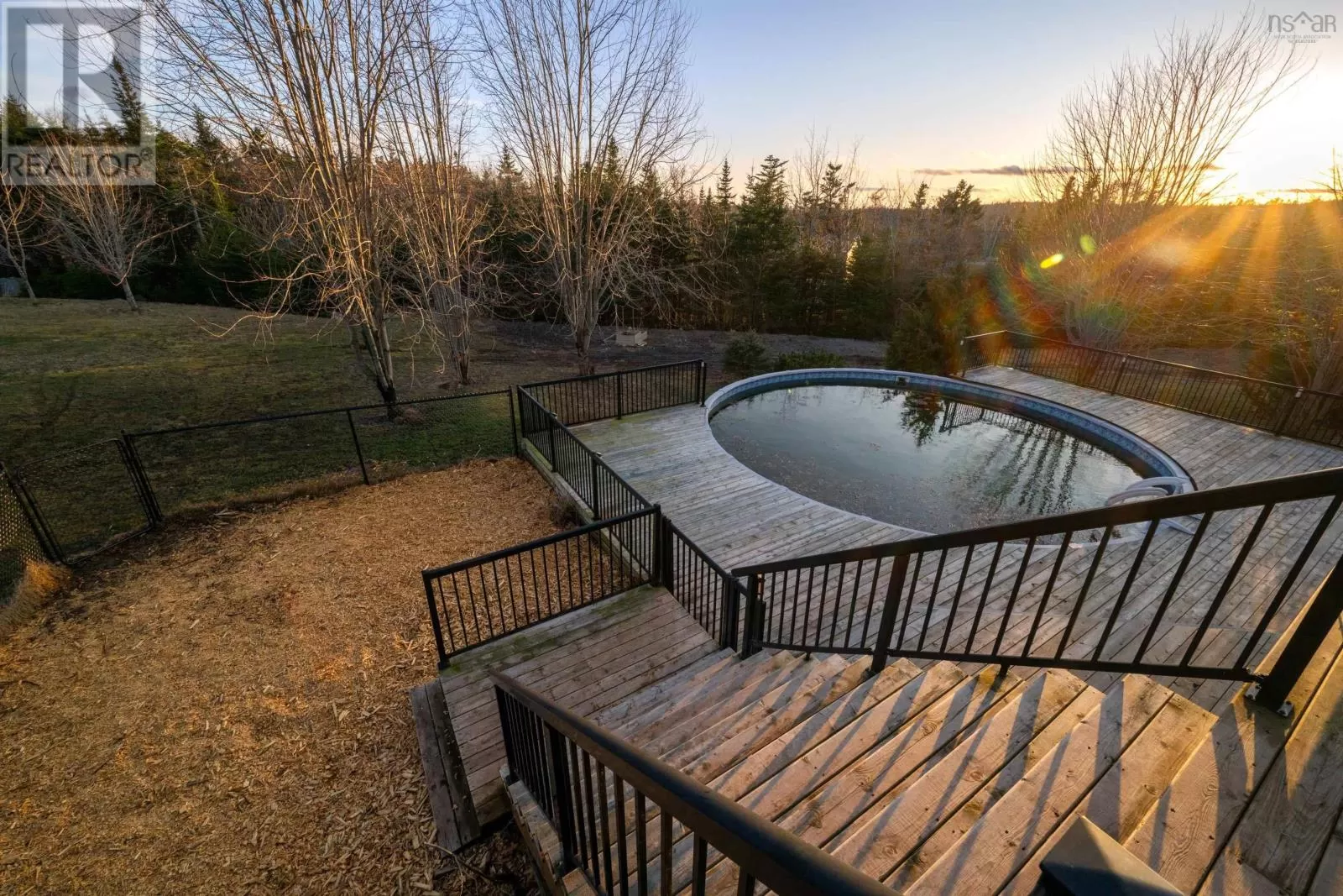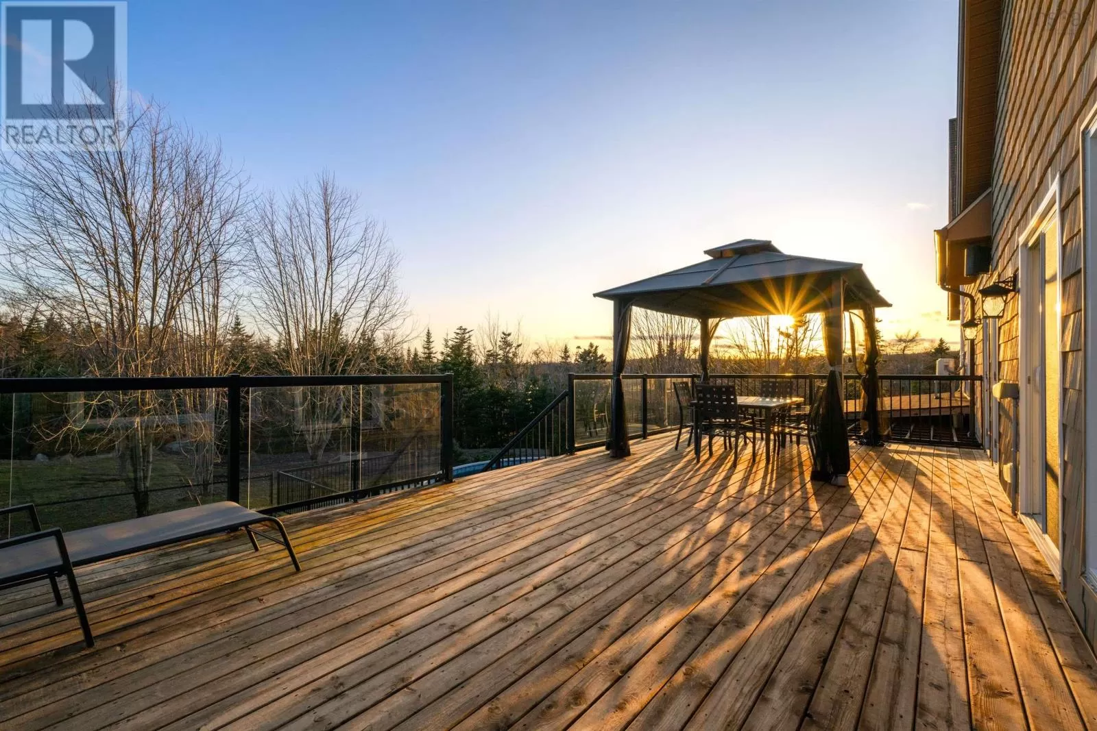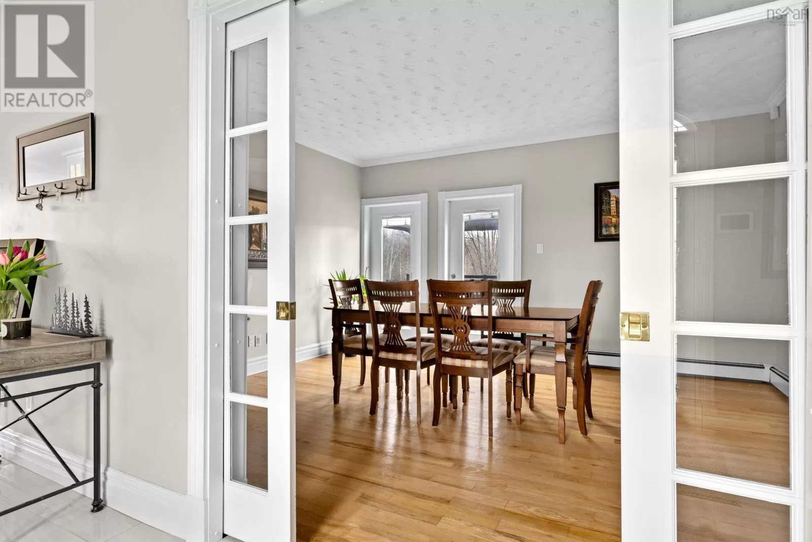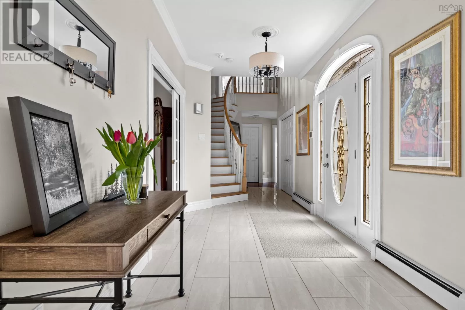 Old Sambro Road to Francie. Home is at the end of the street. Welcome to 65 Francie Drivea one-of-a-kind estate blending luxury, comfort, and character on a beautifully landscaped lot. From the moment you arrive, the circular concrete driveway with fountain centerpiece and charming cedar shake exterior set the tone for something special. The expansive yard is professionally landscaped with a peaceful man-made pond and wide-open space for relaxing, entertaining, or letting kids and pets roam. Step inside to a bright, welcoming foyer that opens into a stylish open-concept living area. The living room, kitchen, and formal dining room flow seamlessly together. A sun-soaked solarium off the kitchen is ideal for morning coffee or afternoon reading. Patio doors lead to a massive tiered deck with a new 30 above-ground pool and gazeboyour summer hangout spot. The main floor features four spacious bedrooms, a renovated 4-piece bath, and a fifth bedroom or home office for flexibility. A mudroom connects to the updated 24x24 attached garage, which includes laundry, a 2-piece bath, and loft storage. Tucked away in its own upper-level wing, the 600 sq. ft. primary suite is your private retreatcomplete with a fully renovated ensuite offering spa-like comfort. The walkout lower level adds more living space with a large rec room (pool table included!), theatre room, 2-piece bath, gym / yoga studio, or 6th bedroom, and ample storage space. Additional upgrades include new windows and exterior doors, three heat pumps, and beautiful hardwood floors throughout. Please note: The land is currently being subdivided with an estimated size of just under an acre and 40-50 foot river frontage to be conveyed with this home. (id:27476)