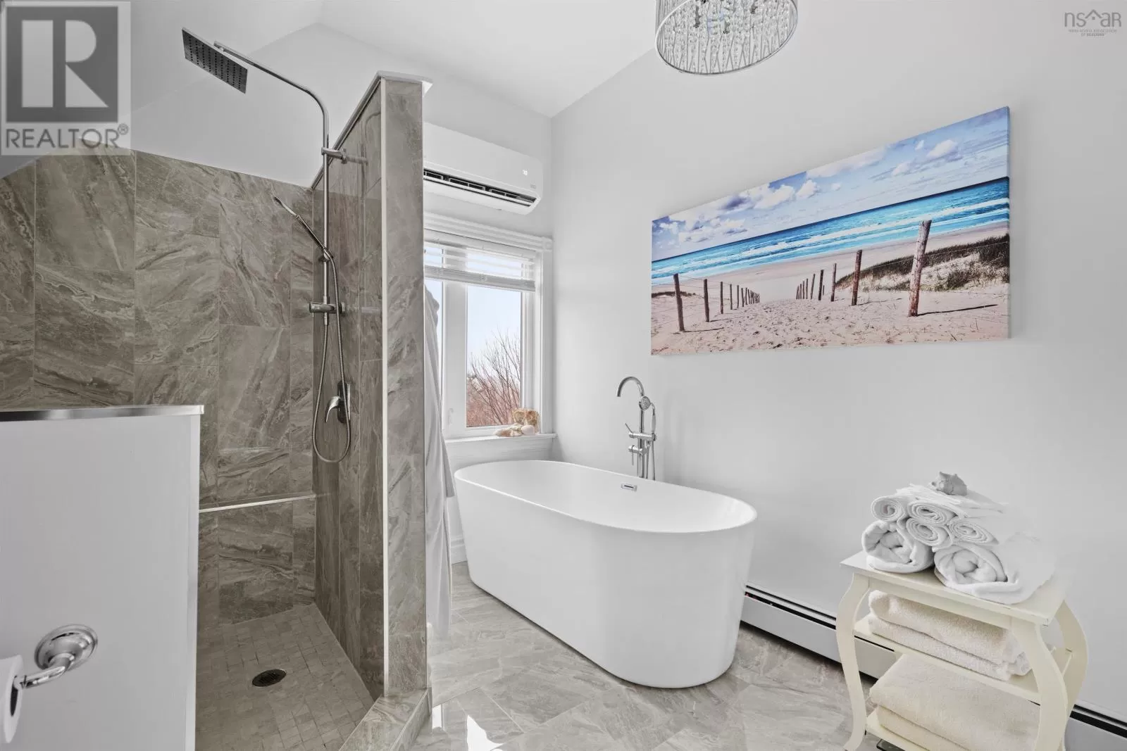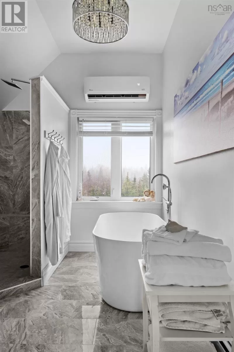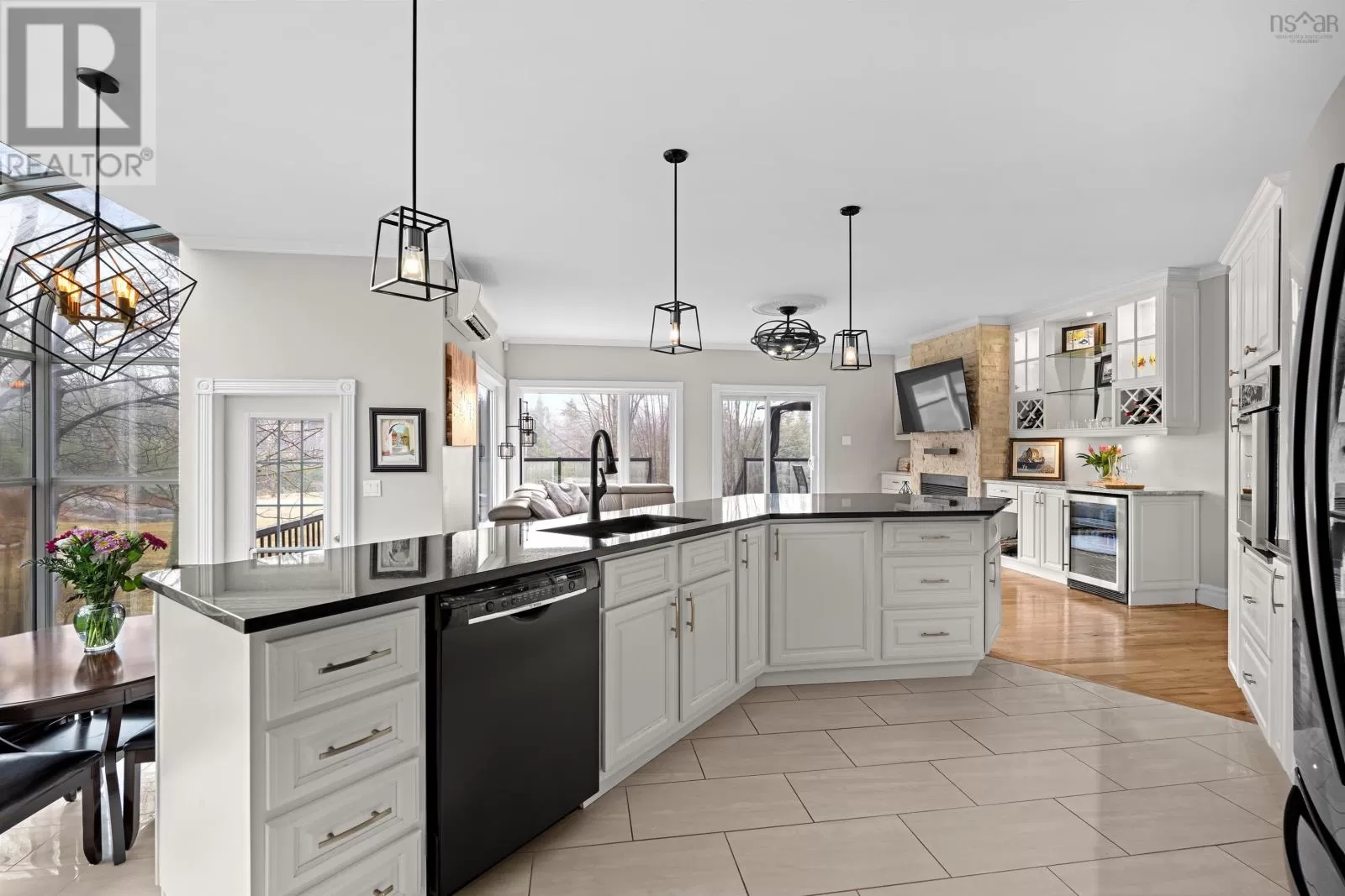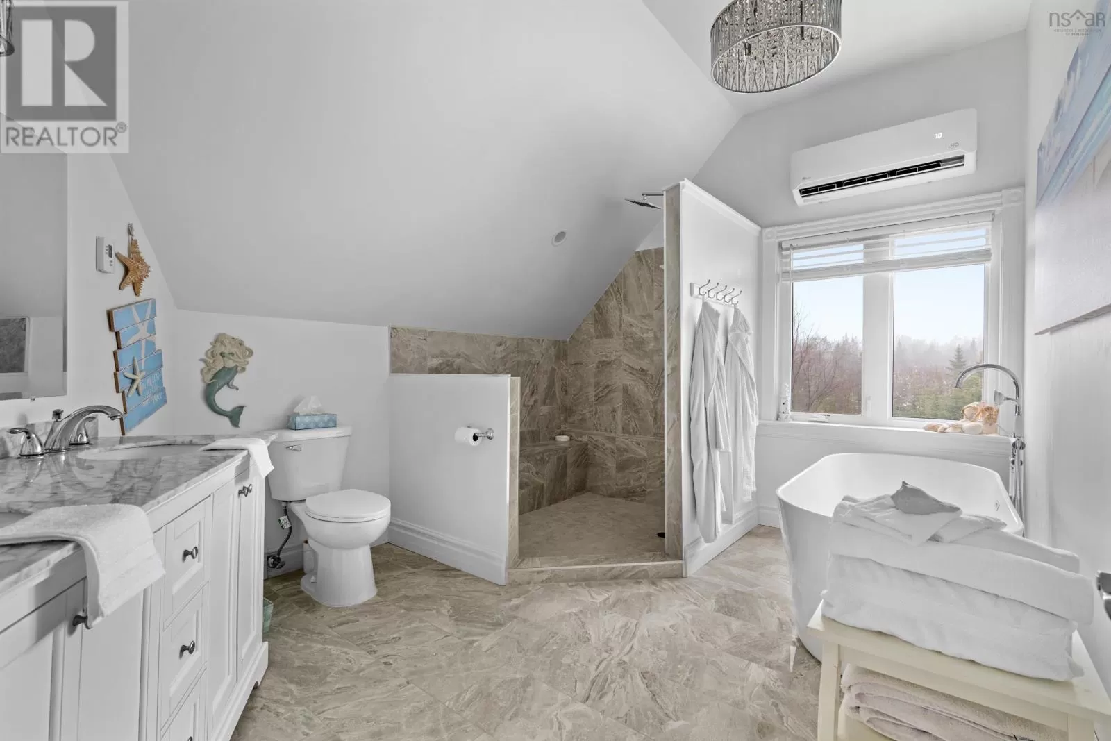 Old Sambro Road to Francie. Home is at the end of the street. Welcome to 65 Francie Drivea one-of-a-kind estate blending luxury, comfort, and character on a beautifully landscaped lot. From the moment you arrive, the circular concrete driveway with fountain centerpiece and charming cedar shake exterior set the tone for something special. The expansive yard is professionally landscaped with a peaceful man-made pond and wide-open space for relaxing, entertaining, or letting kids and pets roam. Step inside to a bright, welcoming foyer that opens into a stylish open-concept living area. The living room, kitchen, and formal dining room flow seamlessly together. A sun-soaked solarium off the kitchen is ideal for morning coffee or afternoon reading. Patio doors lead to a massive tiered deck with a new 30 above-ground pool and gazeboyour summer hangout spot. The main floor features four spacious bedrooms, a renovated 4-piece bath, and a fifth bedroom or home office for flexibility. A mudroom connects to the updated 24x24 attached garage, which includes laundry, a 2-piece bath, and loft storage. Tucked away in its own upper-level wing, the 600 sq. ft. primary suite is your private retreatcomplete with a fully renovated ensuite offering spa-like comfort. The walkout lower level adds more living space with a large rec room (pool table included!), theatre room, 2-piece bath, gym / yoga studio, or 6th bedroom, and ample storage space. Additional upgrades include new windows and exterior doors, three heat pumps, and beautiful hardwood floors throughout. Please note: The land is currently being subdivided with an estimated size of just under an acre and 40-50 foot river frontage to be conveyed with this home. (id:27476)
