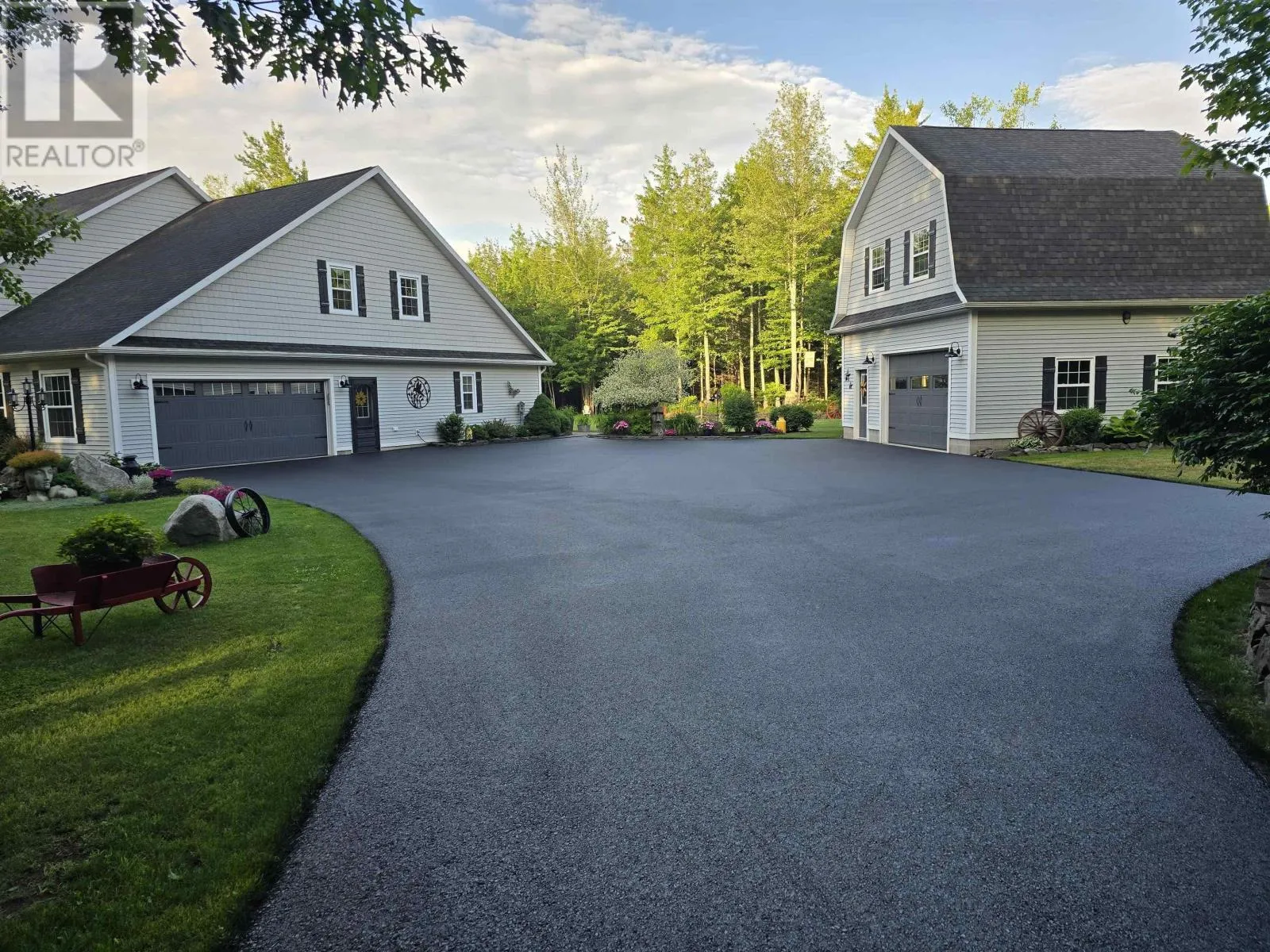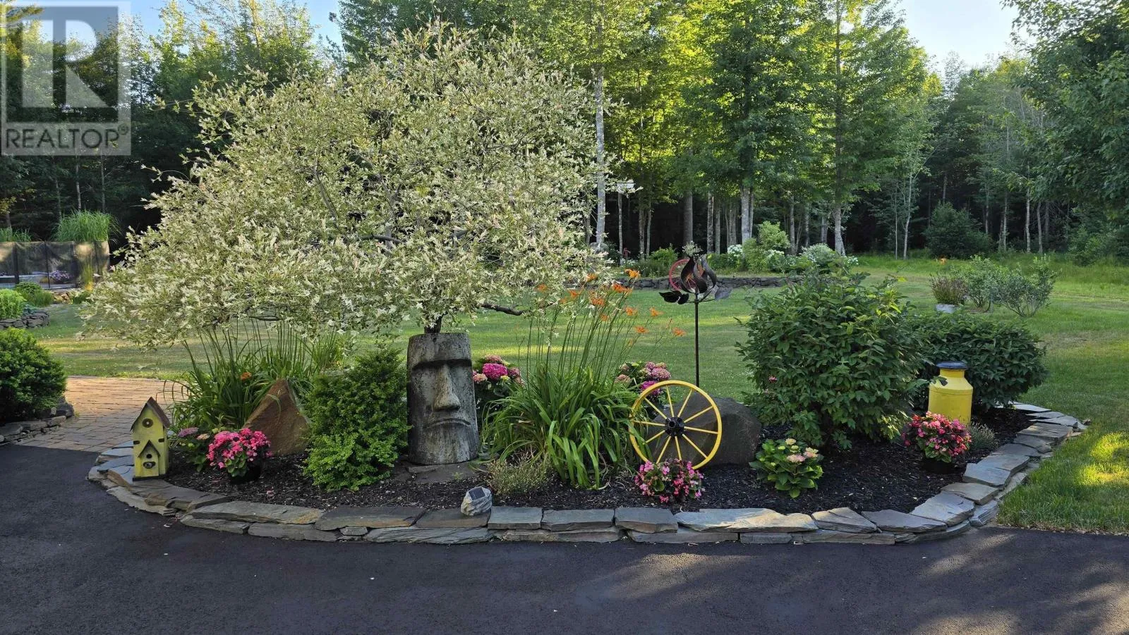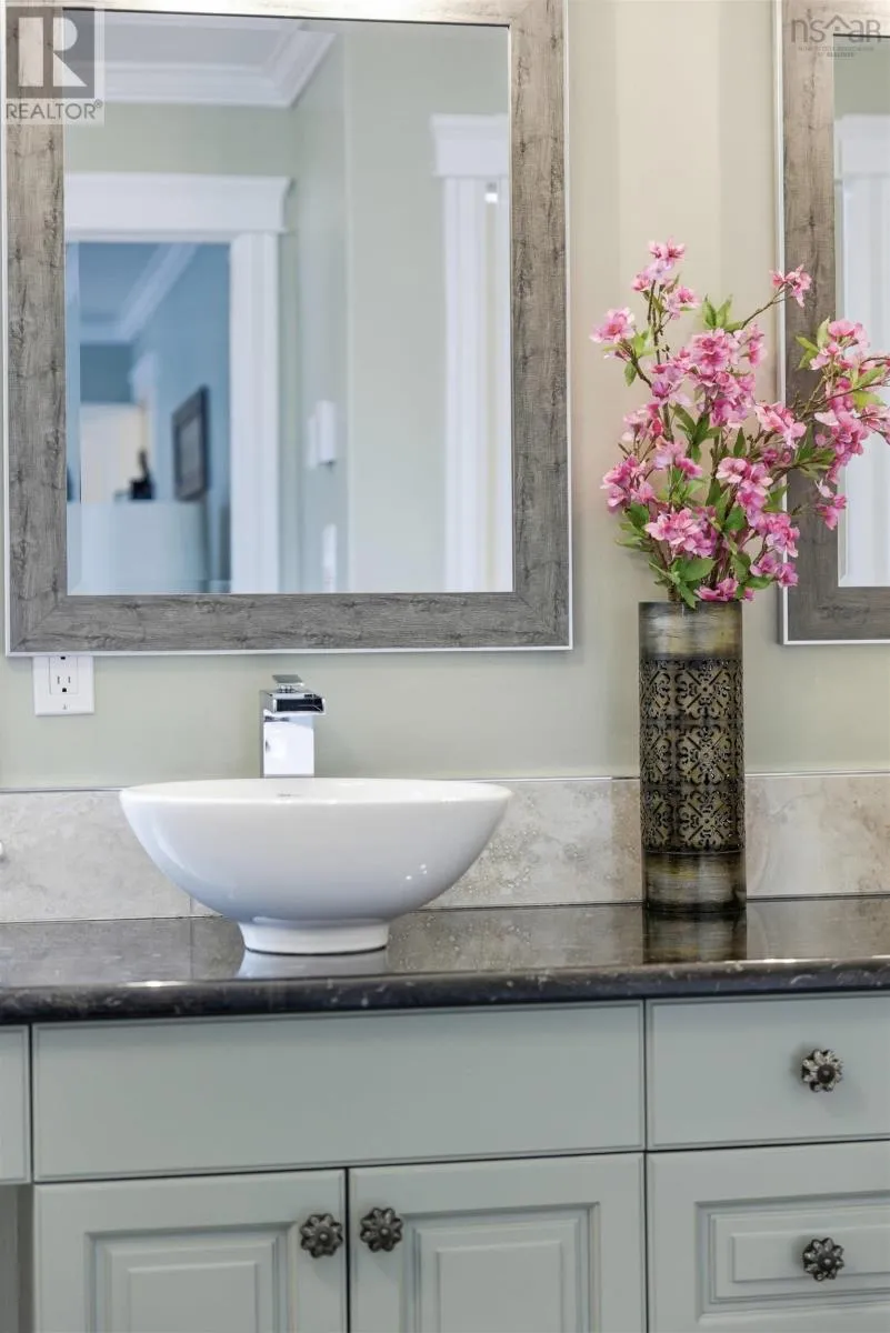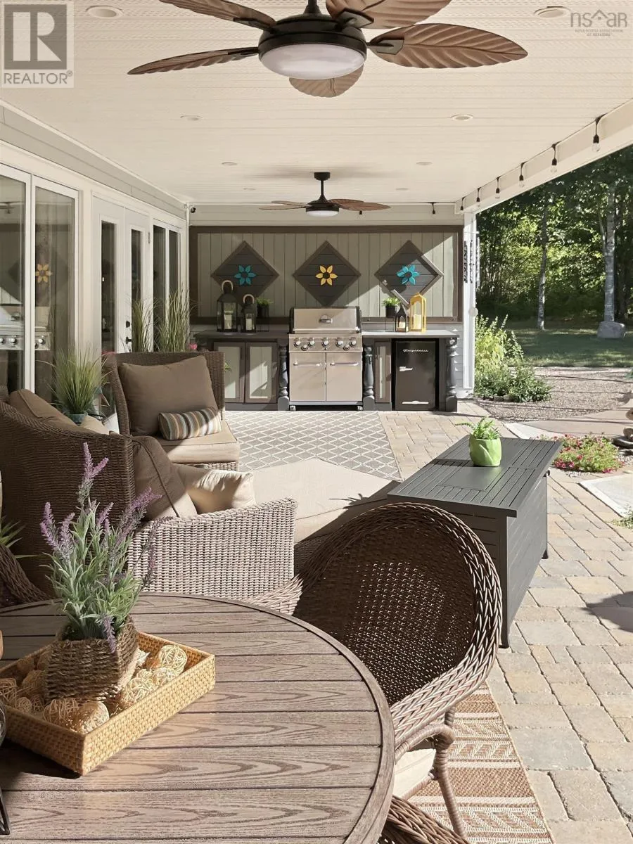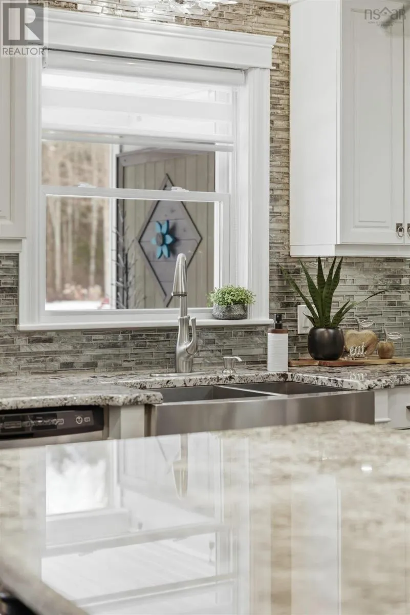 From Highway 1: North on Dodge Rd, West on Bradley to end of street, see signage Set well back from the road at the end of a quiet cul-de-sac, this custom built executive home offers nearly 6 acres of privacy, natural beauty, and thoughtfully designed living. A fully paved winding driveway welcomes you in, revealing mature grounds, curated stonework, and a sense of calm from the moment you arrive. Built in 2013 with premium finishes throughout, this property offers 3,325 sq ft of thoughtfully planned living space, including 3 bedrooms plus a 4th bedroom or office and 2 full bathrooms. The open-concept main living area is both grand and inviting, featuring cathedral ceilings, expansive windows, custom wainscotting, crown moldings, and five sun tunnels that fill the space with natural light. The layout provides privacy for guests, with bedrooms positioned on their own side of the home. The kitchen anchors the home with custom birch and oak cabinetry, granite countertops, a generous breakfast bar, walk-in pantry, and double built-in wall ovens. An oversized laundry room offers exceptional storage and workspace. The primary suite is a true retreat with two walk-in closets, dual sinks, a vanity area, and a separate shower and tub. Upstairs loft offers additional living space, a gym and exceptional storage tunnels under the eaves. Year-round comfort is ensured with three heat pumps, electric backup heaters throughout, and a wood fireplace with a striking floor-to-ceiling stone feature wall. Outdoors, enjoy a heated in-ground saltwater pool, a fully covered outdoor living area with kitchen and prep space, a sunken fire pit, and paver stone walkways. A stream winds through the property with a bridge crossing, surrounded by trails, rock wall gardens, and blueberry bushes. With a 24 x 25 attached garage and a 24 x 24 detached garage with loft and separate entrance, offering excellent potential for extended family or private retreat space, this is a rare opportunity to own a thoughtfully designed property that balances refinement and relaxa (id:27476)