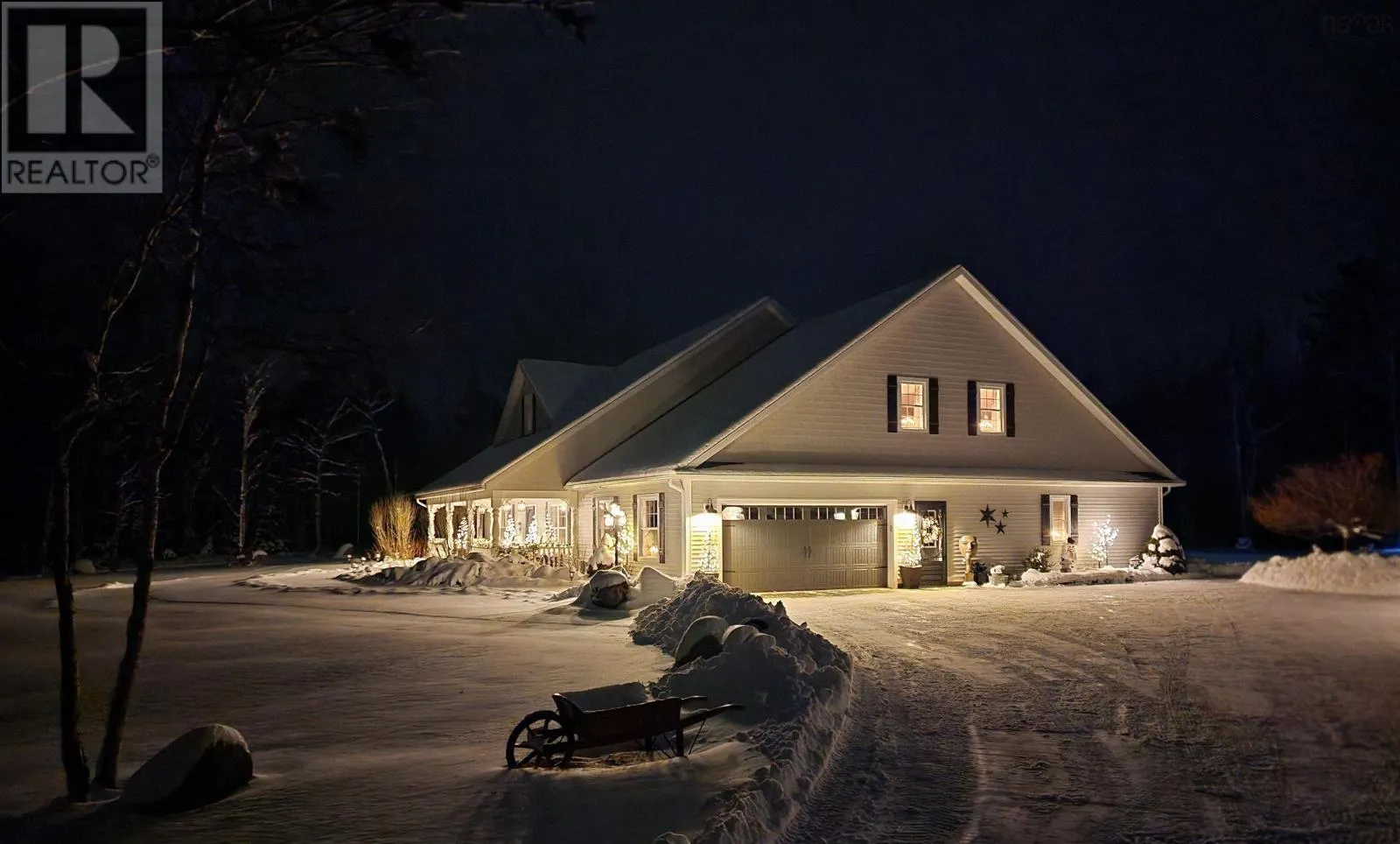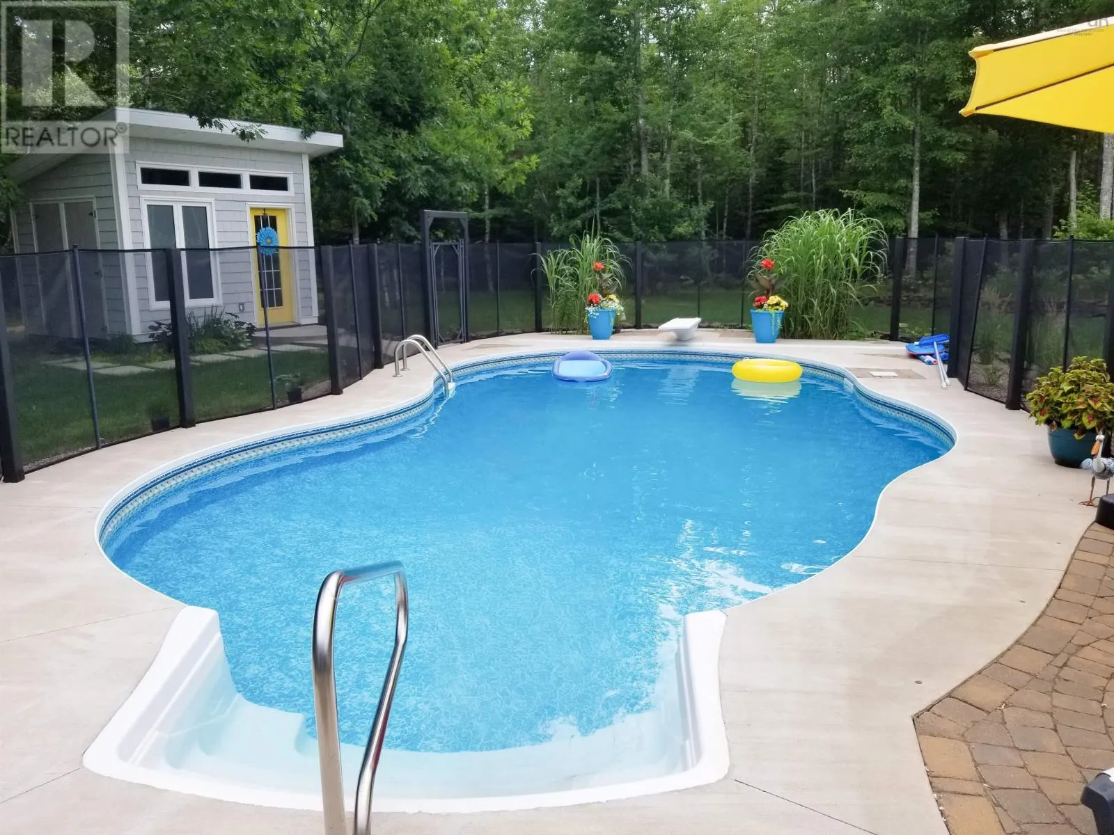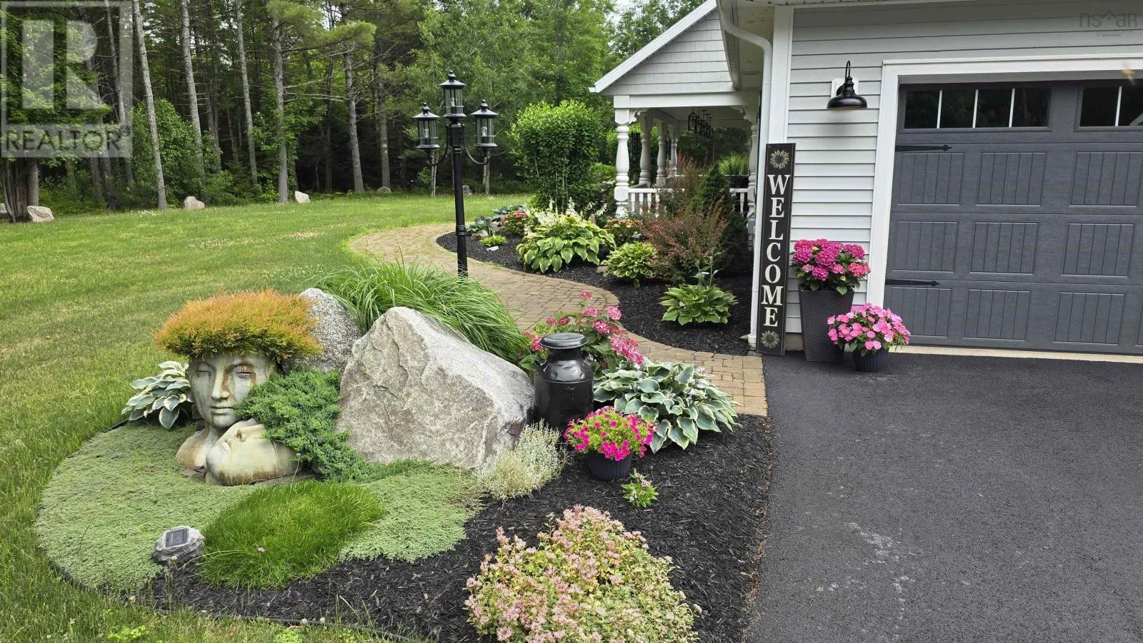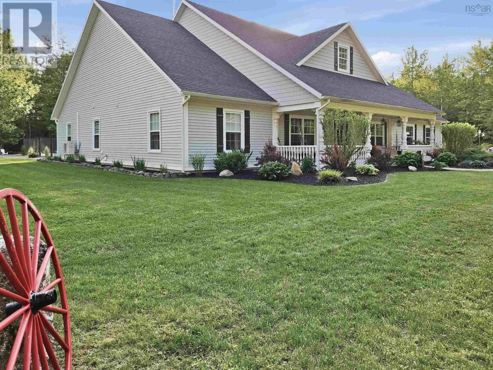 From Highway 1: North on Dodge Rd, West on Bradley to end of street, see signage Set well back from the road at the end of a quiet cul-de-sac, this custom built executive home offers nearly 6 acres of privacy, natural beauty, and thoughtfully designed living. A fully paved winding driveway welcomes you in, revealing mature grounds, curated stonework, and a sense of calm from the moment you arrive. Built in 2013 with premium finishes throughout, this property offers 3,325 sq ft of thoughtfully planned living space, including 3 bedrooms plus a 4th bedroom or office and 2 full bathrooms. The open-concept main living area is both grand and inviting, featuring cathedral ceilings, expansive windows, custom wainscotting, crown moldings, and five sun tunnels that fill the space with natural light. The layout provides privacy for guests, with bedrooms positioned on their own side of the home. The kitchen anchors the home with custom birch and oak cabinetry, granite countertops, a generous breakfast bar, walk-in pantry, and double built-in wall ovens. An oversized laundry room offers exceptional storage and workspace. The primary suite is a true retreat with two walk-in closets, dual sinks, a vanity area, and a separate shower and tub. Upstairs loft offers additional living space, a gym and exceptional storage tunnels under the eaves. Year-round comfort is ensured with three heat pumps, electric backup heaters throughout, and a wood fireplace with a striking floor-to-ceiling stone feature wall. Outdoors, enjoy a heated in-ground saltwater pool, a fully covered outdoor living area with kitchen and prep space, a sunken fire pit, and paver stone walkways. A stream winds through the property with a bridge crossing, surrounded by trails, rock wall gardens, and blueberry bushes. With a 24 x 25 attached garage and a 24 x 24 detached garage with loft and separate entrance, offering excellent potential for extended family or private retreat space, this is a rare opportunity to own a thoughtfully designed property that balances refinement and relaxa (id:27476)