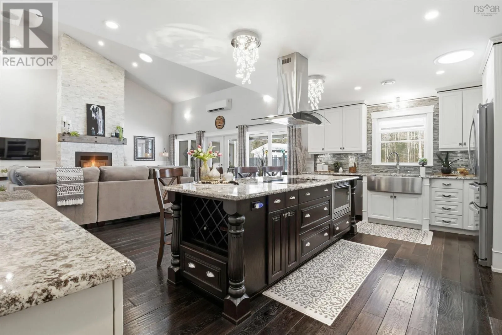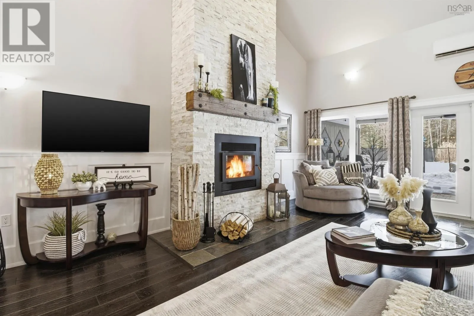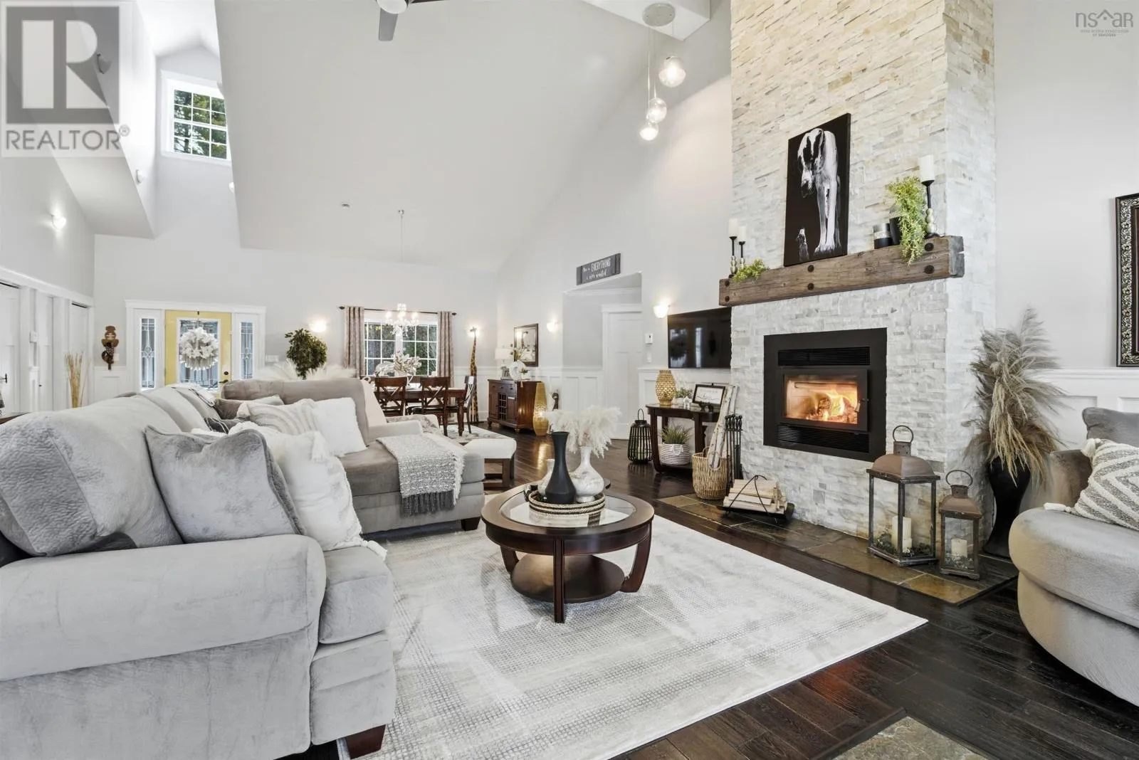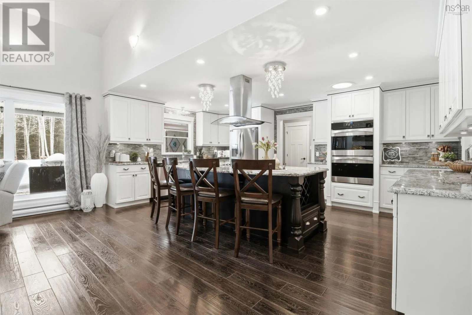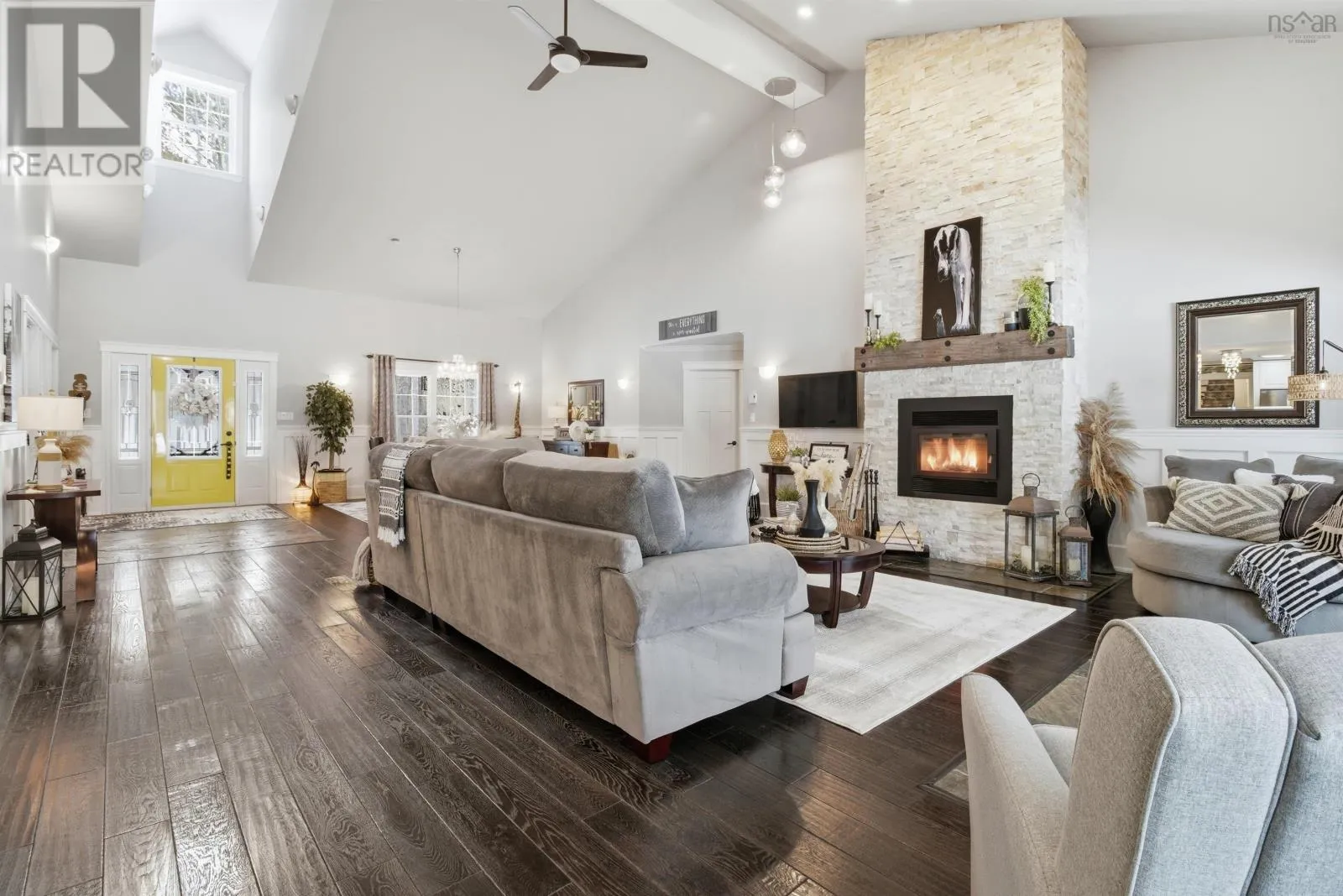 From Highway 1: North on Dodge Rd, West on Bradley to end of street, see signage Set well back from the road at the end of a quiet cul-de-sac, this custom built executive home offers nearly 6 acres of privacy, natural beauty, and thoughtfully designed living. A fully paved winding driveway welcomes you in, revealing mature grounds, curated stonework, and a sense of calm from the moment you arrive. Built in 2013 with premium finishes throughout, this property offers 3,325 sq ft of thoughtfully planned living space, including 3 bedrooms plus a 4th bedroom or office and 2 full bathrooms. The open-concept main living area is both grand and inviting, featuring cathedral ceilings, expansive windows, custom wainscotting, crown moldings, and five sun tunnels that fill the space with natural light. The layout provides privacy for guests, with bedrooms positioned on their own side of the home. The kitchen anchors the home with custom birch and oak cabinetry, granite countertops, a generous breakfast bar, walk-in pantry, and double built-in wall ovens. An oversized laundry room offers exceptional storage and workspace. The primary suite is a true retreat with two walk-in closets, dual sinks, a vanity area, and a separate shower and tub. Upstairs loft offers additional living space, a gym and exceptional storage tunnels under the eaves. Year-round comfort is ensured with three heat pumps, electric backup heaters throughout, and a wood fireplace with a striking floor-to-ceiling stone feature wall. Outdoors, enjoy a heated in-ground saltwater pool, a fully covered outdoor living area with kitchen and prep space, a sunken fire pit, and paver stone walkways. A stream winds through the property with a bridge crossing, surrounded by trails, rock wall gardens, and blueberry bushes. With a 24 x 25 attached garage and a 24 x 24 detached garage with loft and separate entrance, offering excellent potential for extended family or private retreat space, this is a rare opportunity to own a thoughtfully designed property that balances refinement and relaxa (id:27476)