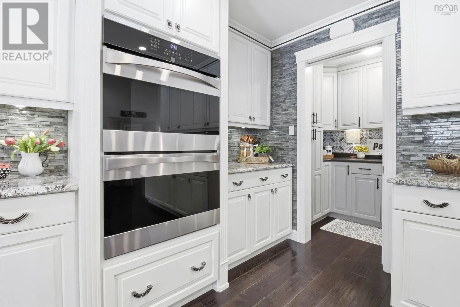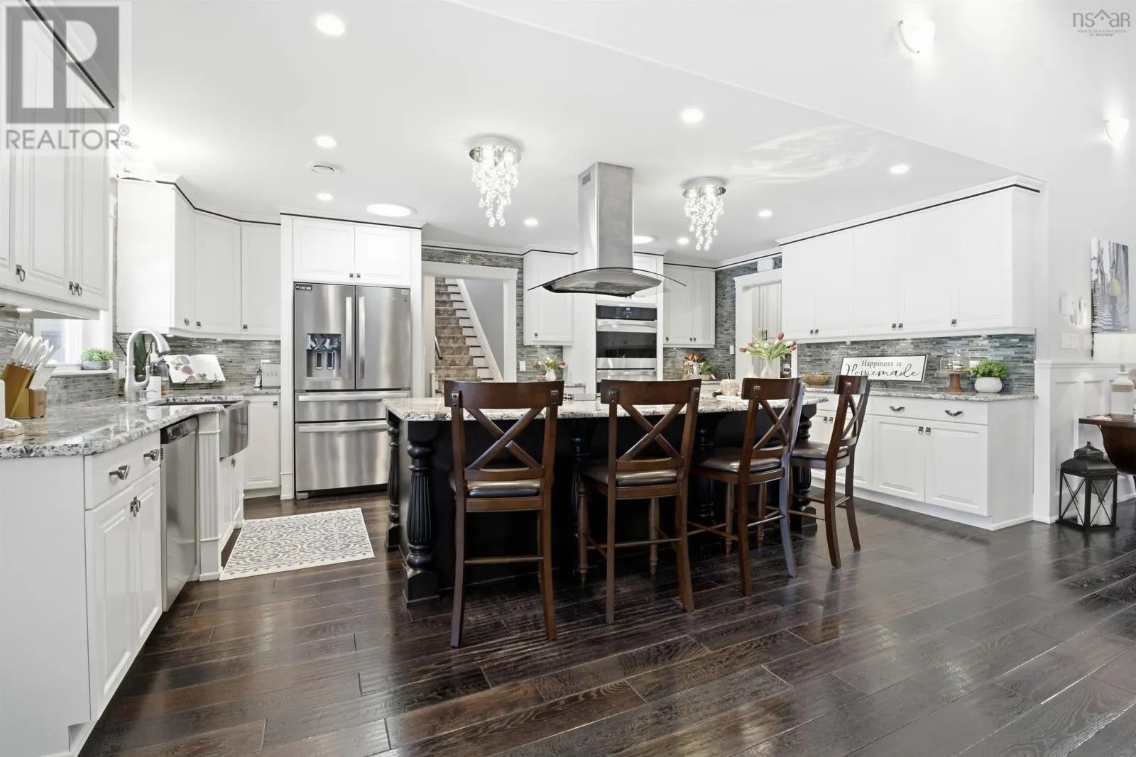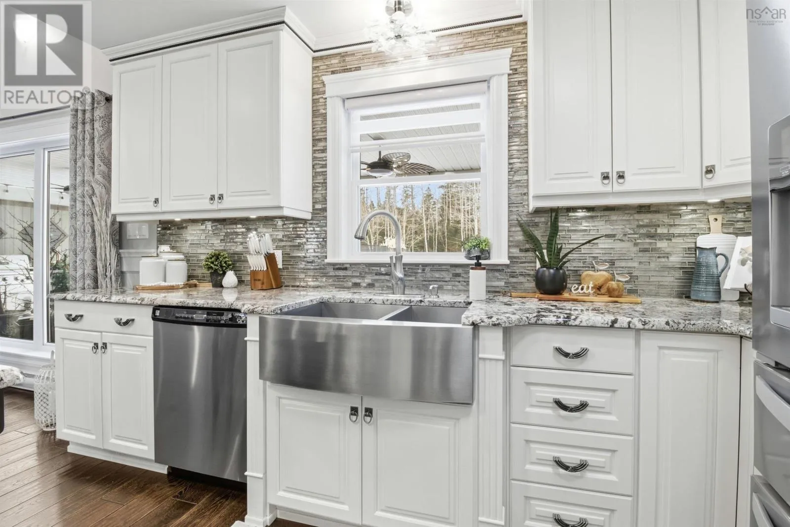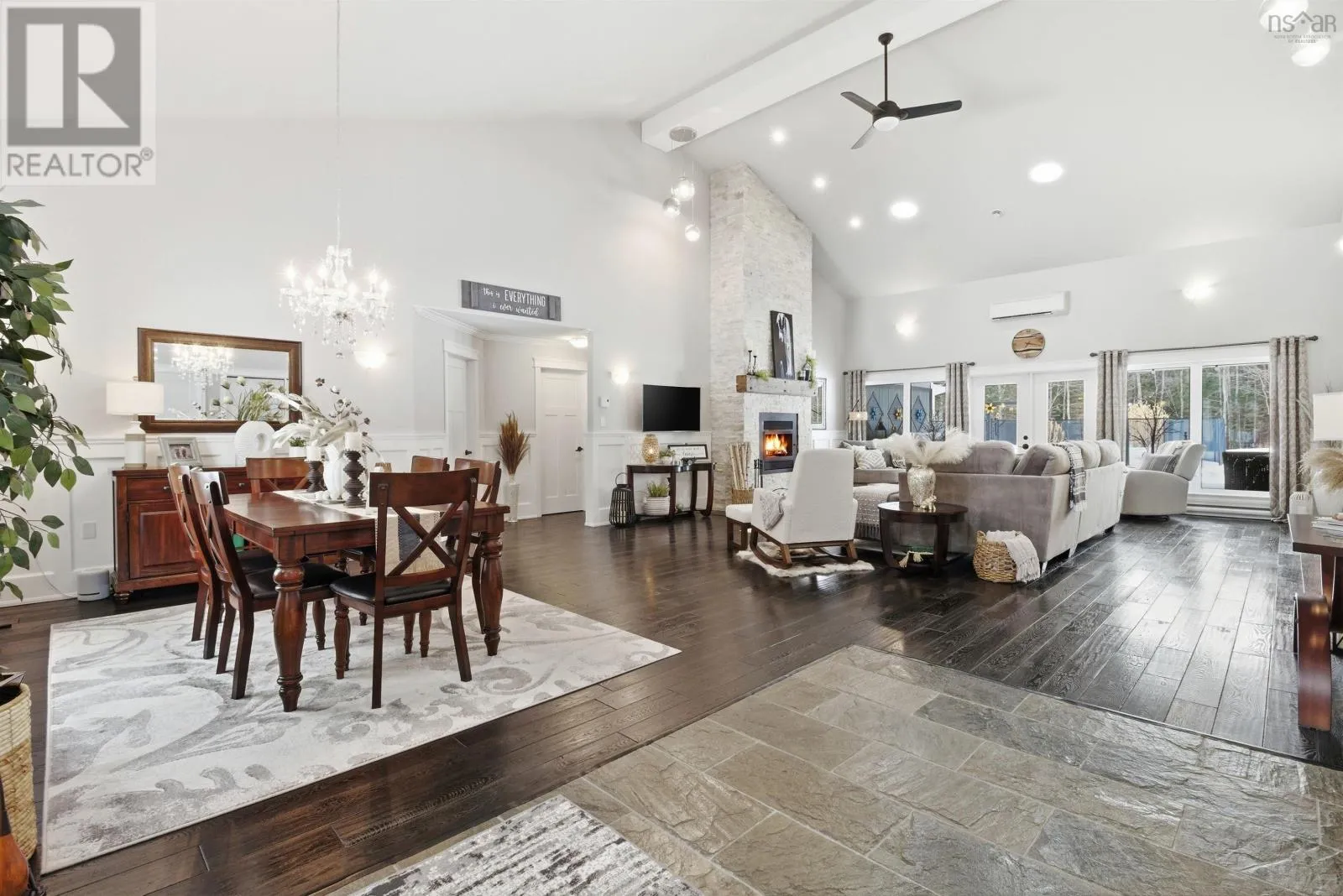 From Highway 1: North on Dodge Rd, West on Bradley to end of street, see signage Set well back from the road at the end of a quiet cul-de-sac, this custom built executive home offers nearly 6 acres of privacy, natural beauty, and thoughtfully designed living. A fully paved winding driveway welcomes you in, revealing mature grounds, curated stonework, and a sense of calm from the moment you arrive. Built in 2013 with premium finishes throughout, this property offers 3,325 sq ft of thoughtfully planned living space, including 3 bedrooms plus a 4th bedroom or office and 2 full bathrooms. The open-concept main living area is both grand and inviting, featuring cathedral ceilings, expansive windows, custom wainscotting, crown moldings, and five sun tunnels that fill the space with natural light. The layout provides privacy for guests, with bedrooms positioned on their own side of the home. The kitchen anchors the home with custom birch and oak cabinetry, granite countertops, a generous breakfast bar, walk-in pantry, and double built-in wall ovens. An oversized laundry room offers exceptional storage and workspace. The primary suite is a true retreat with two walk-in closets, dual sinks, a vanity area, and a separate shower and tub. Upstairs loft offers additional living space, a gym and exceptional storage tunnels under the eaves. Year-round comfort is ensured with three heat pumps, electric backup heaters throughout, and a wood fireplace with a striking floor-to-ceiling stone feature wall. Outdoors, enjoy a heated in-ground saltwater pool, a fully covered outdoor living area with kitchen and prep space, a sunken fire pit, and paver stone walkways. A stream winds through the property with a bridge crossing, surrounded by trails, rock wall gardens, and blueberry bushes. With a 24 x 25 attached garage and a 24 x 24 detached garage with loft and separate entrance, offering excellent potential for extended family or private retreat space, this is a rare opportunity to own a thoughtfully designed property that balances refinement and relaxa (id:27476)
