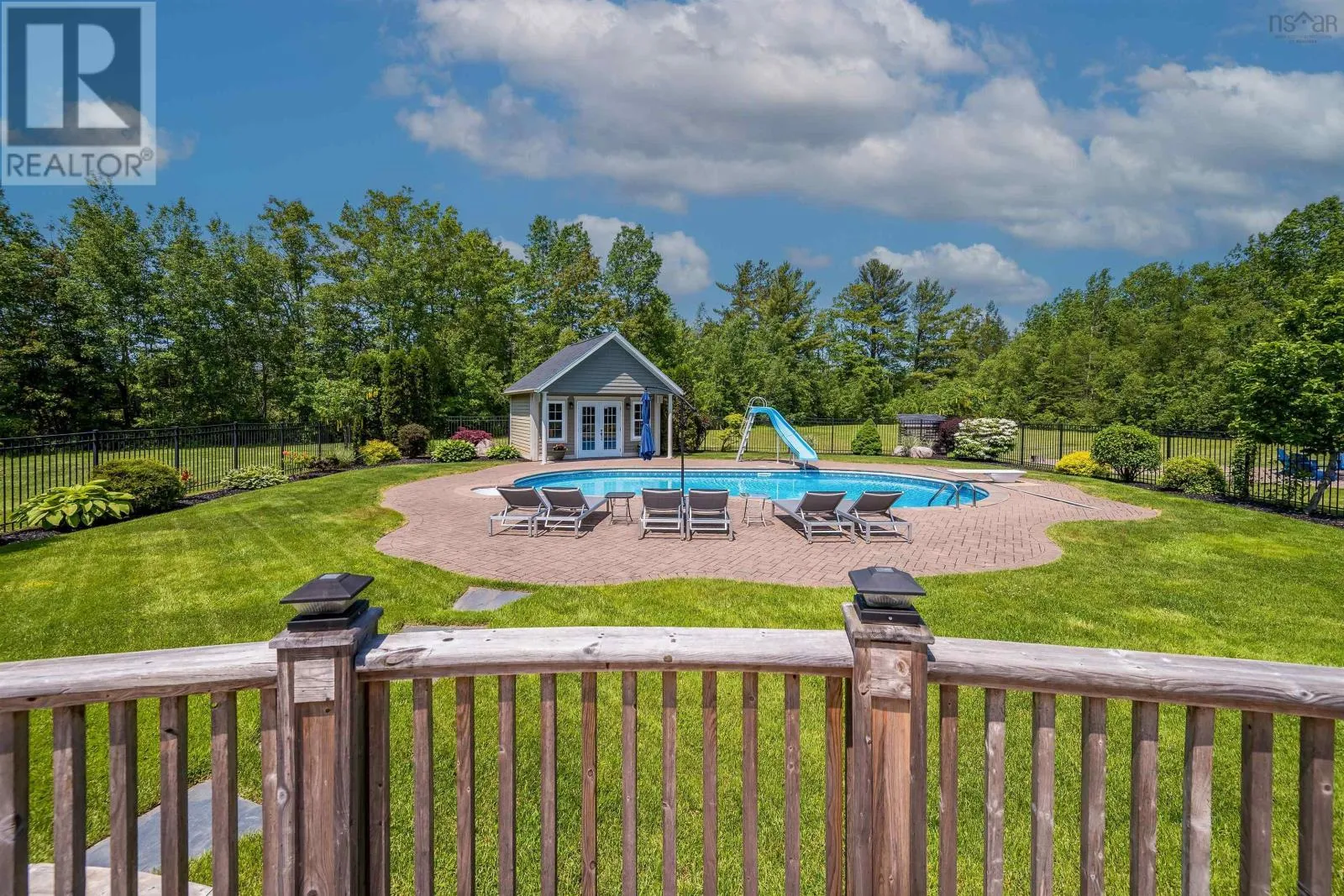 13697 HIGHWAY 1 - SEE CIVIC Welcome Home! This executive estate truly has it all! Nestled on 5.79 acres, this show stopping property wows from the moment you arrive. A private winding driveway leads to an immaculate home surrounded by lush landscaping, an in ground heated pool complete with a waterslide, and a fully fenced backyard oasis featuring a hot tub, patio stonework, and a pool house. Enjoy surround sound both inside and out while entertaining, and an in ground sprinkler system to keep everything picture perfect. Built with ICF construction and featuring in-floor heating, this home offers 3 beautifully finished levels, including a fully developed basement with plenty of room for family, fun, or relaxation. The Decoste kitchen is a chefs dream with high end appliances and direct access to the backyard for seamless entertaining. The open-concept living and dining areas are centered around a cozy propane fireplace, creating the perfect space to gather and create lasting memories. Upstairs, youll find a one of a kind bonus room with a wet bar, something you dont see every day, along with spacious bedrooms all featuring extra-large walk-in closets. The primary suite is pure perfection with a recently renovated ensuite that feels like a spa retreat. Recent updates also include a new roof (Oct 2023), and full bathroom addition in the basement. The attached heated garage is the final touch to this exceptional offering. Need even more space? A separate 14x32 Hickory building (2023) makes an ideal guest house, office, or home-based business. Equipped with both a small kitchen that is cute as can be and 3PC bath. Located just minutes to CFB Greenwood, HWY 101 access and easily accessible to the Annapolis Valley Trail System . With 4 bedrooms, 4 bathrooms, and everything you could possibly want, this immaculately maintained property is your forever retreat, just waiting for you and your family to move in and call it HOME! (id:27476)